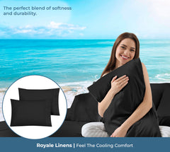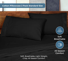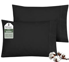 ROYALE LINENS 200 Thread Count 100% Long Staple Combed Cotton Pillowcases Set Of 2 - Ultra Soft - Queen Bed Pillow Cover - 20"x30" - Breathable, Cool & Crisp Percale White Pillow Cases (Queen, Black)