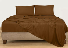 ROYALE LINENS 300 Thread Count 100% Long Staple Combed Cotton Sheet Set - 4 Piece Bed Sheet 1 Fitted Sheet, 1 Flat Sheet, 2 Pillowcases - Breathable, Cool & Crisp Percale Sheet Set (Chocolate)