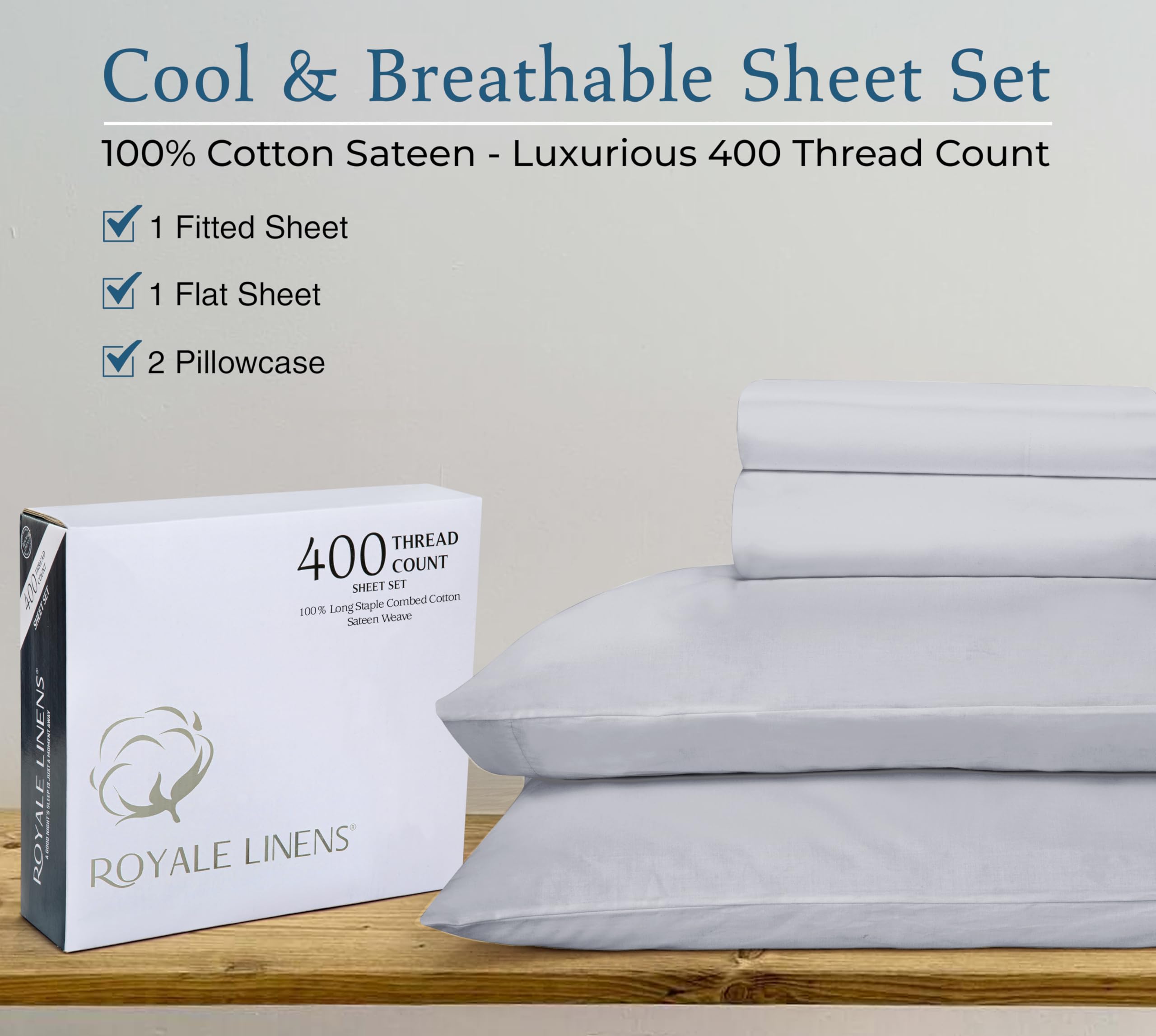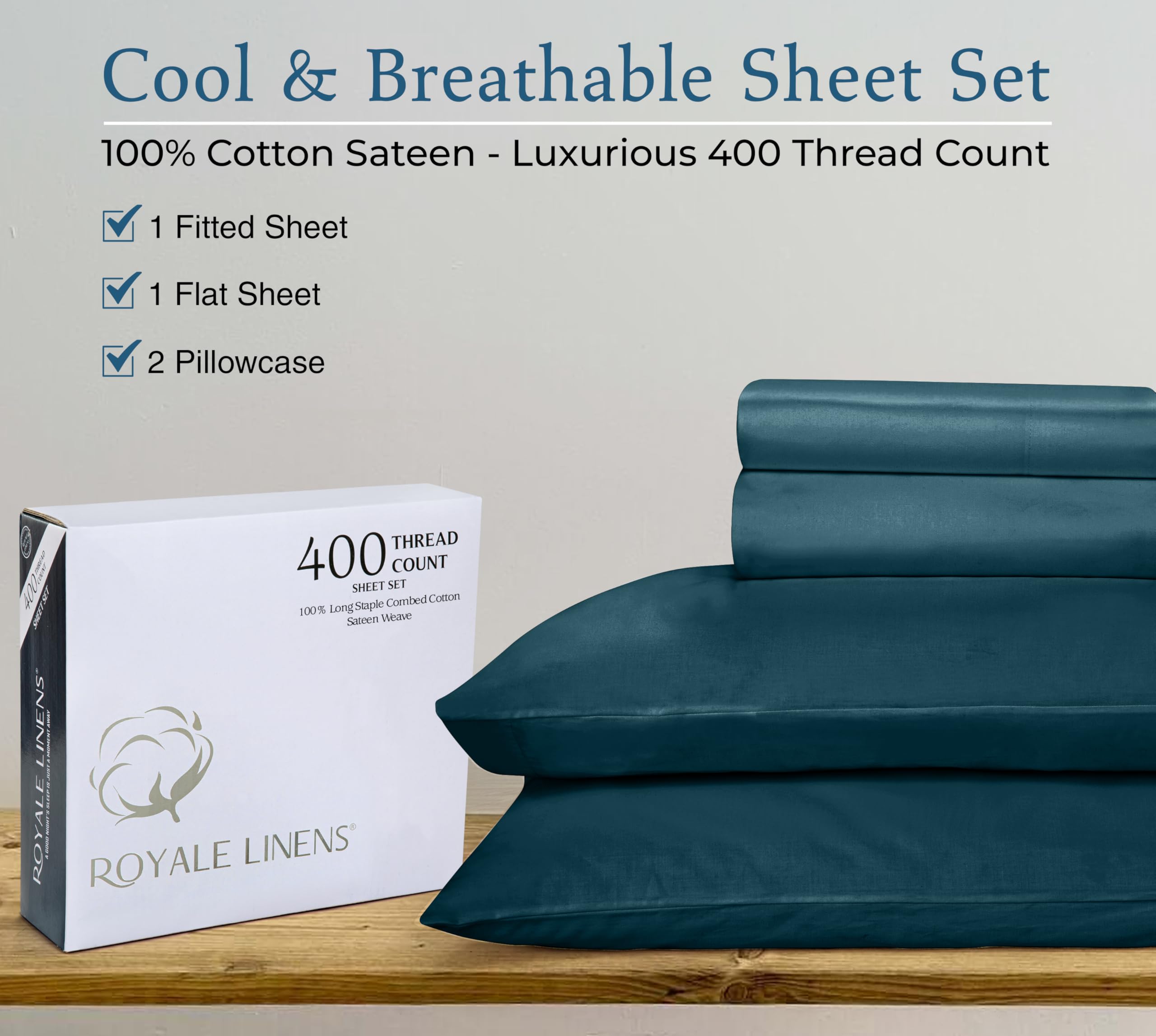 """A Good Night Sleep Is Just A Moment Away"" Royale Linens 300 Thread Count Bed Sheet Sets Are Manufactured Using Finest Quality 100% Brushed Cotton. Making Them Breathable, Comfortable And Cozy. Royale Linen Sheet Set Comes In 4 Different Sizes Twin Full Queen King Queen Sheet Set Include: 1 Flat Sheet 90x102 Inches, 1 Fitted Sheet 60x80 Inches With 14 Inch Drop And 1 2 Pillow Case 20X30 Inches With 4 Inch Hem And Envelop Closure. Royale Linens Queen Bed Sheets Are Breathable, Cool And Super Silky Soft. Fabric Is Processed To Make It Shrink And Fade Resistant. Perfect For Bedroom, Guest Room, Kids Room, Hotels. Great Gift Idea For Men And Women On Valentine's Day - Mother's Day- Father's Day And Christmas. Our 300 Thread Count Bed Sheet Sets Are Certified Standard 100 By Oeko?Tex. According To The Guidelines, These Products Are Tested For Harmful Substances And Produced In An Environment Friendly And Socially Responsible Manner. Also Sustainable In Accordance With Oeko-tex Guidelines. Care Instruction: Machine Wash Or Hand Wash Using Cold Water Along With A Mild Detergent Is Recommended For Extending The Life Of The Set Along With Retaining Its Comfortability. Washing At High Temperatures Causes Cotton To Expand Which Results In The Trapped Dirt And Other Tiny Particles Being Released. If You Want To Hand Wash The Set, Then Consider Using A Soft-haired Brush To Rinse Thoroughly."