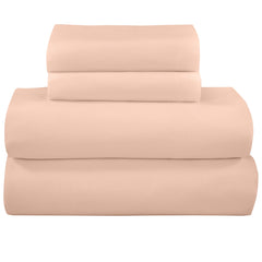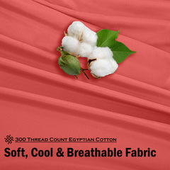 ROYALE LINENS 300 Thread Count 100% Long Staple Combed Cotton Sheet Set - 4 Piece Bed Sheet 1 Fitted Sheet, 1 Flat Sheet, 2 Pillow Case - Breathable, Cool & Crisp Percale Sheet Set ( Pink)