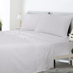 ROYALE LINENS 300 Thread Count 100% Long Staple Combed Cotton Sheet Set - 4 Piece Bed Sheet 1 Fitted Sheet, 1 Flat Sheet, 2 Pillow case - Breathable, Cool & Crisp Percale Sheet Set (White)