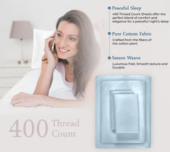 """A Good Night Sleep Is Just A Moment Away"" Royale Linens 400 Thread Count Sateen Bed Sheet Sets Are Manufactured Using Finest Quality 100% American Grown Cotton. Making Them Breathable, Comfortable And Cozy. Royale Linen Sheet Set Comes In 4 Different Sizes Twin Full Queen King Queen Sheet Set Include: 1 Flat Sheet 90X102 Inches, 1 Fitted Sheet 60x80 Inches With 14 Inch Drop 2 Pillow Case 20X30 Inches With 4 Inch Hem And Envelop Closure. Royale Linens Queen Size Sateen Bed Sheets Are Breathable, Cool And Super Silky Soft. Fabric Is Processed To Make It Shrink And Fade Resistant. Perfect For Bedroom, Guest Room, Kids Room, Hotels. Great Gift Idea For Men And Women On Valentine's Day - Mother's Day- Father's Day And Christmas. Our 400 Thread Count Bed Sheet Sets Are Certified Standard 100 By Oeko?Tex. According To The Guidelines, These Products Are Tested For Harmful Substances And Produced In An Environment Friendly And Socially Responsible Manner. Also Sustainable In Accordance With Oeko-tex Guidelines. Care Instruction: Machine Wash Or Hand Wash Using Cold Water Along With A Mild Detergent Is Recommended For Extending The Life Of The Set Along With Retaining Its Comfortability. Washing At High Temperatures Causes Microfiber To Expand Which Results In The Trapped Dirt And Other Tiny Particles Being Released. If You Want To Hand Wash The Set, Then Consider Using A Soft-haired Brush To Rinse Thoroughly."
