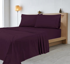 ROYALE LINENS 400 Thread Count 100% American Grown Cotton 4 Piece Sateen Sheet Set - 1 Fitted Sheet, 1 Flat Sheet, 2 Pillow case - Purple Bedsheet - Cotton Sheets - (Desert Purple)