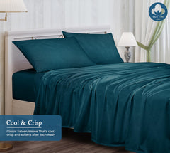 ROYALE LINENS 400 Thread Count 100% American Grown Cotton 4 Piece Sateen Sheet Set - 1 Fitted Sheet, 1 Flat Sheet, 2 Pillow case - Sea Green Bedsheet - Cotton Sheets - (Sea Green)