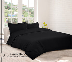 ROYALE LINENS Black Duvet Cover - Duvet Cover Set - 3 Piece Double Brushed Duvet Covers with Zipper Closure, 1 Duvet Cover and 2 Pillow Shams ( Black)