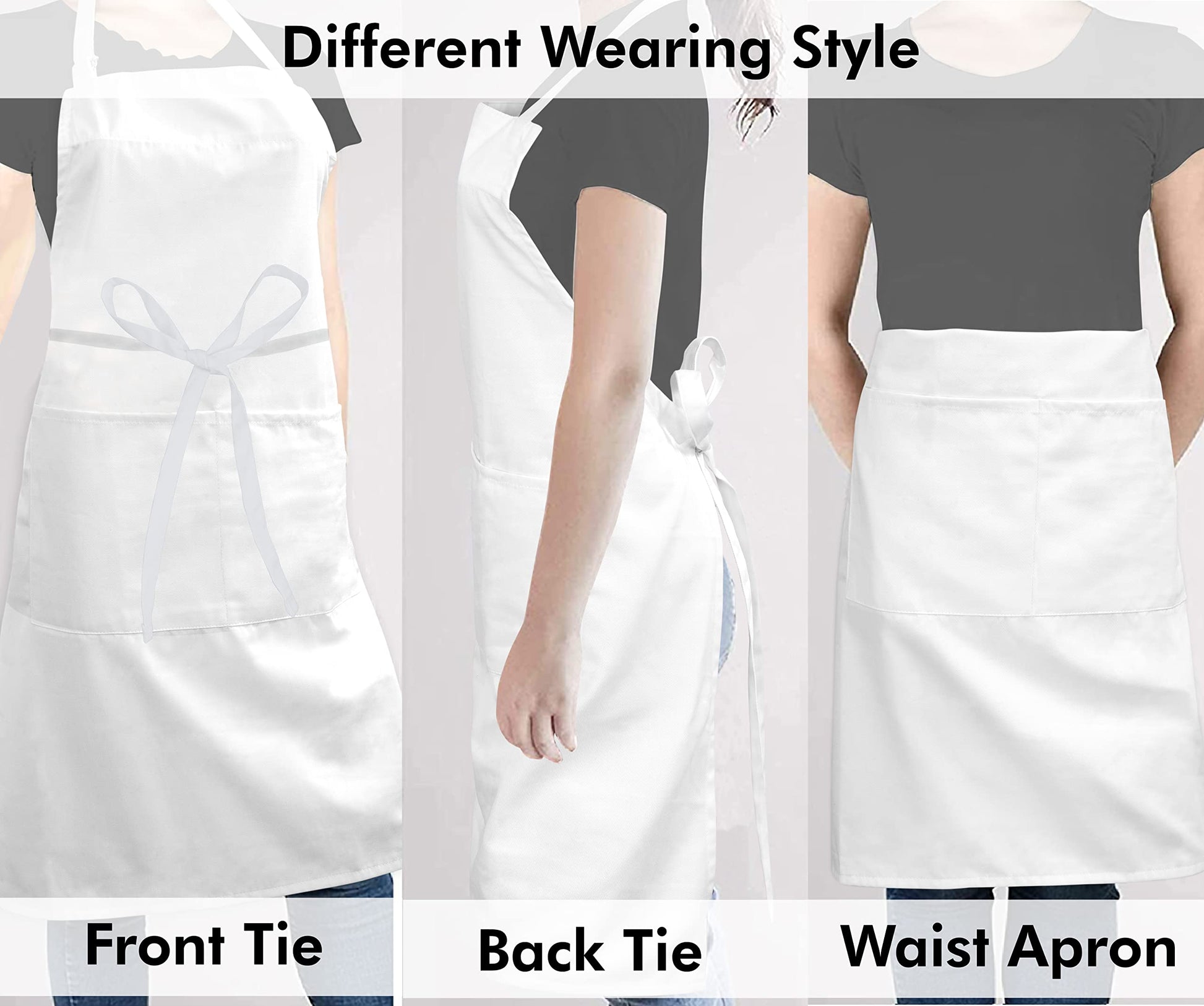 ROYALE LINENS 2 Pack Adjustable Bib Apron with 2 Pockets - Chef Cooking Kitchen Aprons for Women Men Chef (Pack Of 2, White)