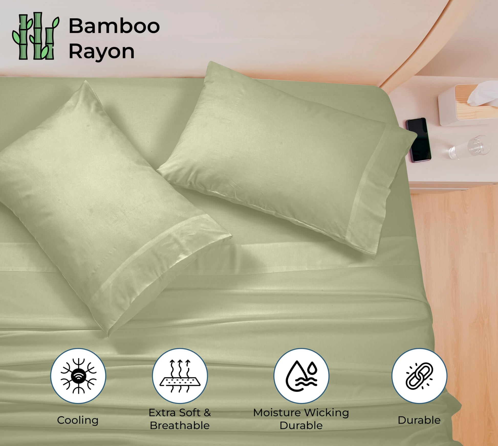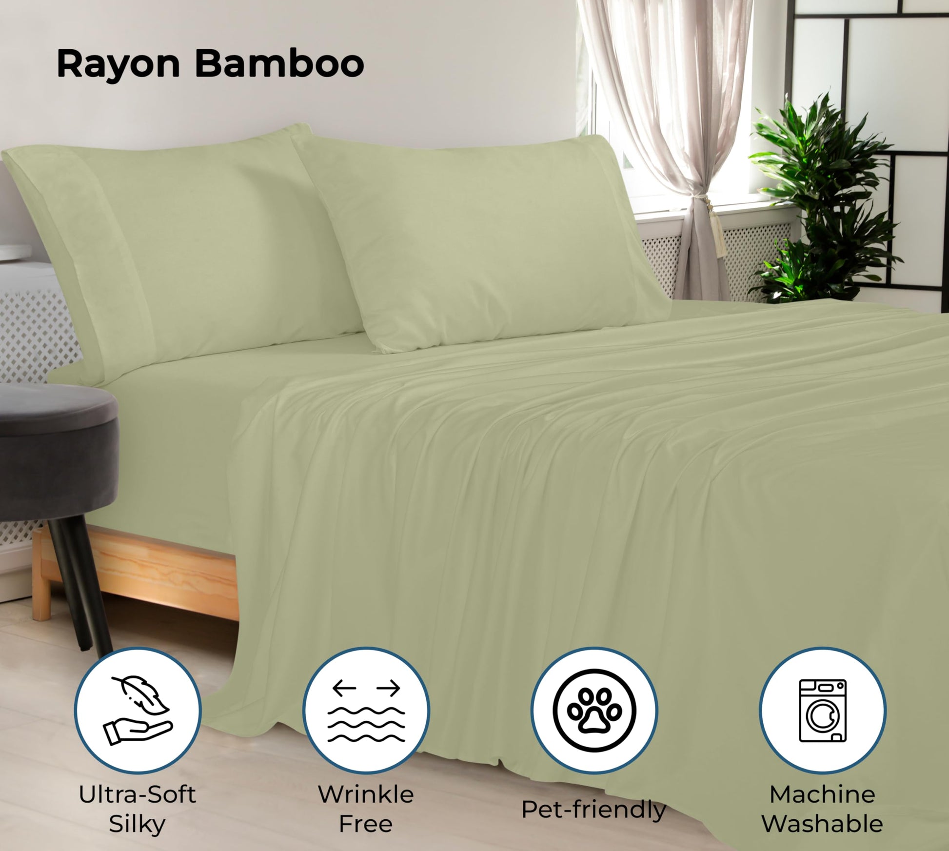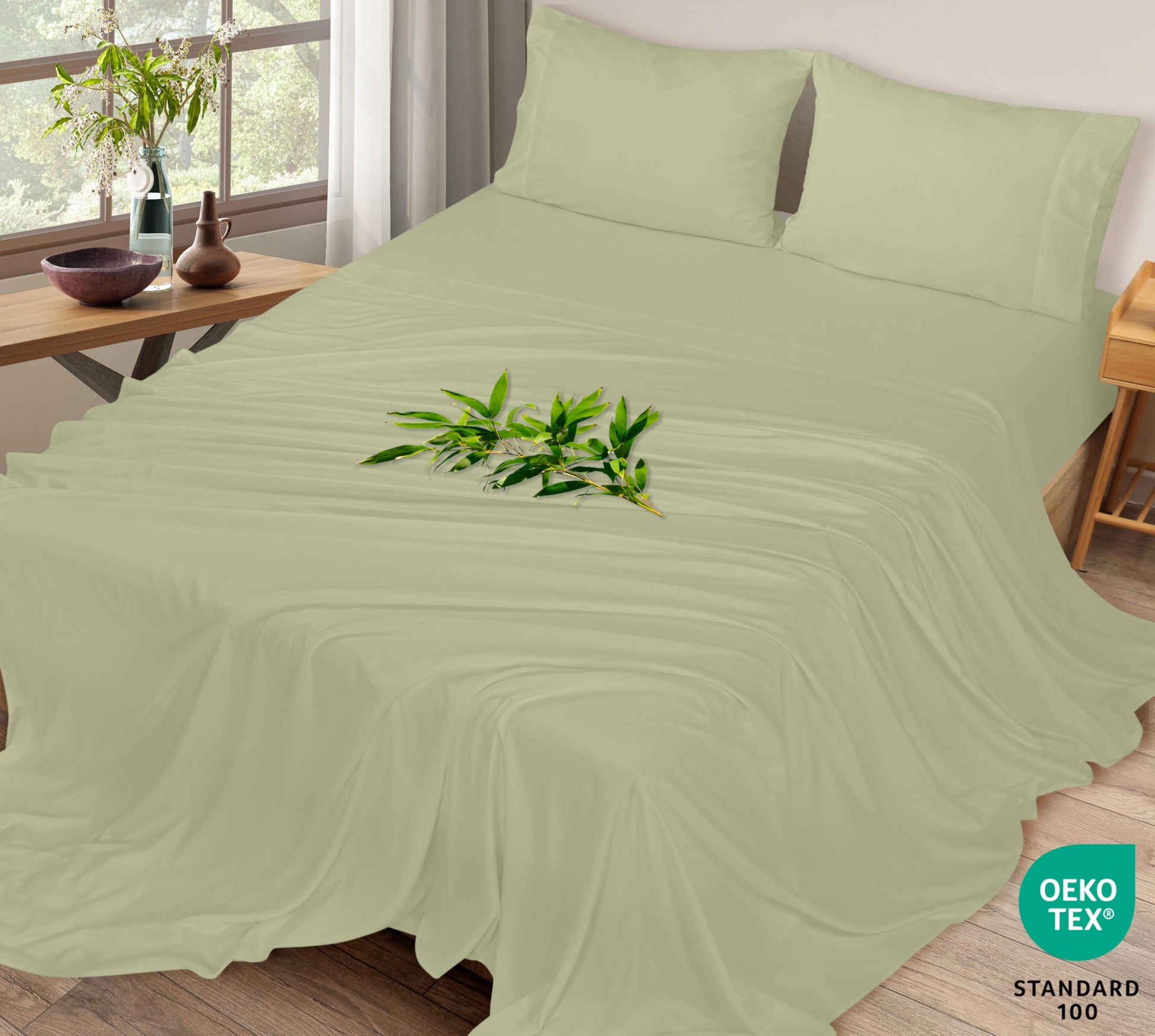 Royale Linen Bamboo Viscose Sheet Set - Cooling Bed Sheet Set - 1 Fitted 1 Flat & 2 Pillowcase - Fits Up to 16 - Organic Viscose Derived from Bamboo - Bedding Sheet &Pillowcase (SageGreen)