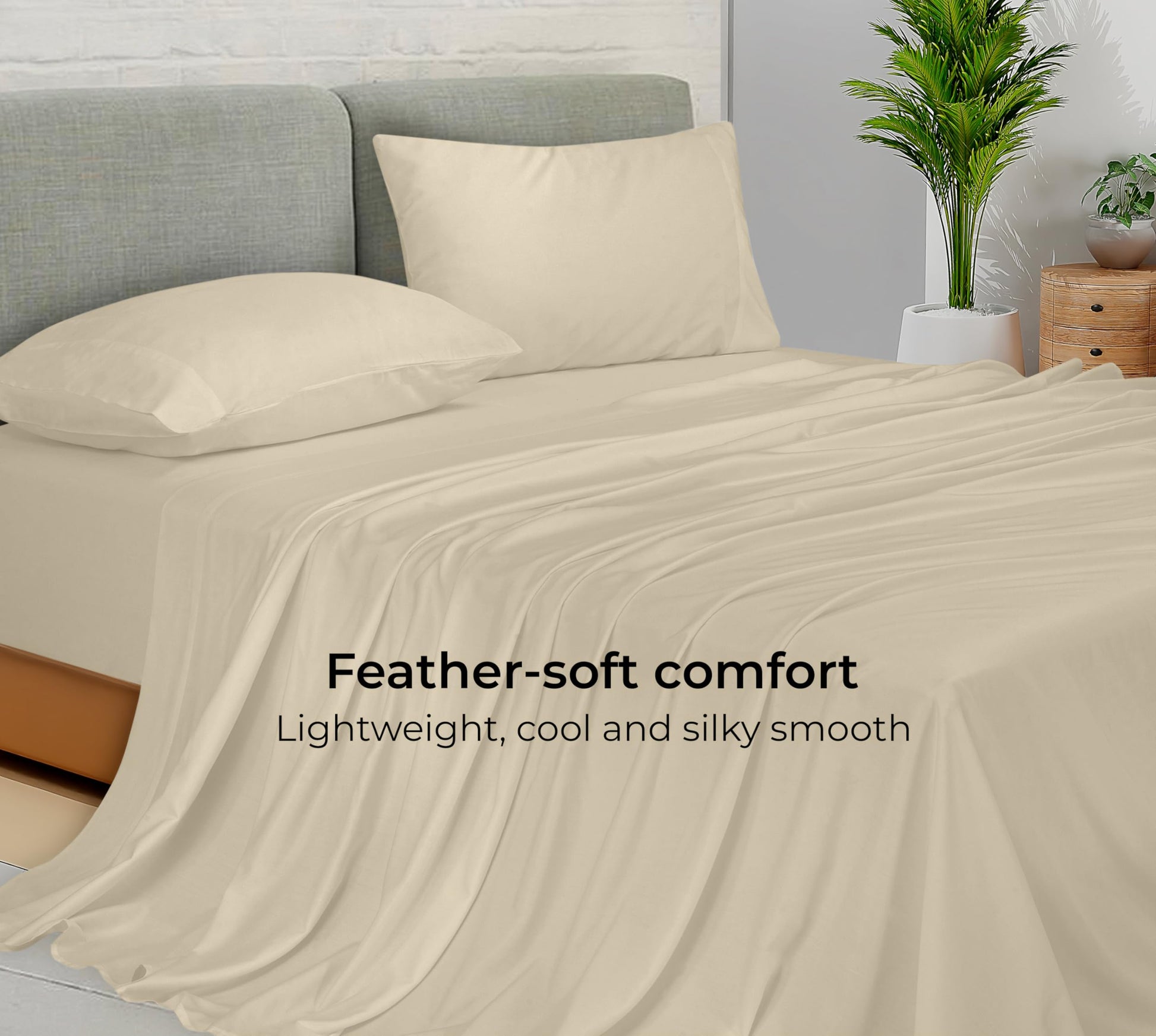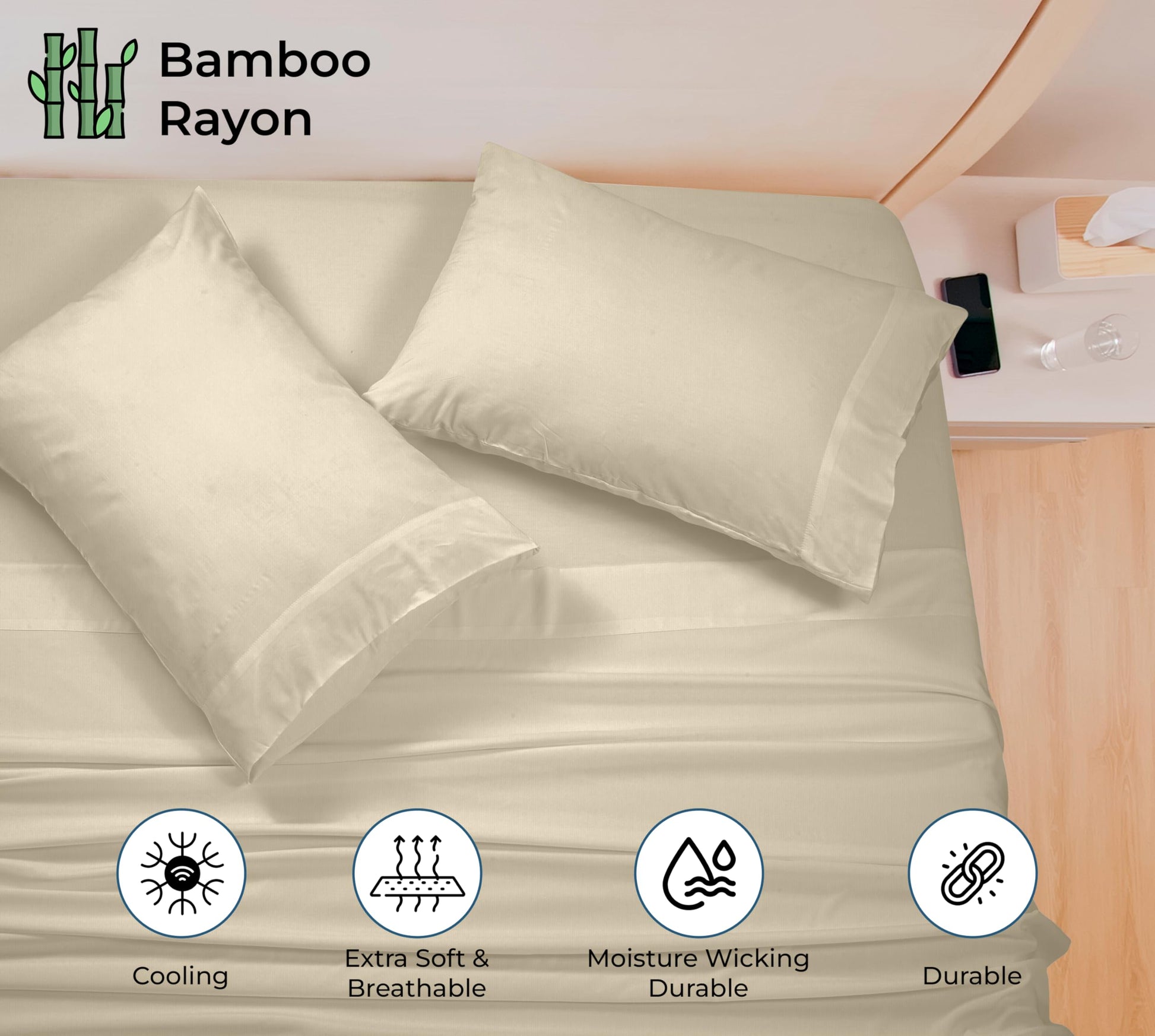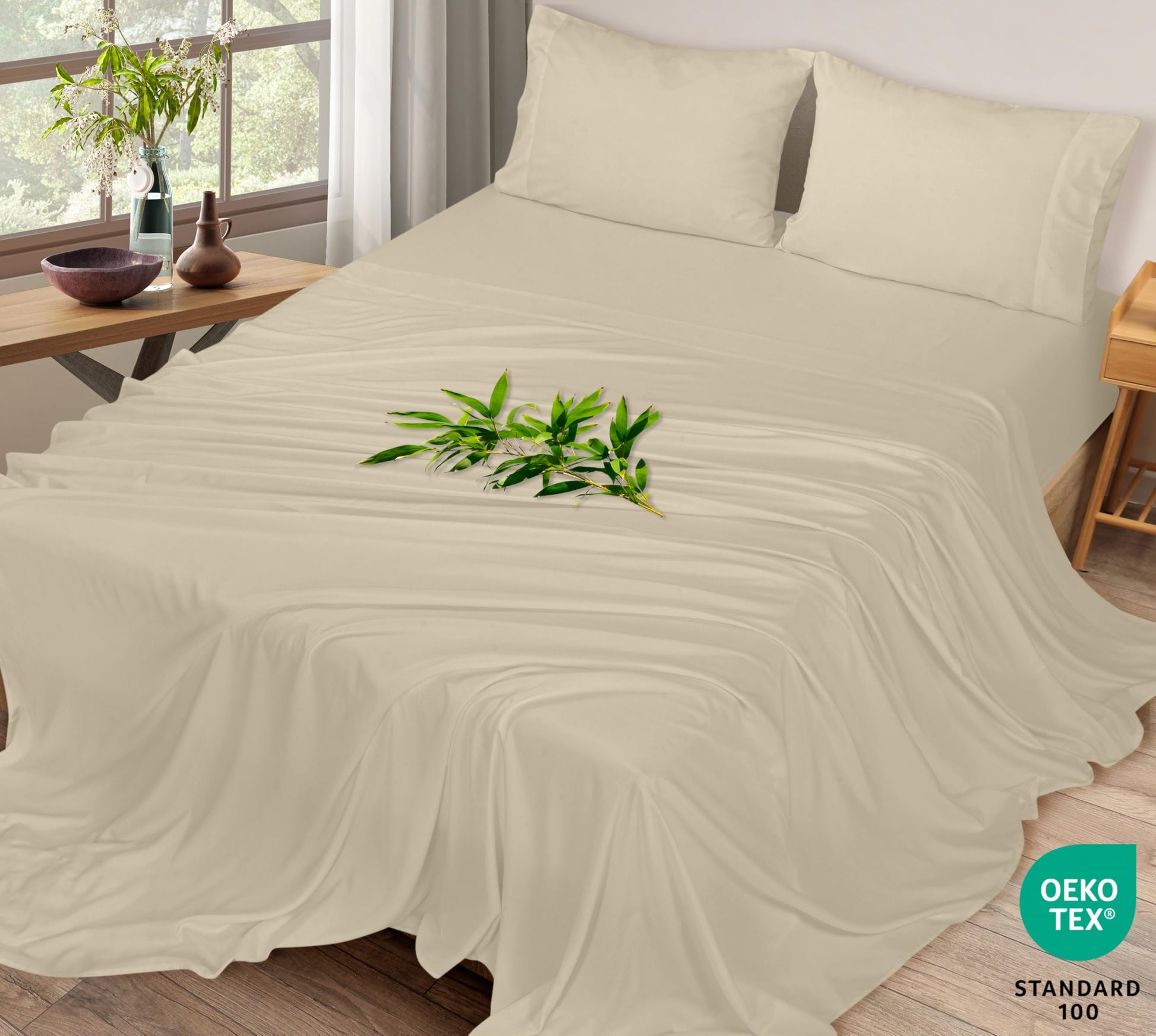 Royale Linens Bamboo Viscose Sheet Set - Cooling Bed Sheet Set - 1 Fitted, 1 Flat & 2 Pillowcase - Fits Up to 16" - Organic Viscose Derived from Bamboo - Bedding Sheet & Pillowcase (Sand)