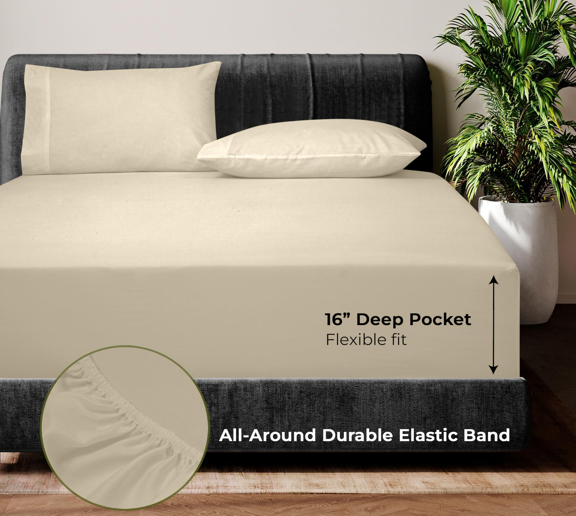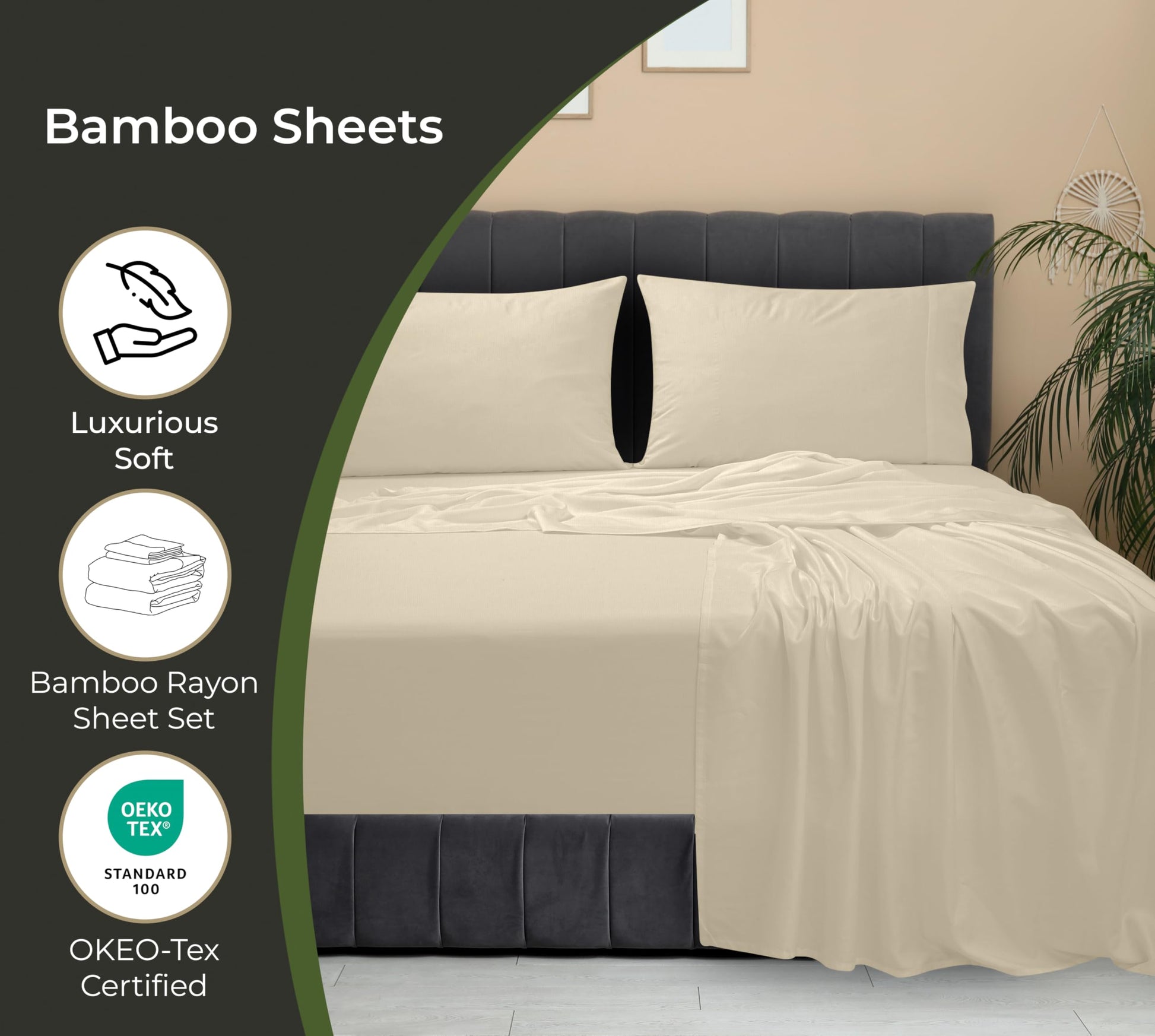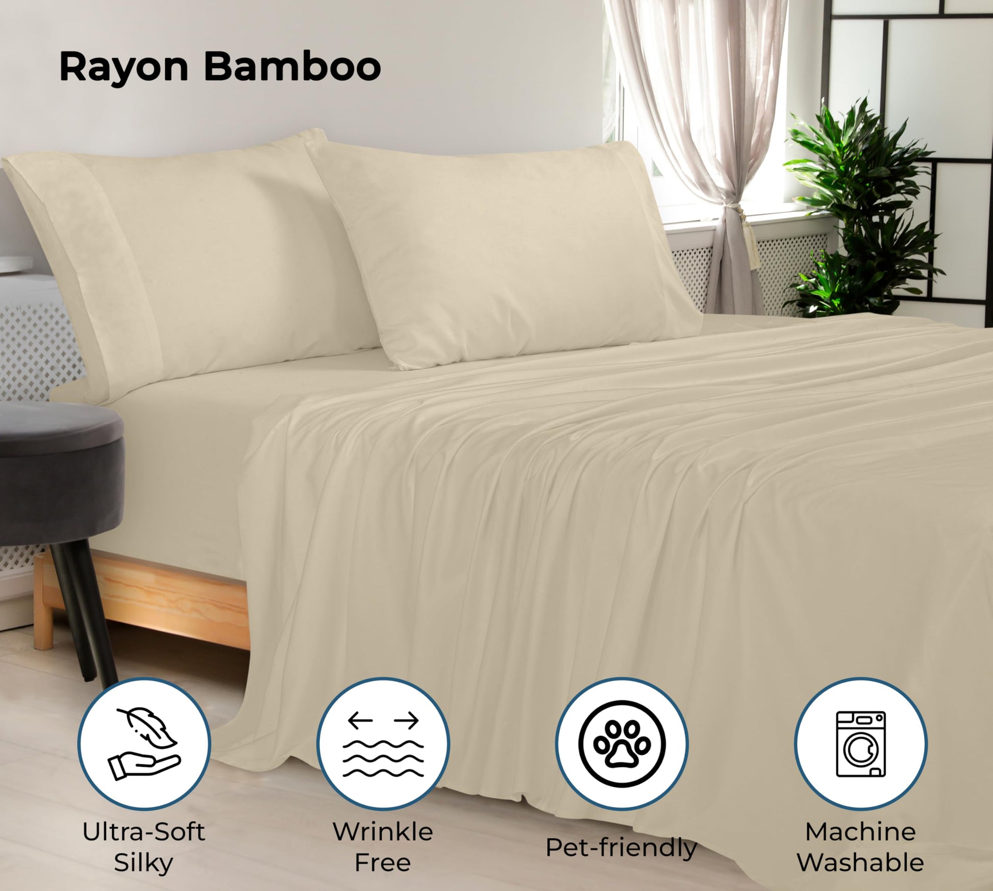 Royale Linens Bamboo Viscose Sheet Set - Cooling Bed Sheet Set - 1 Fitted, 1 Flat & 2 Pillowcase - Fits Up to 16" - Organic Viscose Derived from Bamboo - Bedding Sheet & Pillowcase (Sand)