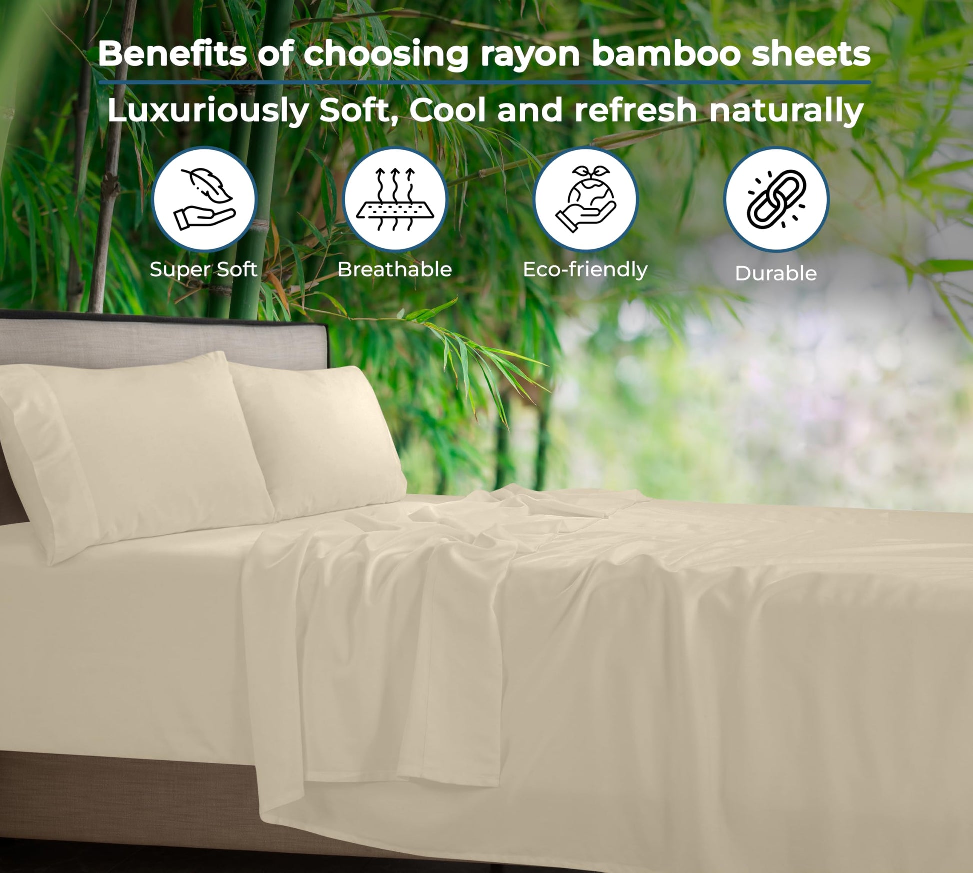 100% ORGANIC VISCOSE DERIVED FROM BAMBOO: Royale Linens Queen Sheet Sets Are Made From 100% Viscose Derived From Bamboo, For A Super Soft Feel That You Won't Want To Get Up From. Perfect For Hot Sleepers Or Those With Sensitive Skin While Indulging In The Ultimate Luxurious Softness. 4PC BAMBOO VISCOSE QUEEN SHEET SET WITH PILLOWCASE: This Sheet Set Include 1 Flat Sheet 90X102 Inches, 1 Fitted Sheet 60X80 Inches With 16 Inch Drop And 2 Pillow Case 20X30 Inches With Envelop Closure. COOLING DEEP POCKET SHEETS: Bamboo Viscose Sheet Set Are The Perfect Cool Sheets For Hot Sleepers - They're Thermoregulated To Stay Cool All Summer Long And Warm All Winter. They're Also Moisture Wicking To Prevent Sweat! OEKO-TEX - MADE IN GREEN - CERTIFIED: Our 100% Bamboo Viscose Sheet Sets Are Certified Standard 100 By Oeko?tex. According To The Guidelines, These Products Are Tested For Harmful Substances And Produced In An Environment Friendly And Socially Responsible Manner. Also Sustainable In Accordance With Oeko-tex Guidelines. CARE INSTRUCTIONS: Royale Linens Bamboo Viscose Bed Sheets Are Designed To Hold Up Repeated Washes. Machine Wash Cold, Only Non Chlorine Bleach, Tumble Dry Or Iron On Normal Temperature. Wash Before First Use To Unlock Softness