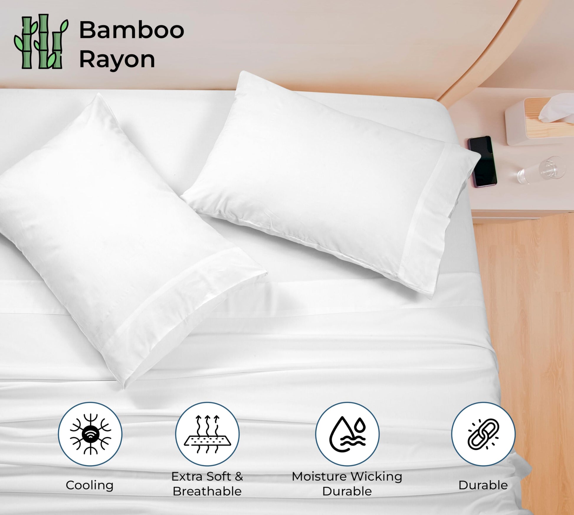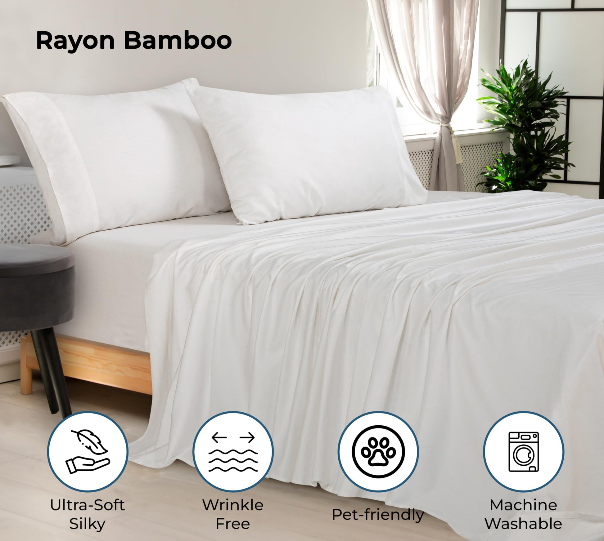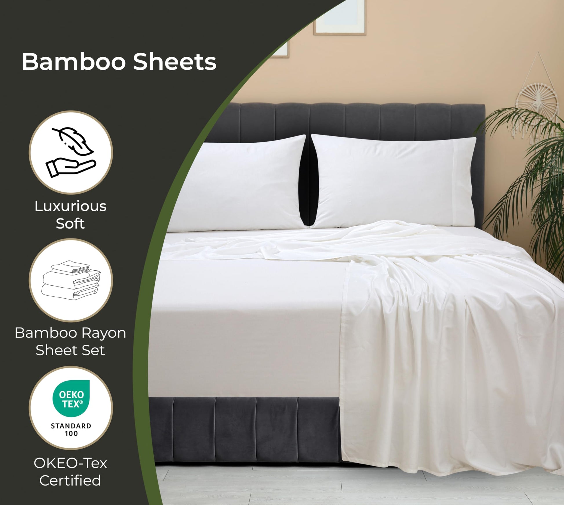 Royale Linen Bamboo Viscose Sheet Set - Cooling Bed Sheet Set - 1 Fitted, 1 Flat & 2 Pillowcase - Fits Up to 16" - Organic Viscose Derived from Bamboo - Bedding Sheet & Pillowcase (White)