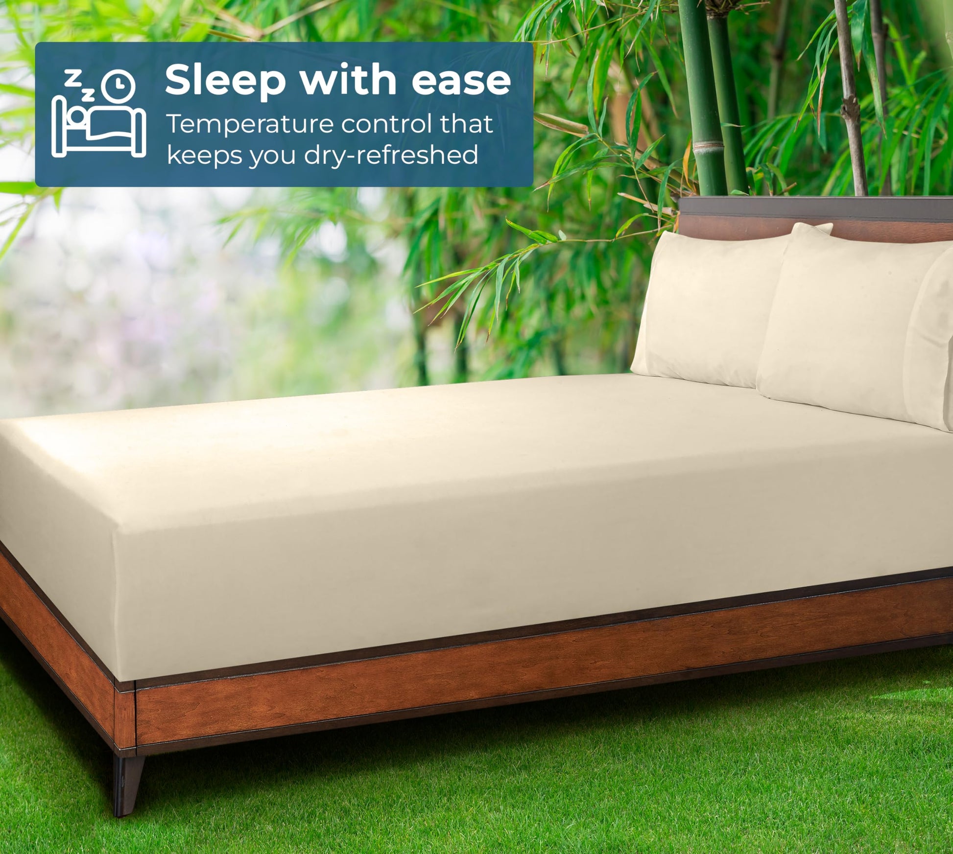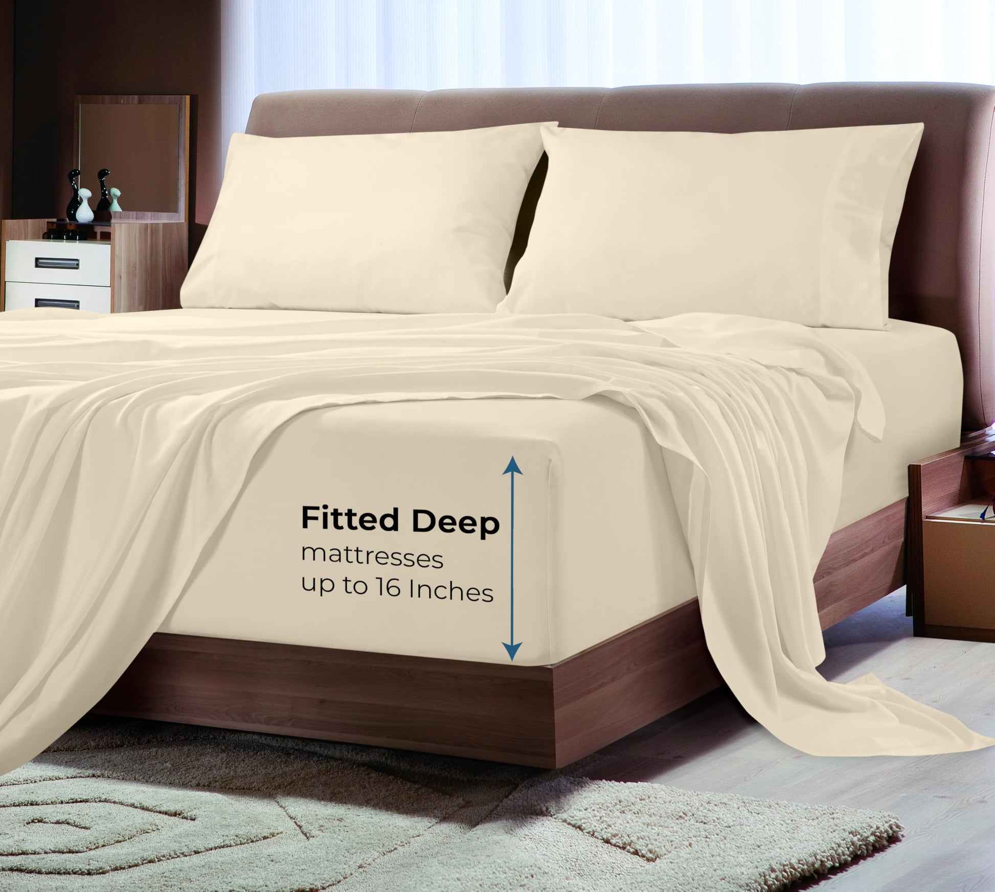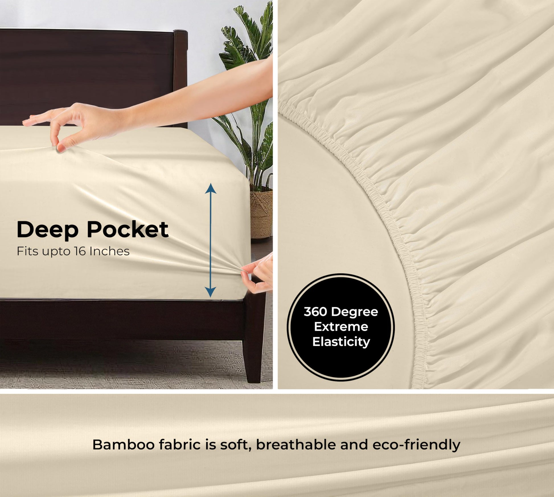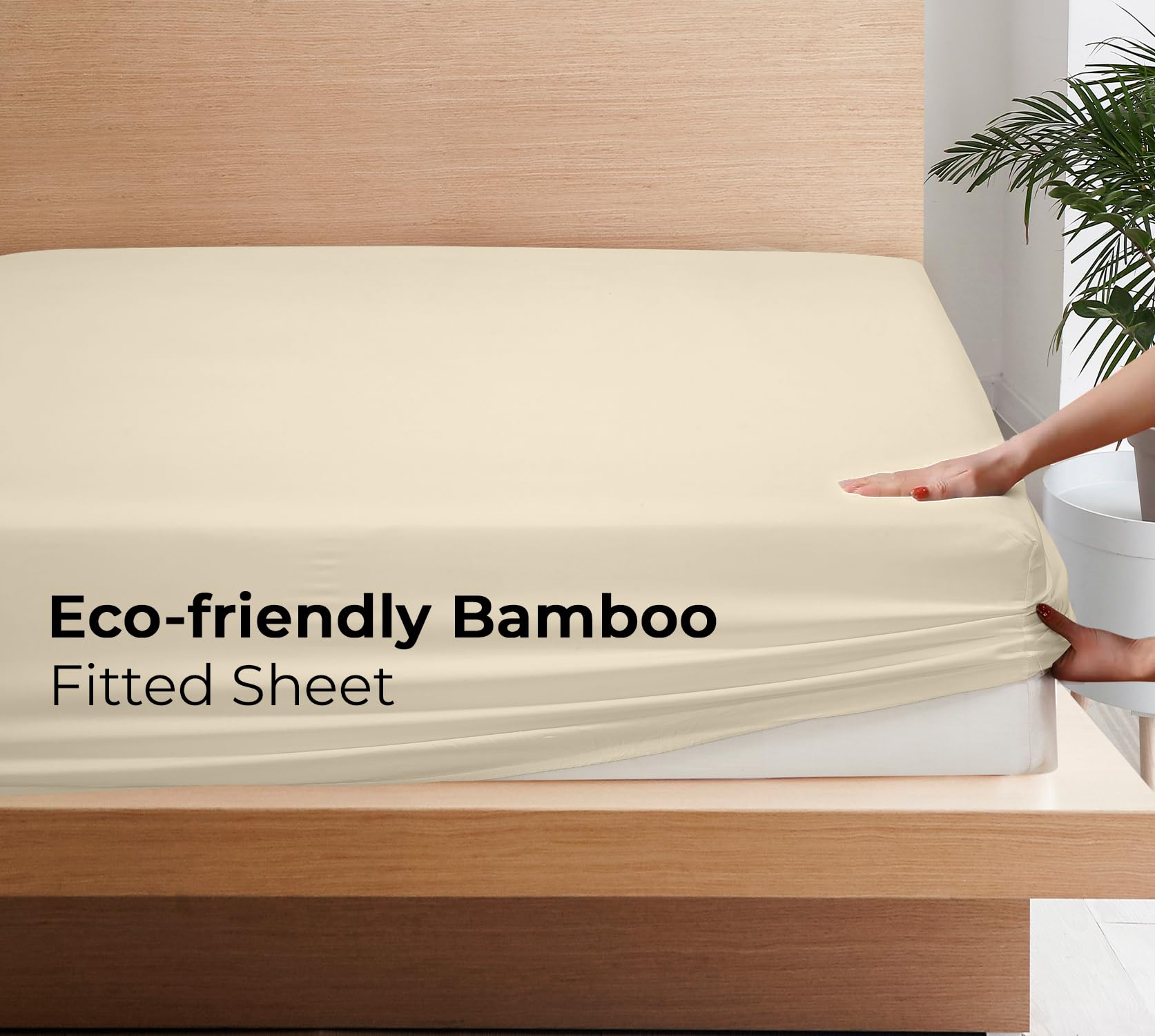 Royale Linens Rayon Derived Bamboo Viscose Fitted Sheet Only - Cooling Fitted Sheets for Bed - Deep Pocket Up to 16" - Organic Viscose Derived from Bamboo - Breathable Bottom Sheet (Sand)