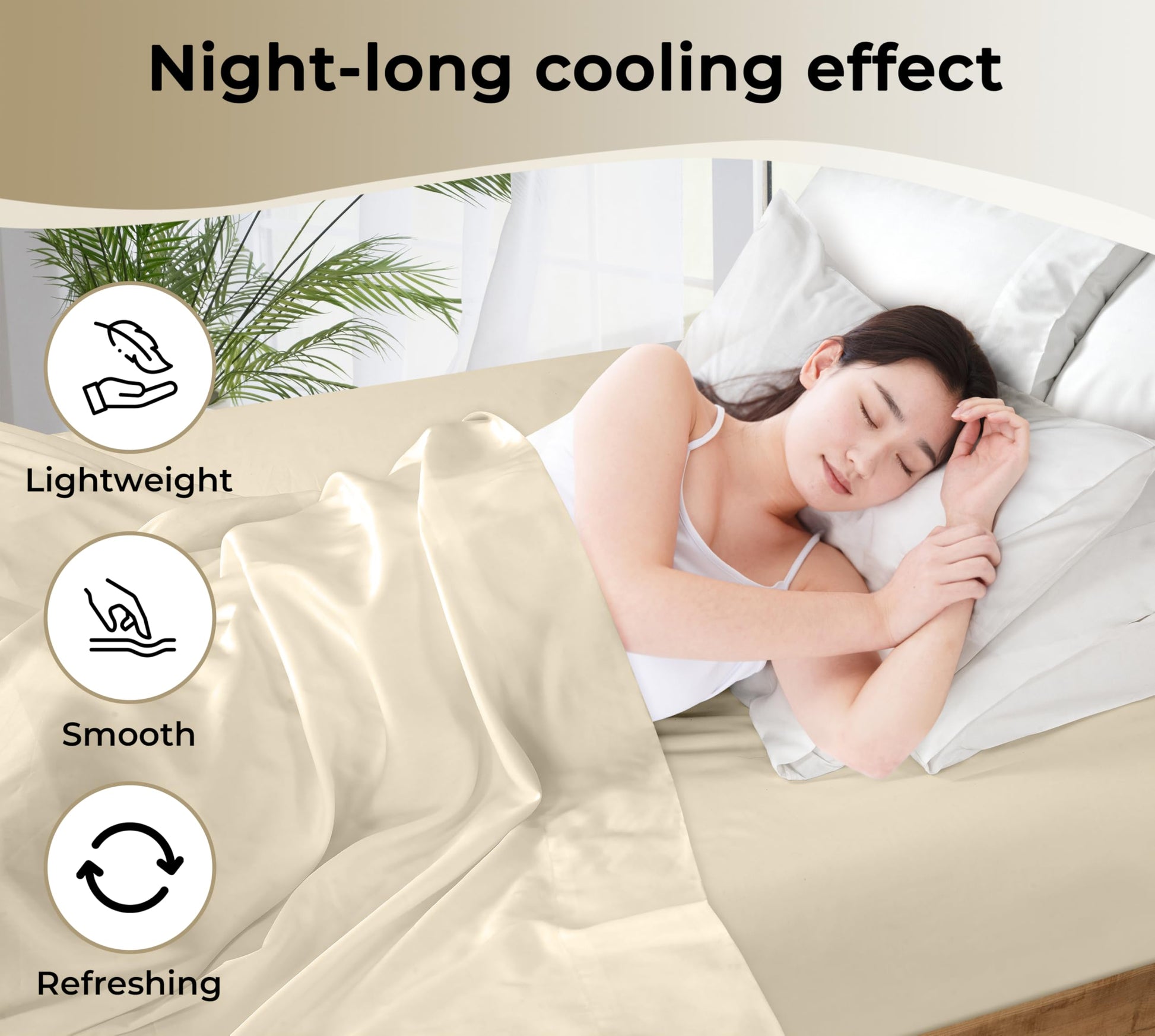COOLING DEEP POCKET SHEETS: Bamboo Viscose Fitted Sheet Set Are The Perfect Cool Sheets For Hot Sleepers - They're Thermoregulated To Stay Cool All Summer Long And Warm All Winter. They're Also Moisture Wicking To Prevent Sweat!