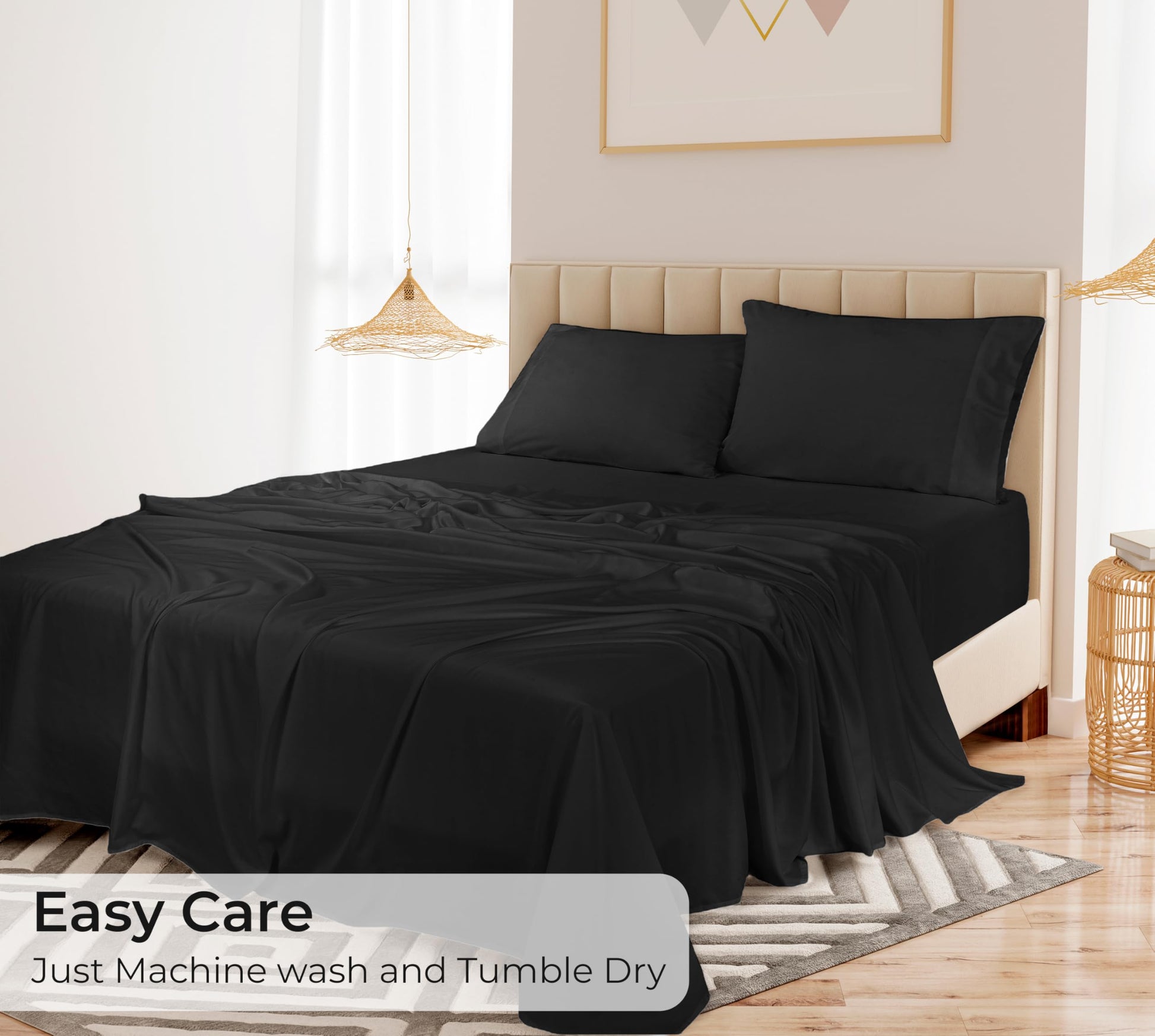 Royale Linens Bamboo Viscose Flat Sheets Only - Cooling Sheets - Organic Viscose Derived from Bamboo - Flat Sheet Only - Top Sheet - Breathable & Silky Bedding (Black)