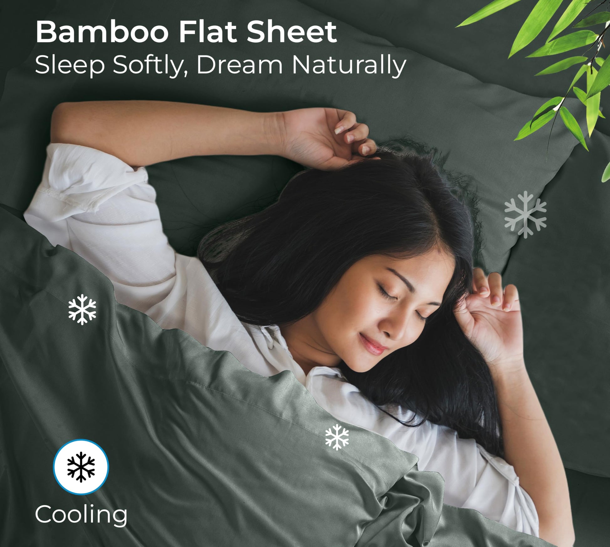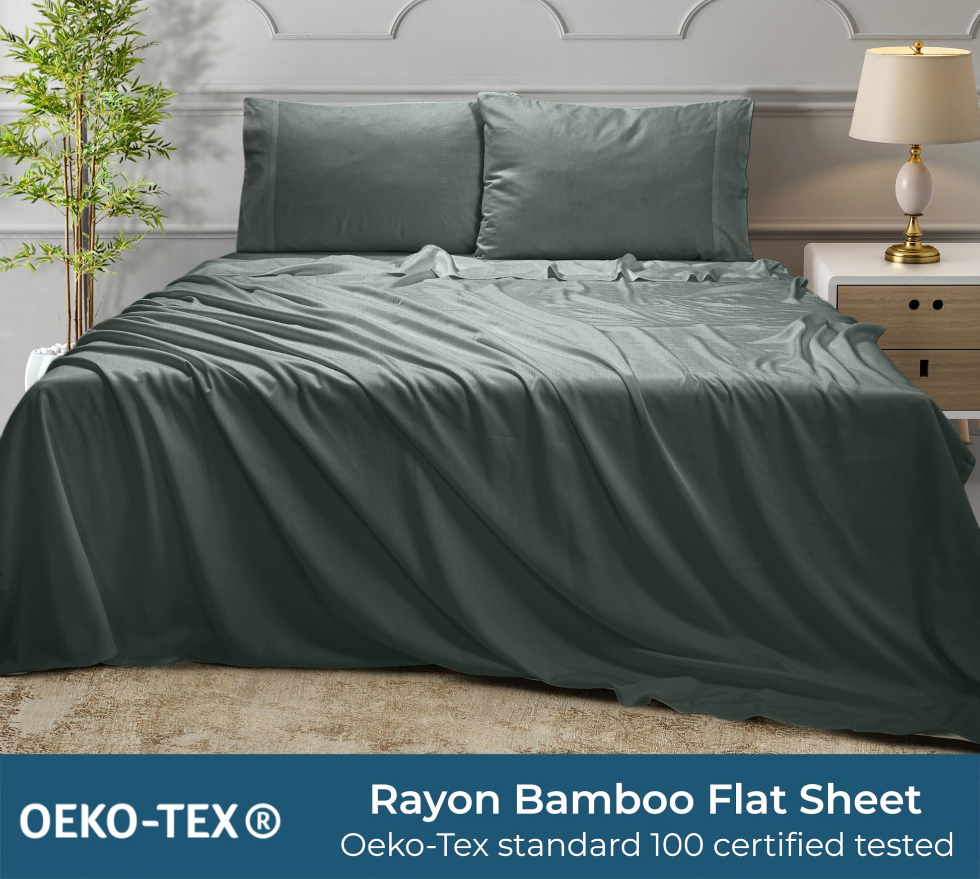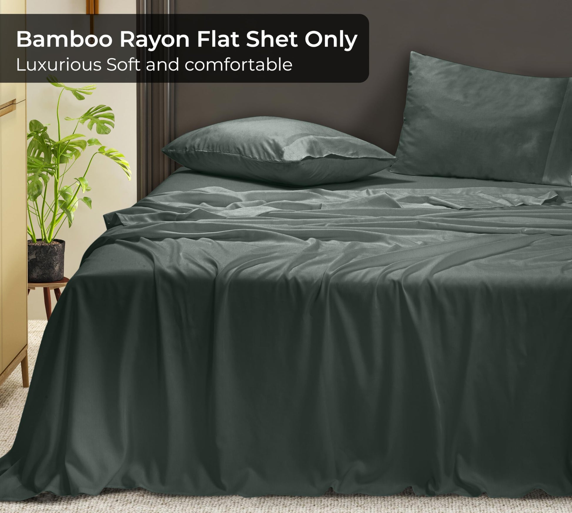 Royale Linens Bamboo Viscose Flat Sheets Only - Cooling Sheets - Organic Viscose Derived from Bamboo - Flat Sheet Only - Top Sheet - Breathable & Silky Bedding (Grey)