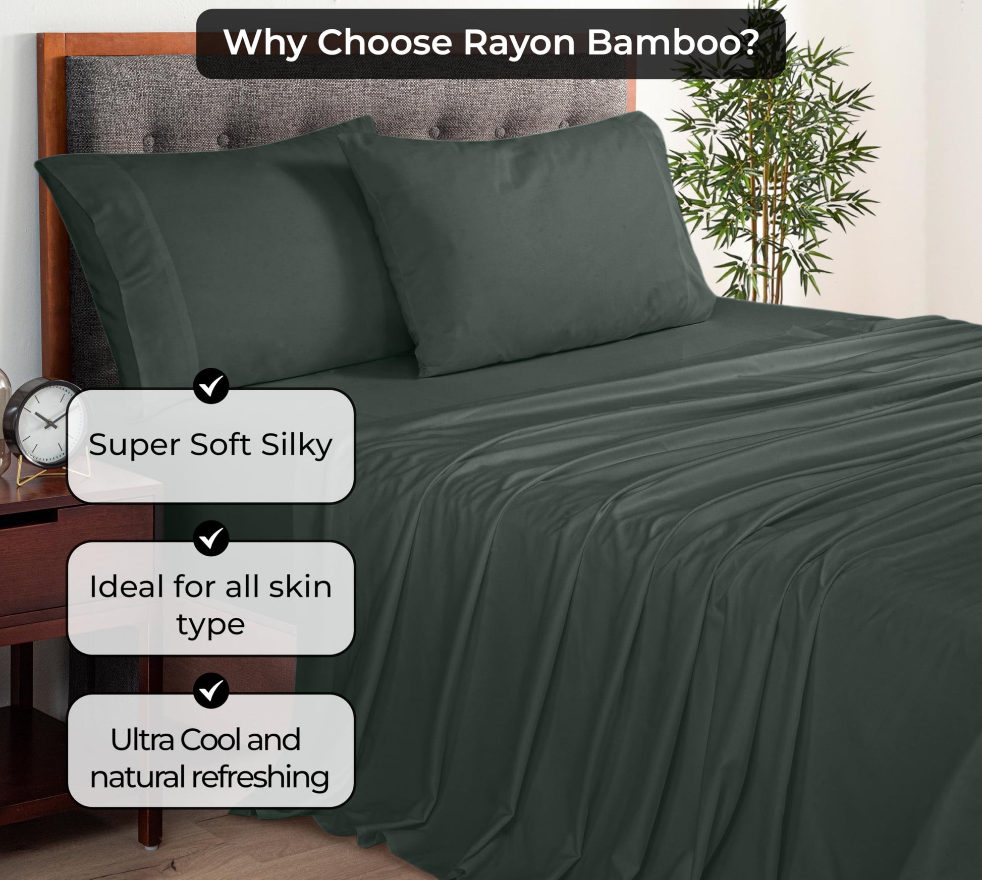 "ORGANIC VISCOSE DERIVED FROM BAMBOO: Royale Linens 300 Thread Count Queen Bamboo Viscose Flat Sheet Are Made From 100% Viscose Derived From Bamboo, For A Super Soft Feel That You Won't Want To Get Up From. Perfect For Hot Sleepers Or Those With Sensitive Skin While Indulging In The Ultimate Luxurious Softness. PERFECT COOLING SHEETS: Bamboo Viscose Flat Sheet Queen Size Flat Sheet Measures 90 By 102 Inches With Fancy 4 Inch Z-Hem Piping Adding A Unique Design and Elegant style. These Flat Sheet Only are ultra soft. Fabric is breathable, Fade and wrinkle resistant. They are friendly to your skin and hair. Also very comfortable and great material to sleep on. Warm in winter, cool in summer Good sewing stitch and exquisite workmanship make it durable COMFORTABLE & VIBRANT COLORS: Create the bedroom of your dreams with our stunning Collection of Vibrant colors And elegant design Sheets. Royale Linens Bamboo Derived Rayon Flat Sheet provide you with irresistible comfort, rest and relaxation. Hotel-style luxury, sumptuous softness and classic Look. OEKO-TEX CERTIFIED: Rayon Derived from Bamboo Flat Sheet Are Certified Standard 100 By Oeko?Tex. According To The Guidelines, These Products Are Tested For Harmful Substances And Produced In An Environmentally Friendly And Socially Responsible Manner. Sustainable In Accordance With OEKO-TEX Guidelines. CARE INSTRUCTIONS: Royale Linens Rayon Derived from Bamboo Viscose Top Sheets Are Designed To Hold Up Repeated Washes. Machine Wash Cold, Only Non Chlorine Bleach, Tumble Dry Or Iron On Normal Temperature"