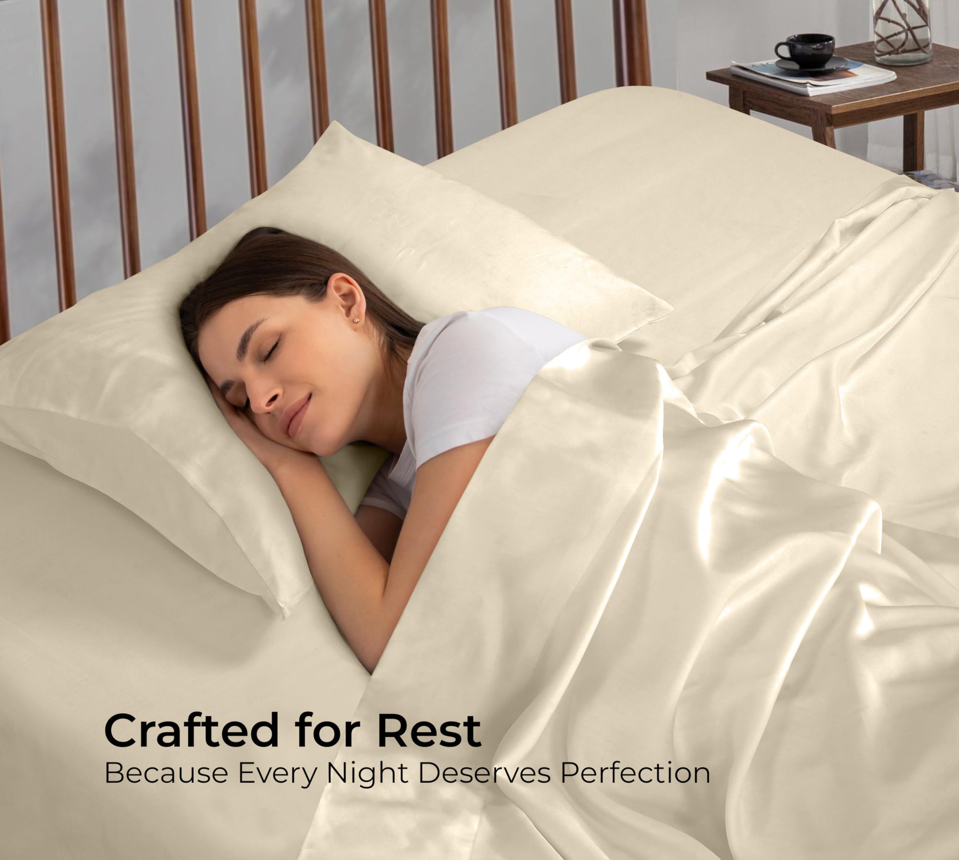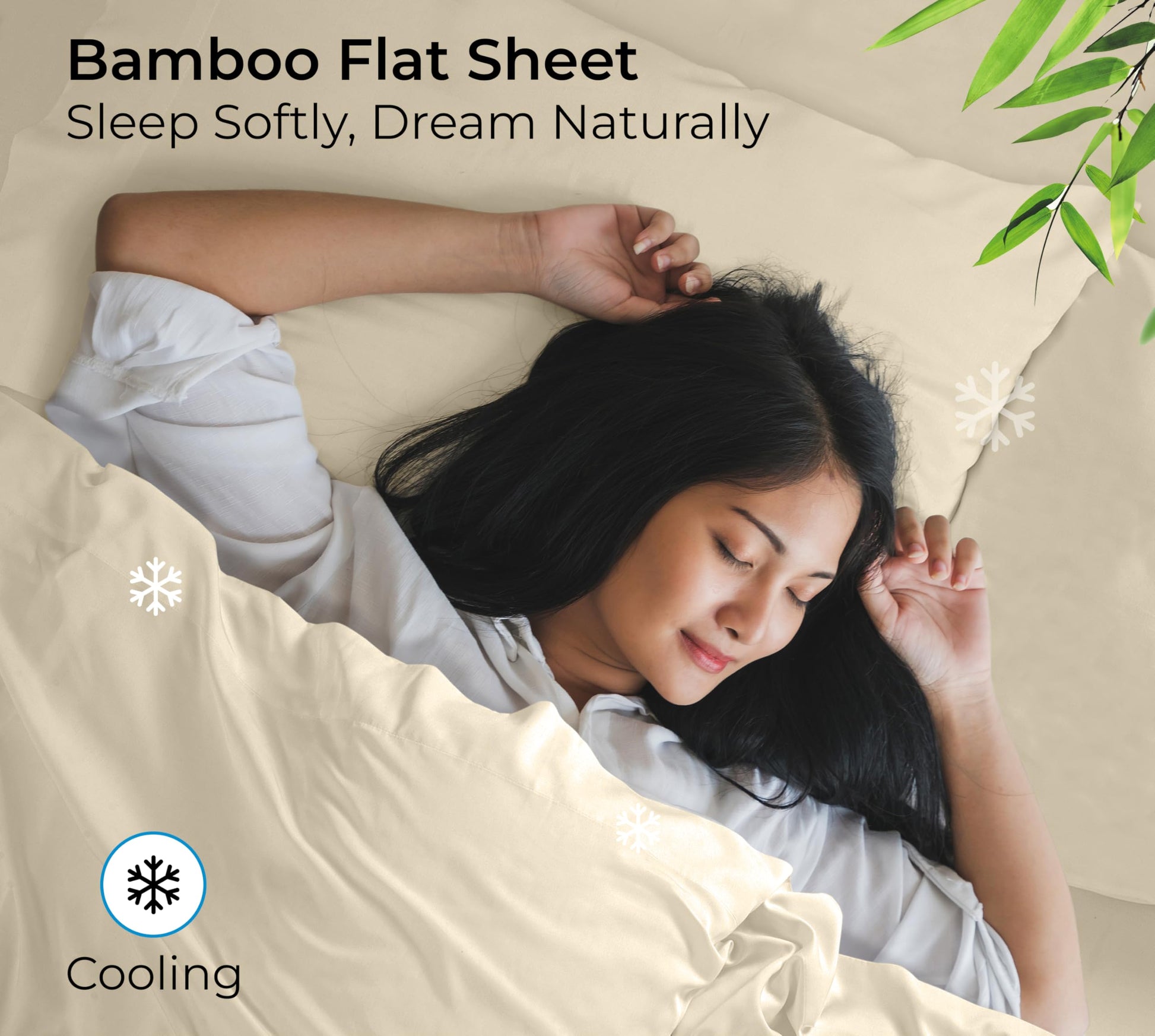 Royale Linens Bamboo Viscose Flat Sheets Only - Cooling Sheets - Organic Viscose Derived from Bamboo - Flat Sheet Only - Top Sheet - Breathable & Silky Bedding (Sand)
