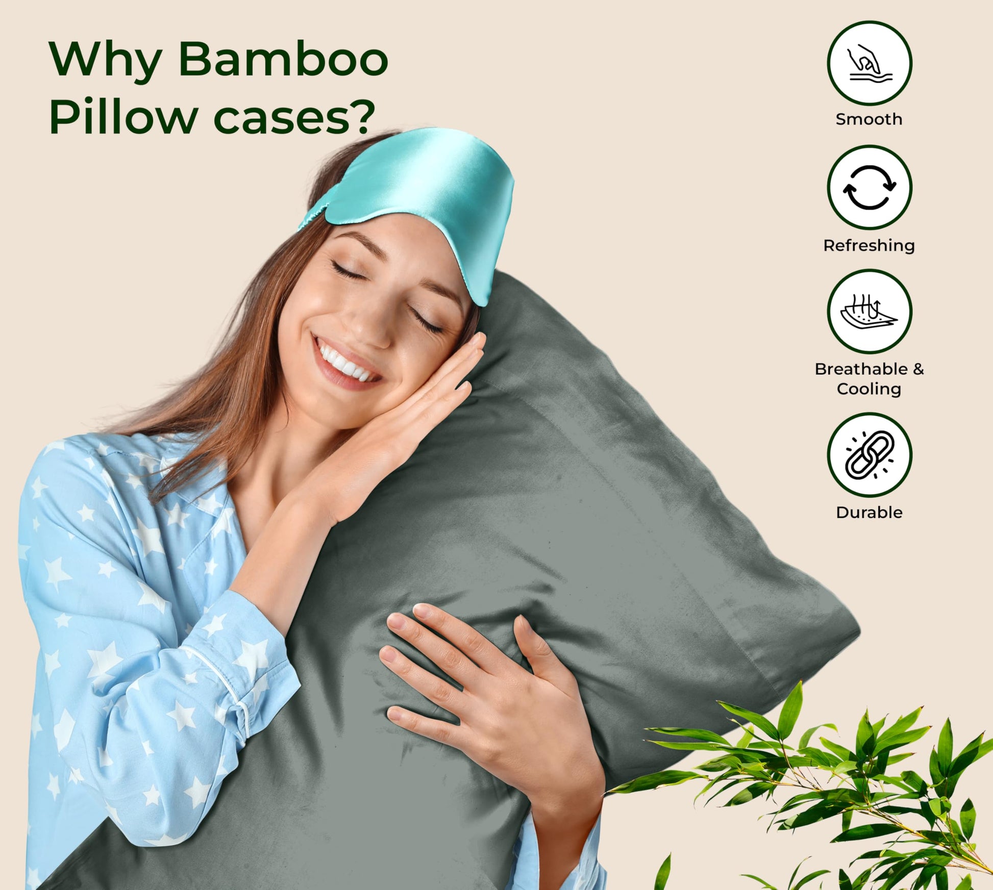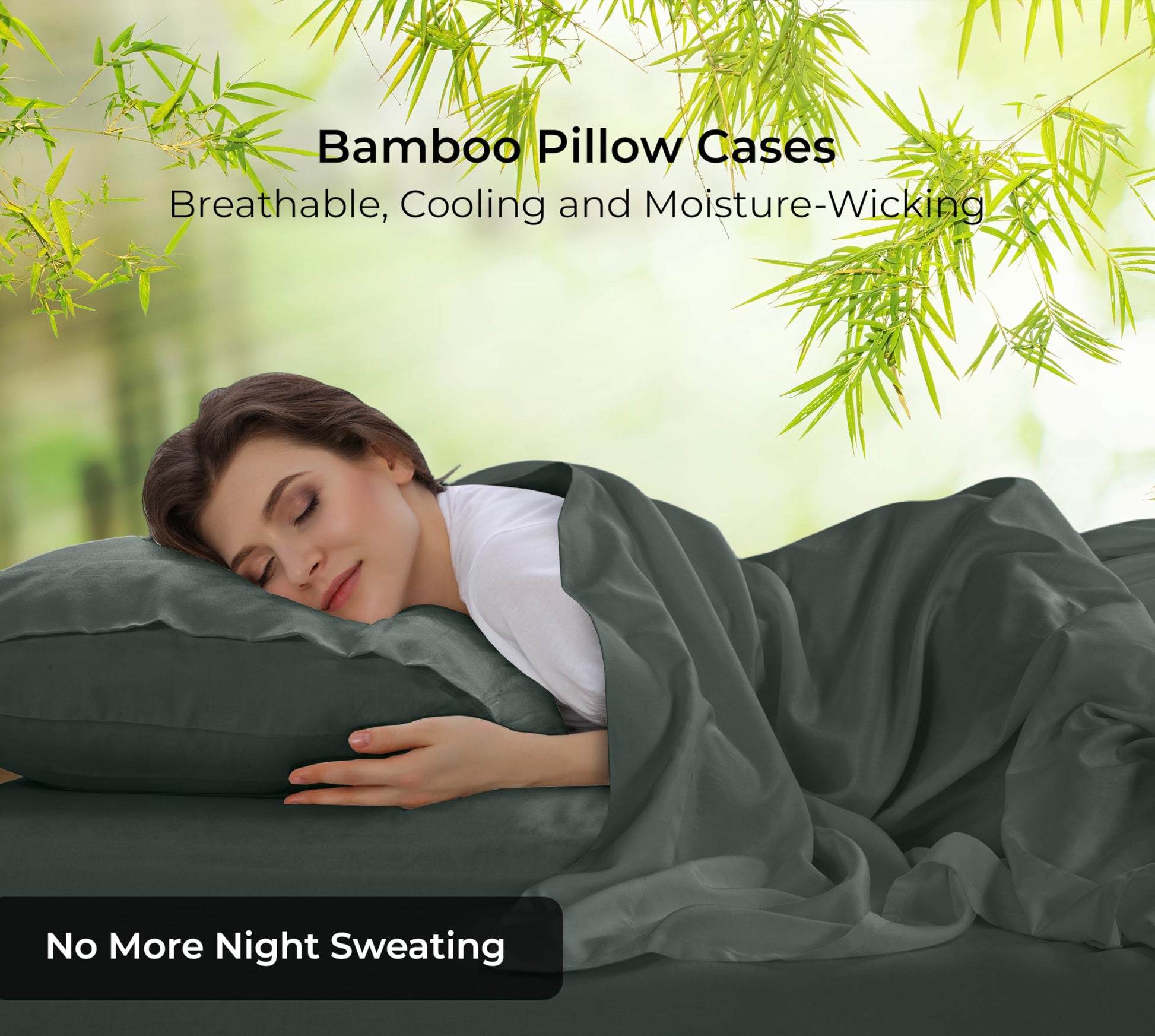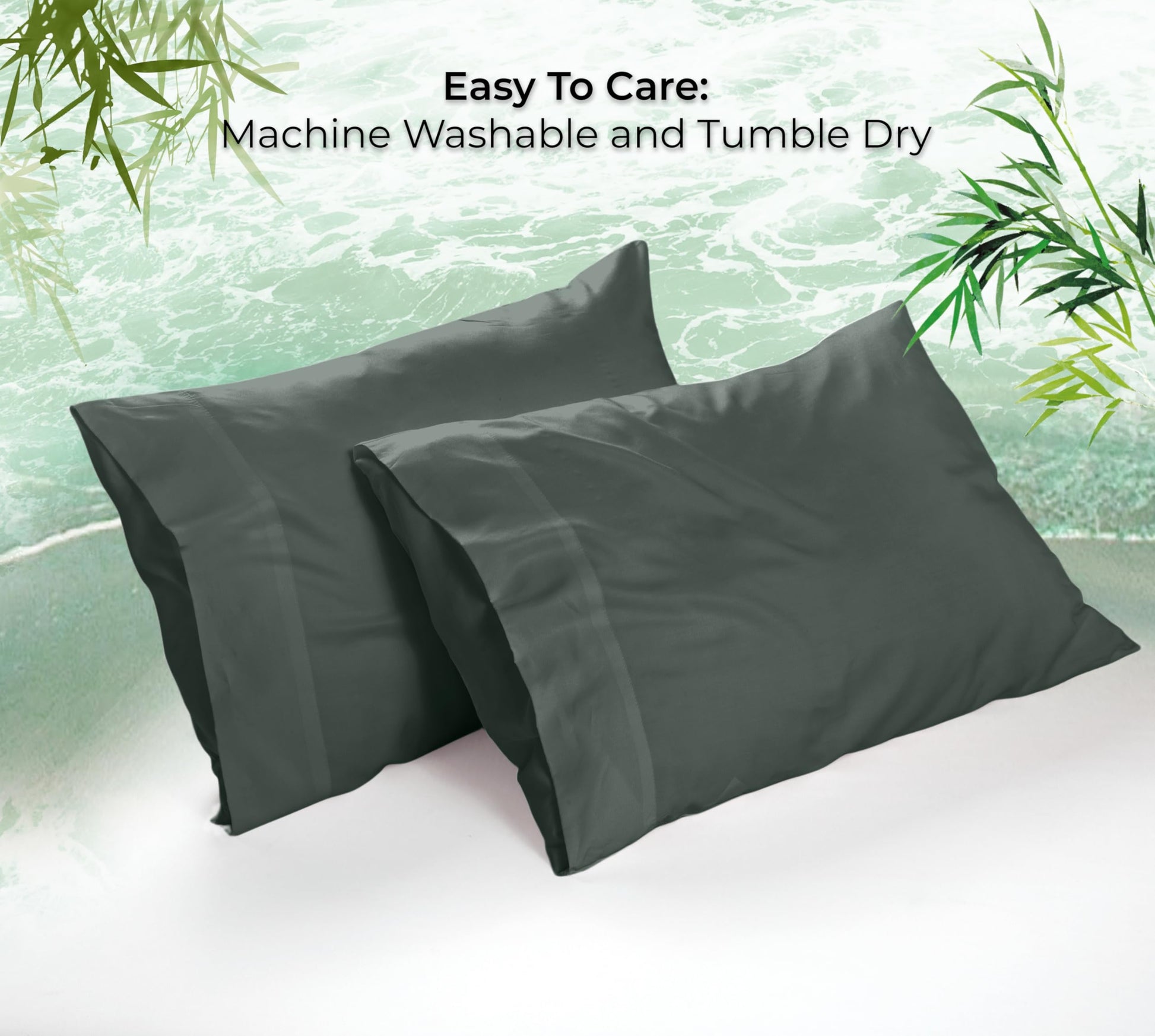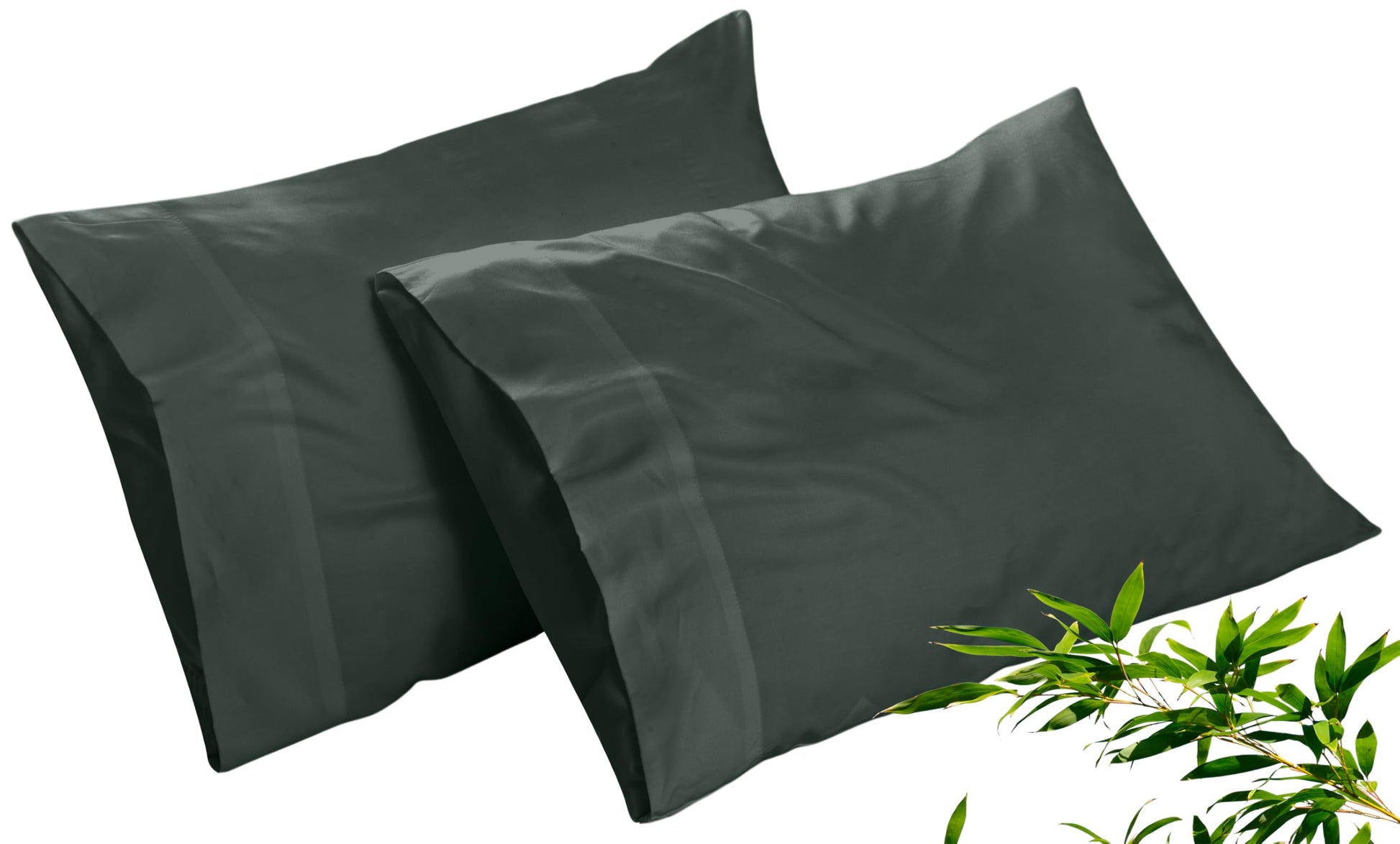Royale Linens Cooling Pillow Cases Set of 2-100% Rayon Derived from Bamboo Cooling Pillowcase for Hot Sleepers - Soft & Silky Pillow Covers with Envelope Closure (Grey)