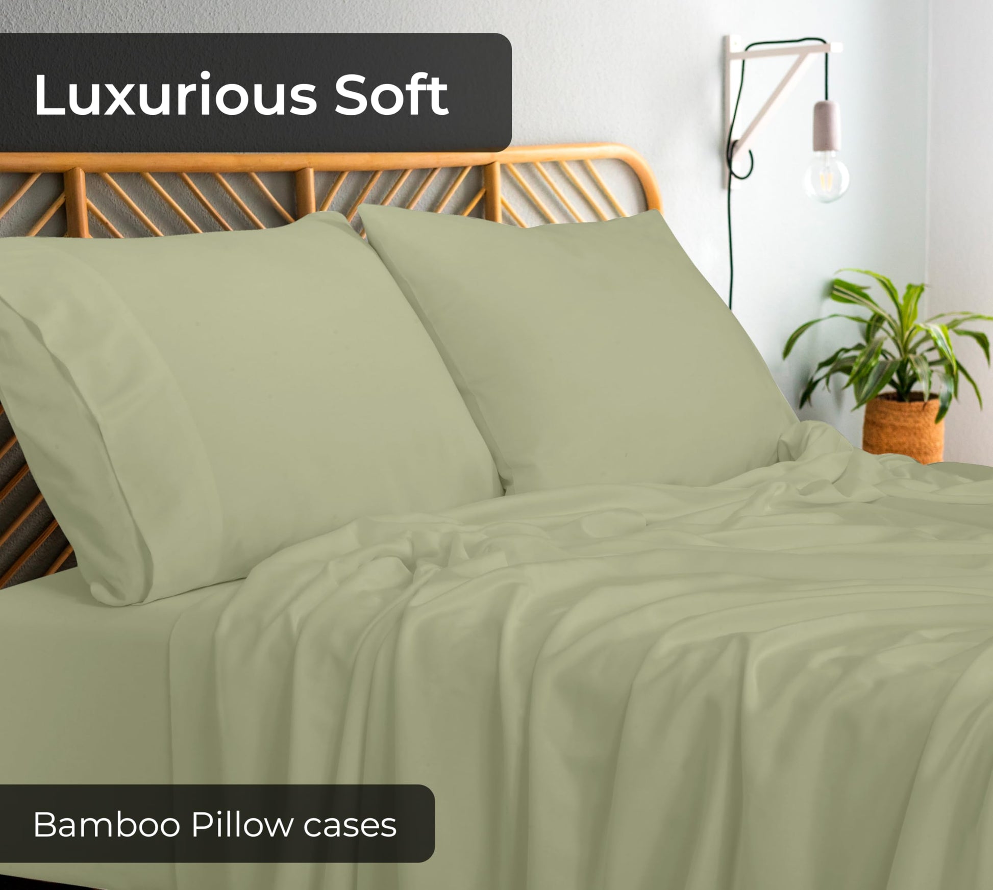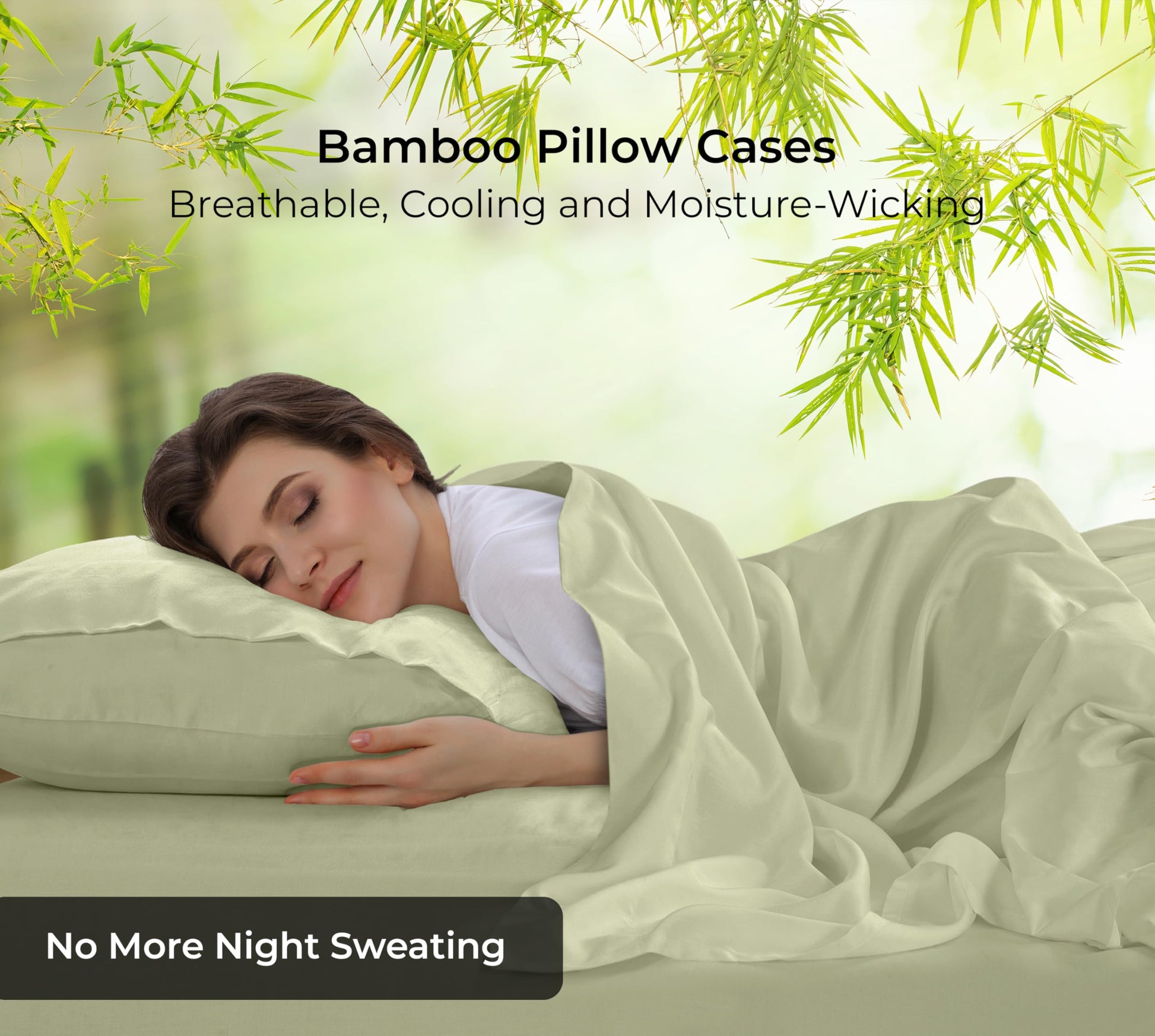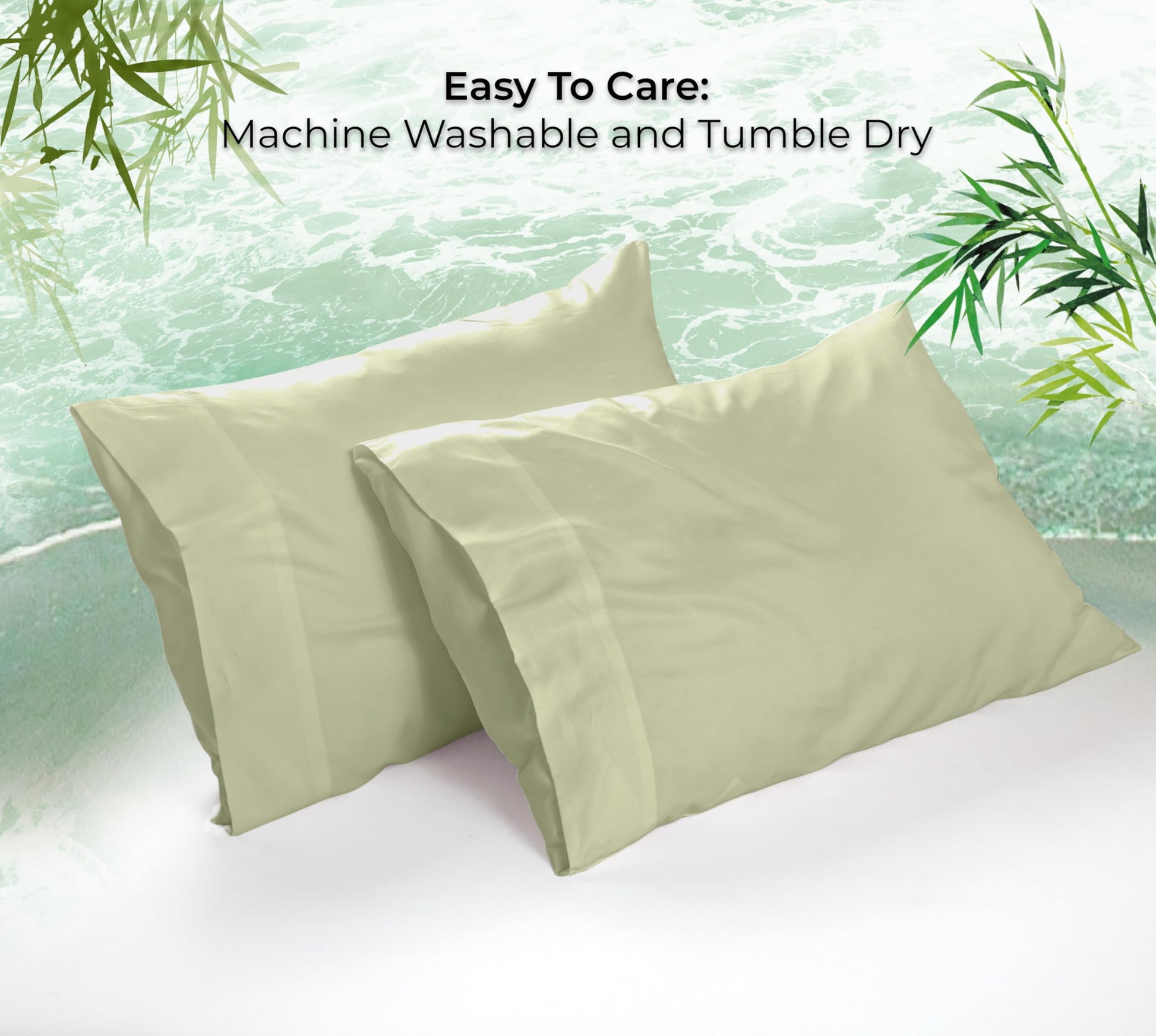 Royale Linens Cooling Pillow Cases Set of 2-100% Rayon Derived from Bamboo Cooling Pillowcase for Hot Sleepers - Soft & Silky Pillow Covers with Envelope Closure (Sage Green)