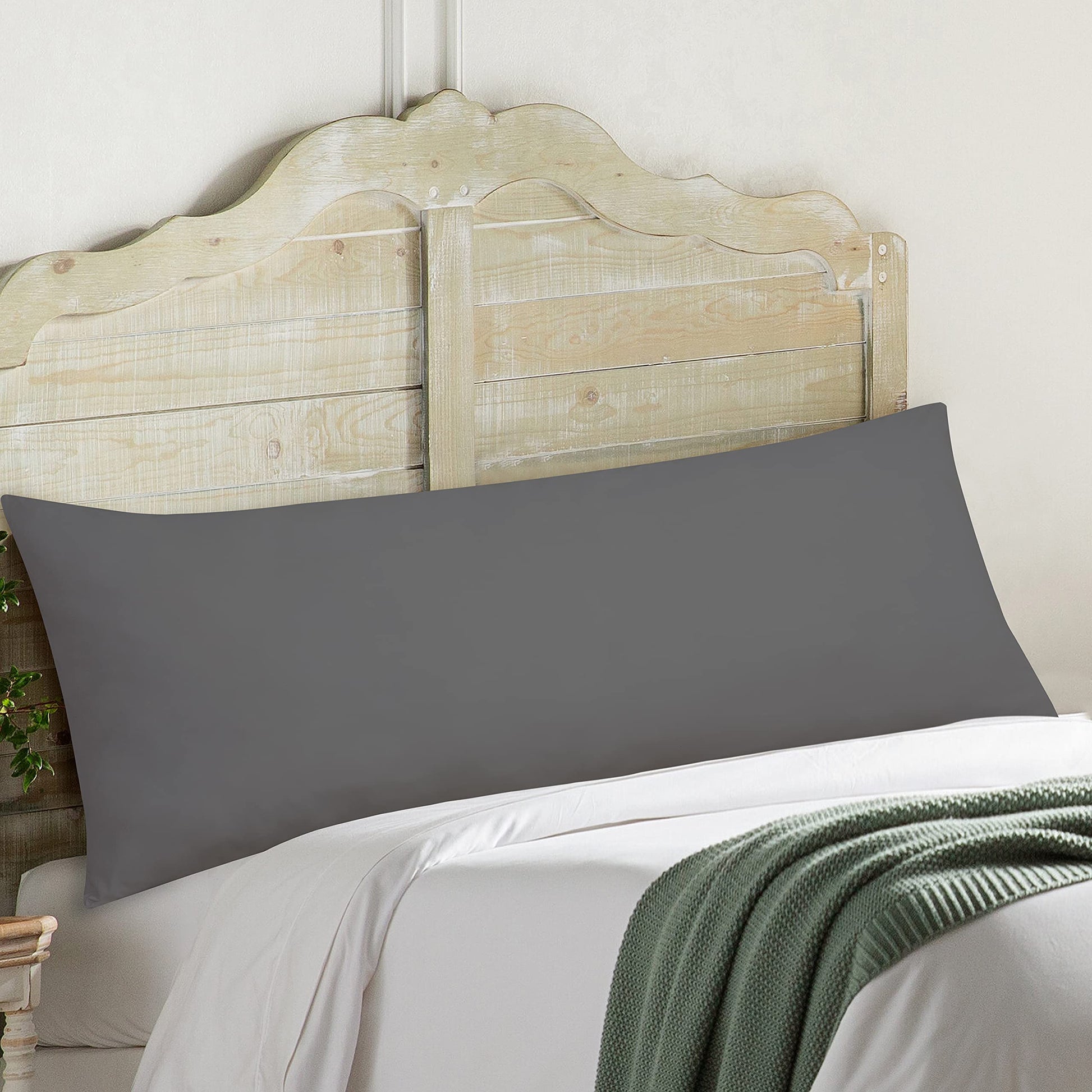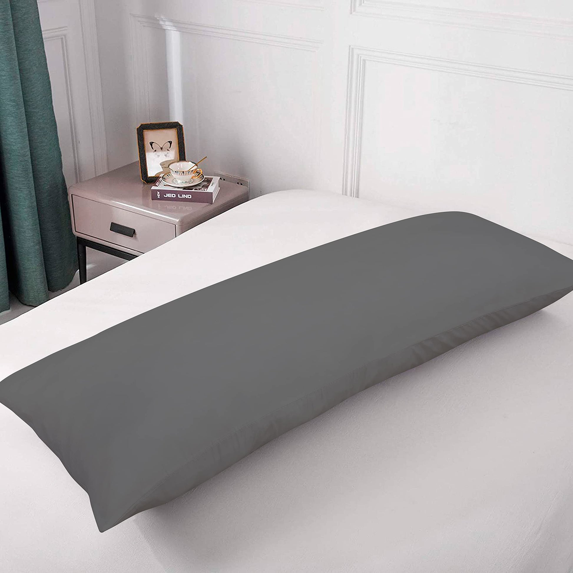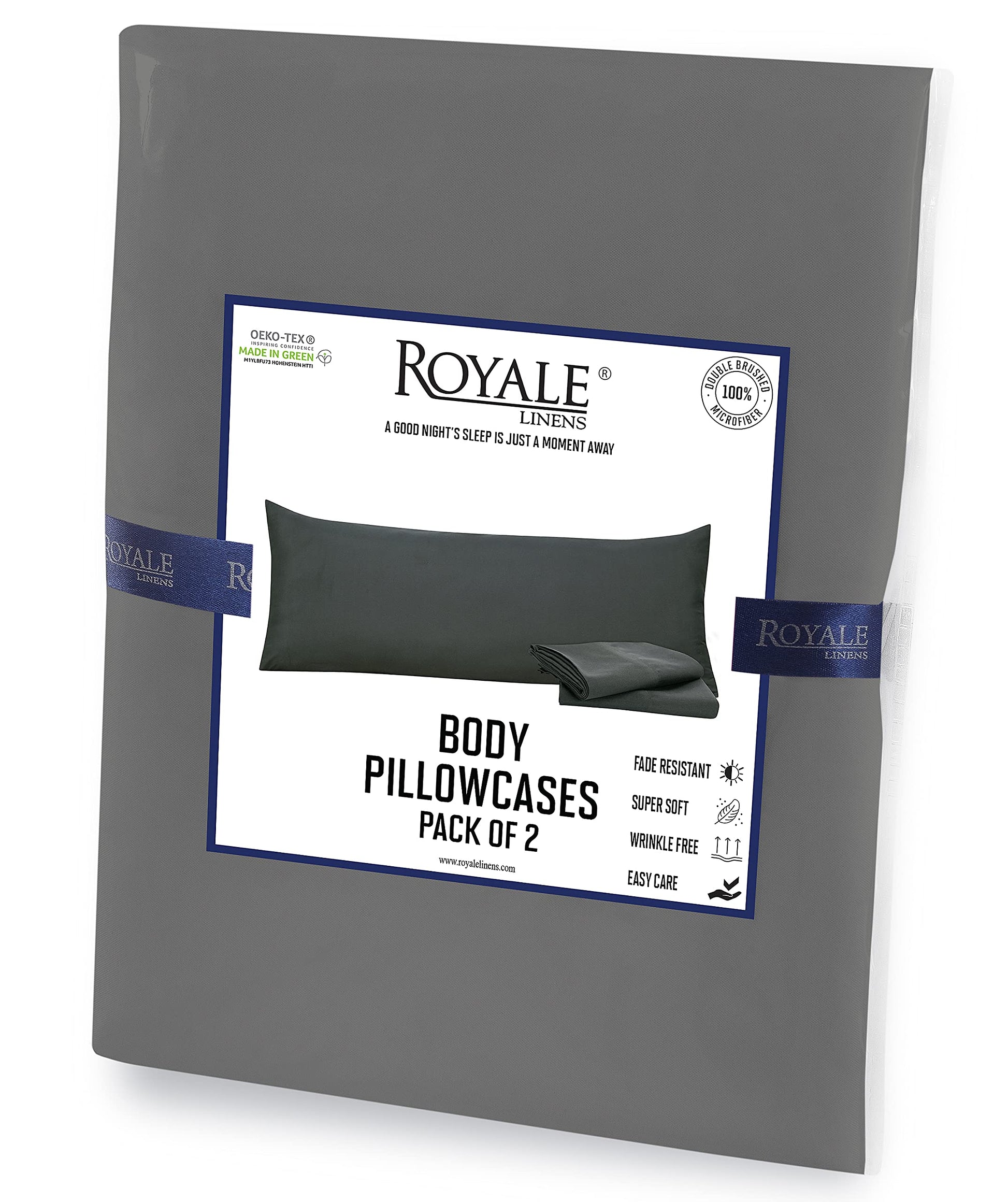 Royale Linens Body Pillow Cover - Double Brushed 1800 Microfiber - 20"x54" with Hidden Zipper Closure - Wrinkle & Fade Resistant - Super Soft Body Pillowcase 2 Pack (Grey, Pack of 2)