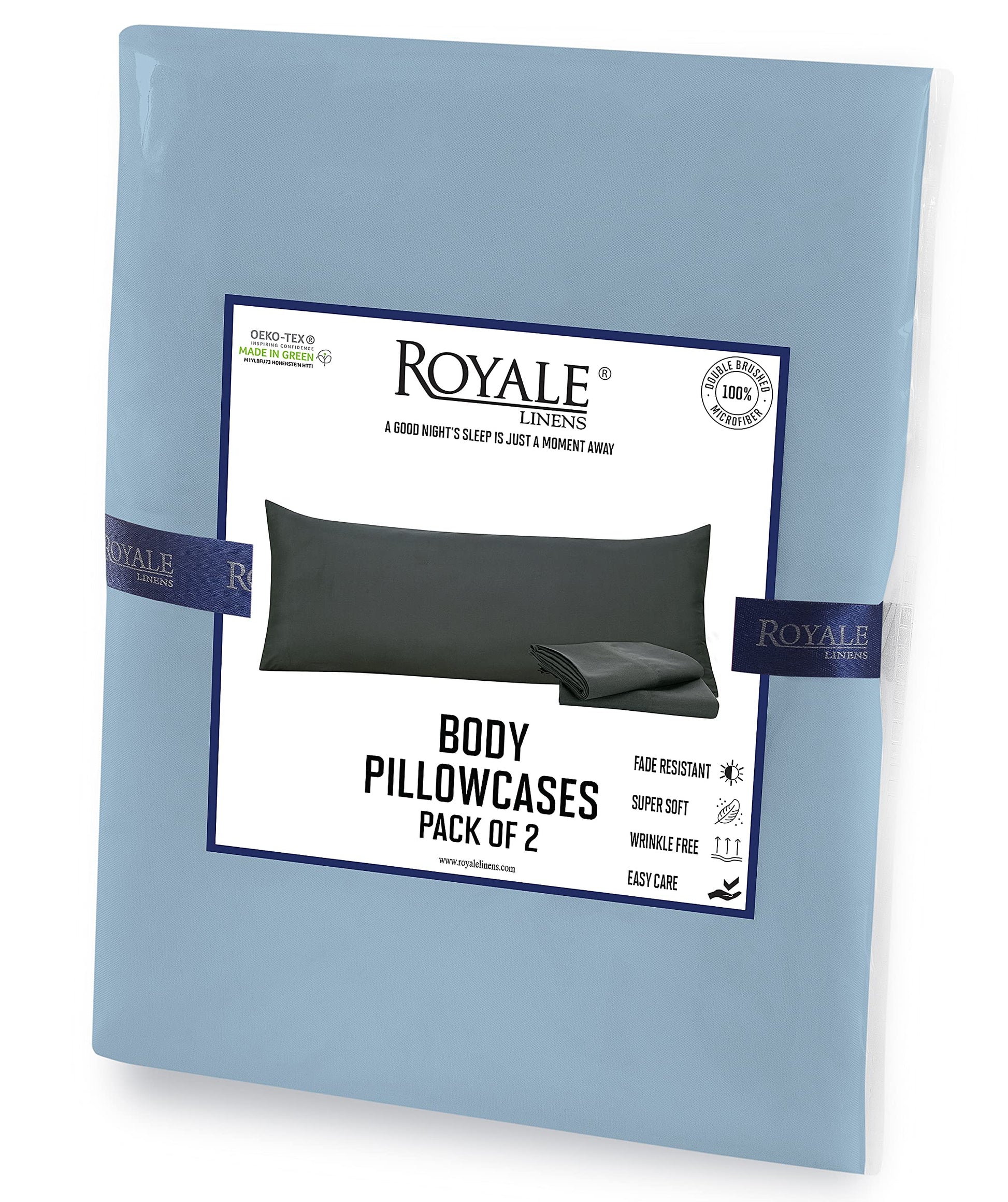 Royale Linens Body Pillow Cover - Double Brushed 1800 Microfiber - 20"x54" with Hidden Zipper Closure - Wrinkle & Fade Resistant - Super Soft Body Pillowcase (Lake Blue, Pack of 2)