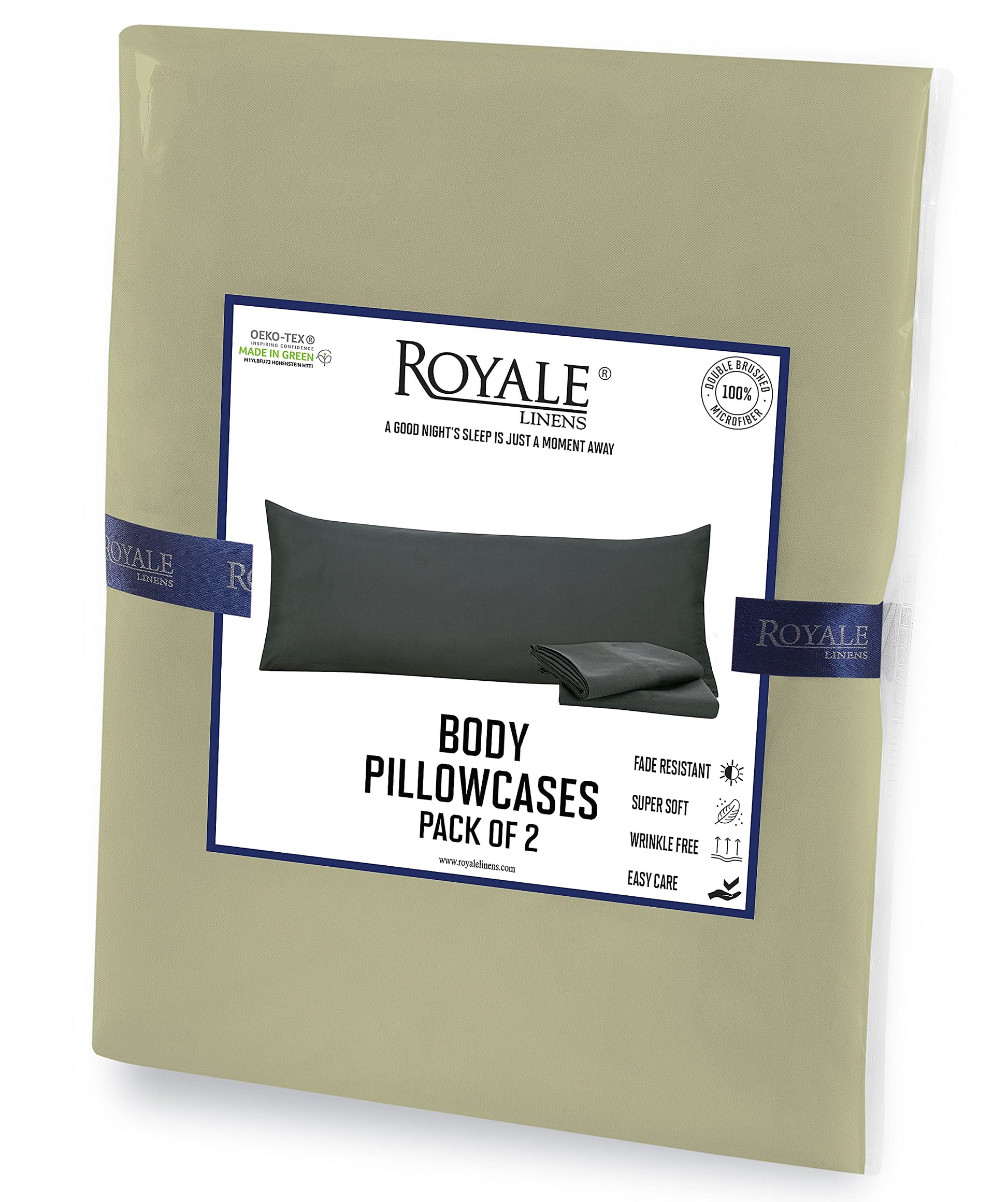 Royale Linens Body Pillow Cover - Double Brushed 1800 Microfiber - 20"x54" with Hidden Zipper Closure - Wrinkle & Fade Resistant - Super Soft Body Pillowcase 2 Pack (Sage, Pack of 2)