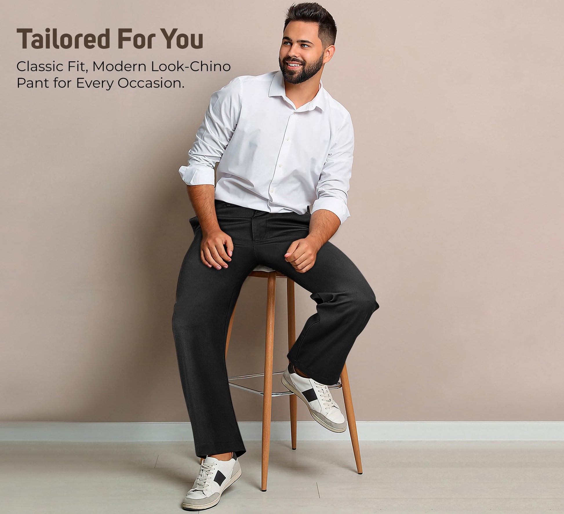 Royale Linens Men's Classic-Fit Wrinkle Free Flat Front Chino Pant Available in Big & Tall - Premium Casual Pants - Regular Straight Pants