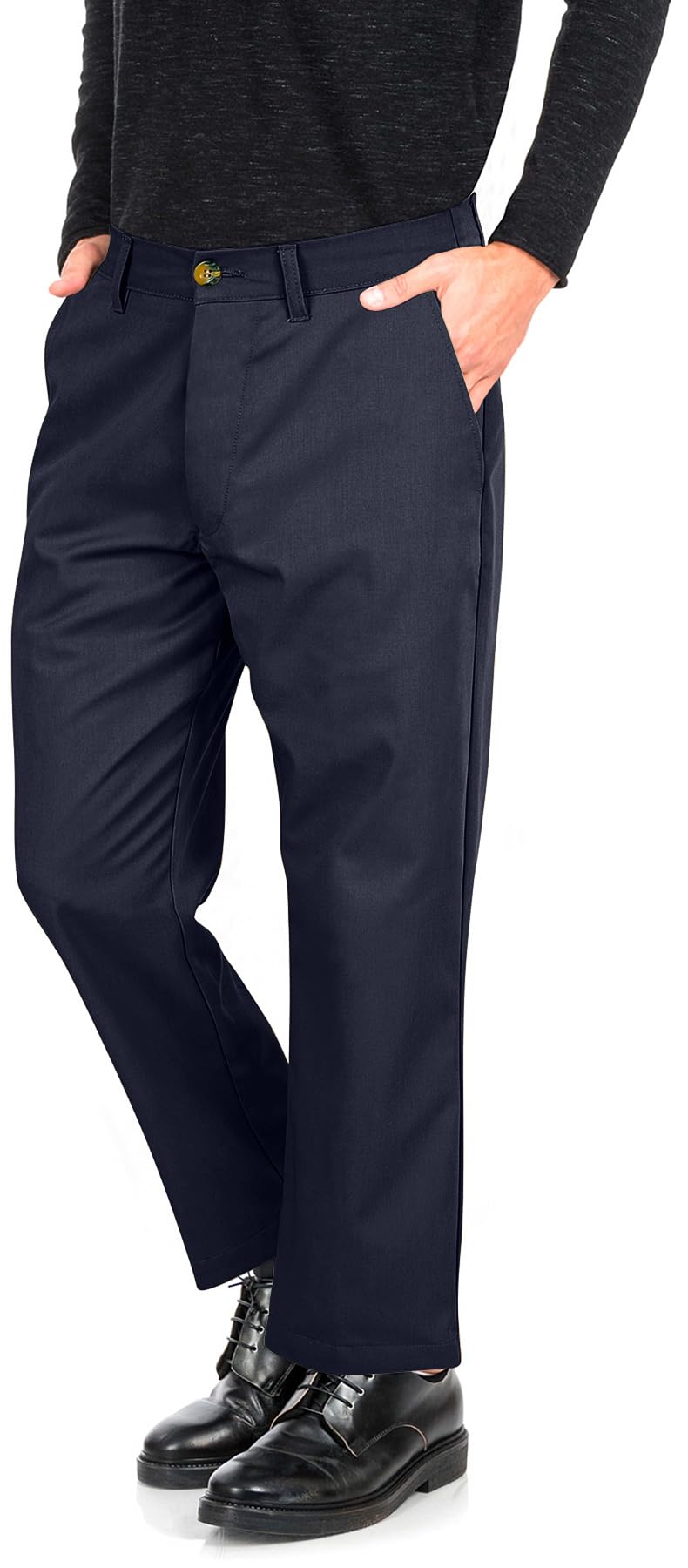 CLASSIC FIT: Flat-front chino pant is sure to be comfortable and functional for everyday wear. From the outdoors to work. Roomy through hip & thigh with straight leg. Sits at the waist