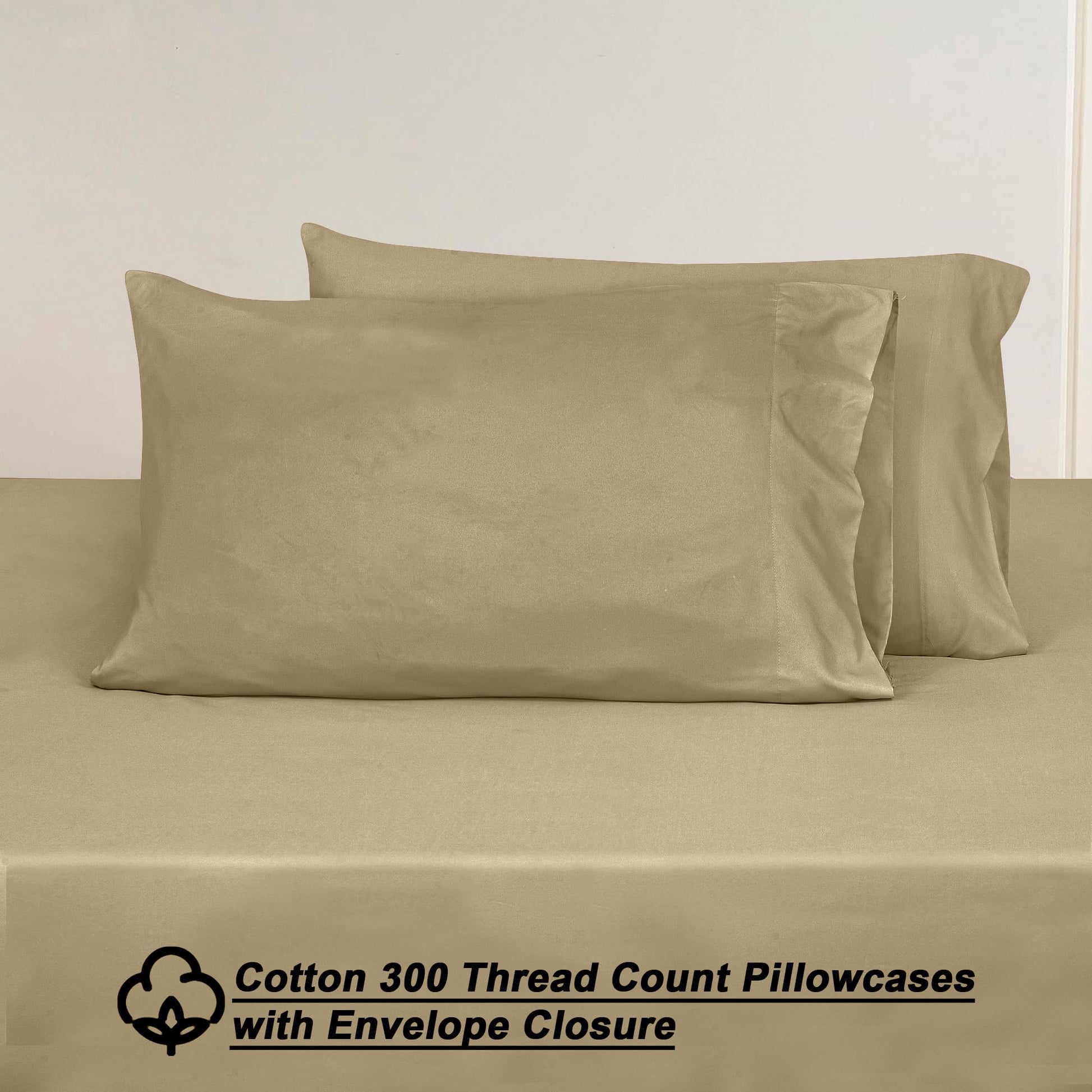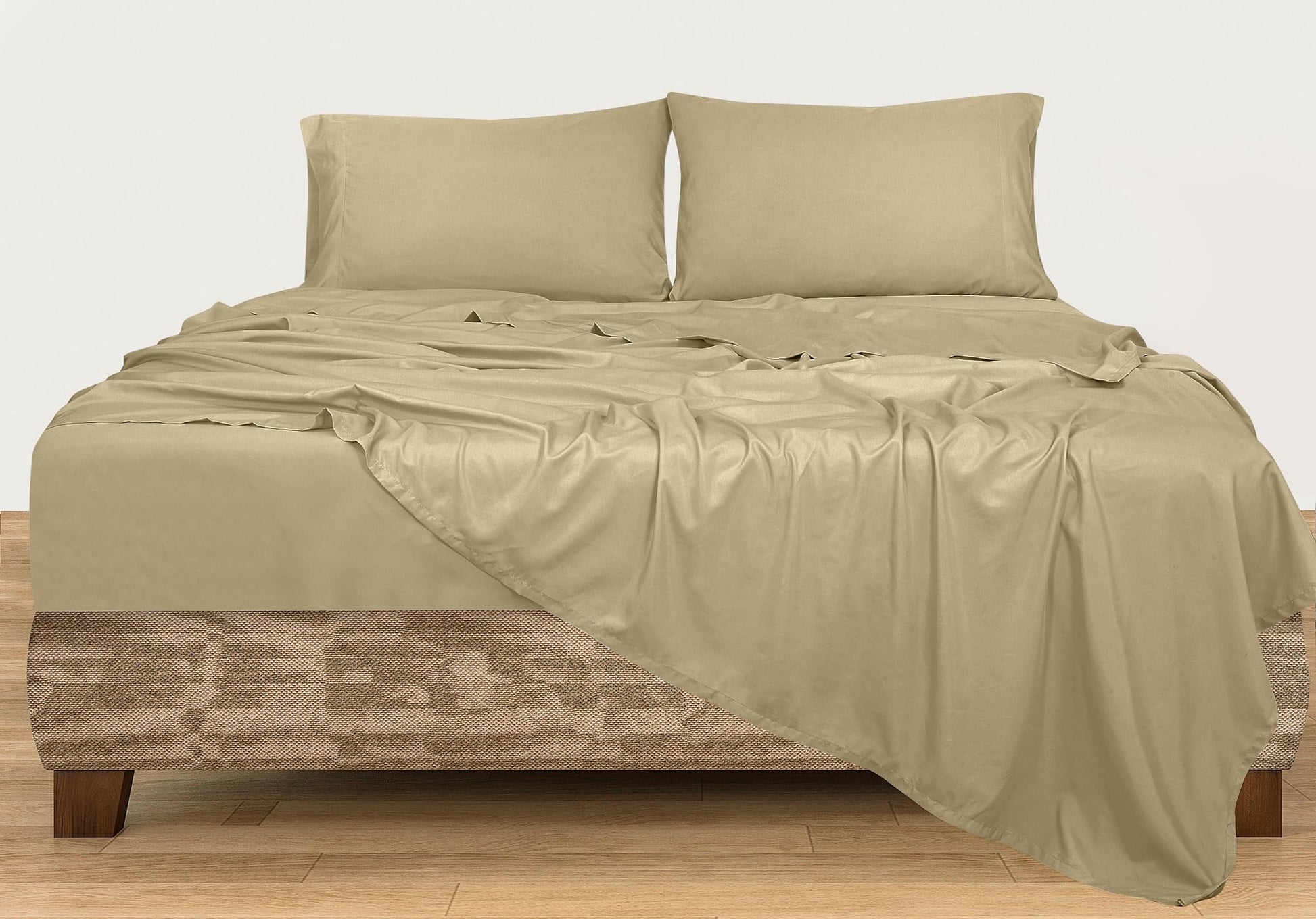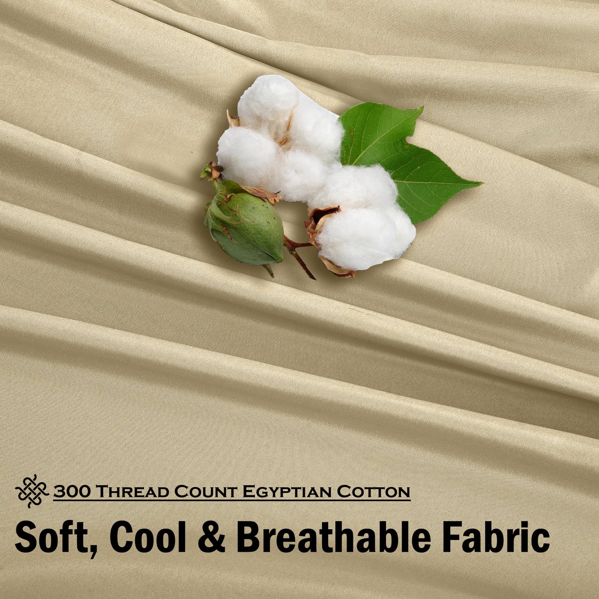 ROYALE LINENS 300 Thread Count 100% Long Staple Combed Cotton Sheet Set - 4 Piece Bed Sheet 1 Fitted Sheet, 1 Flat Sheet, 2 Pillow case - Breathable, Cool & Crisp Percale Sheet Set (Beige)