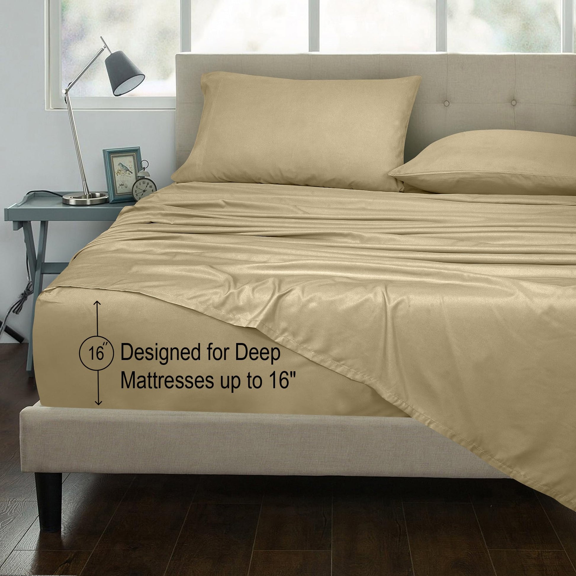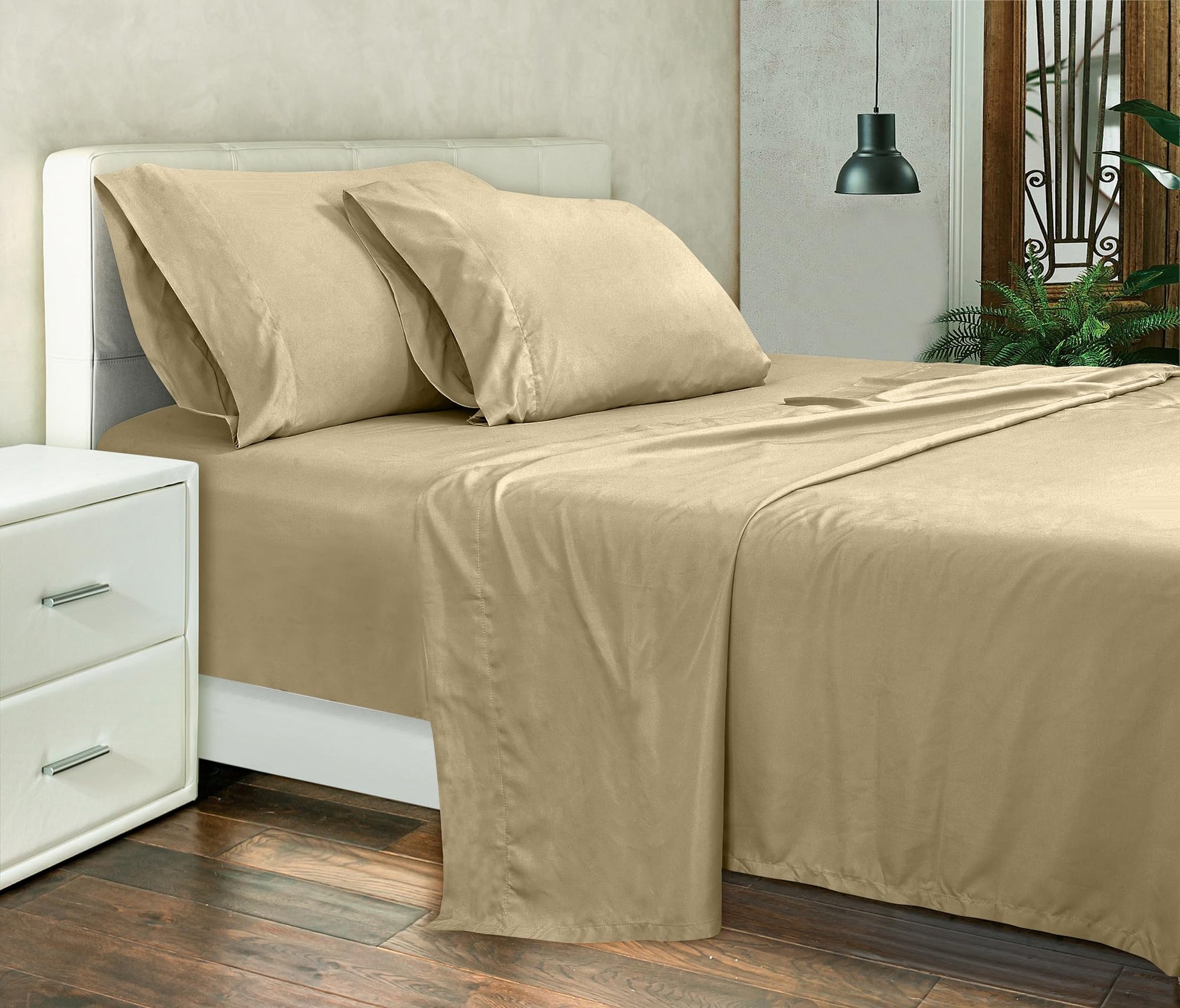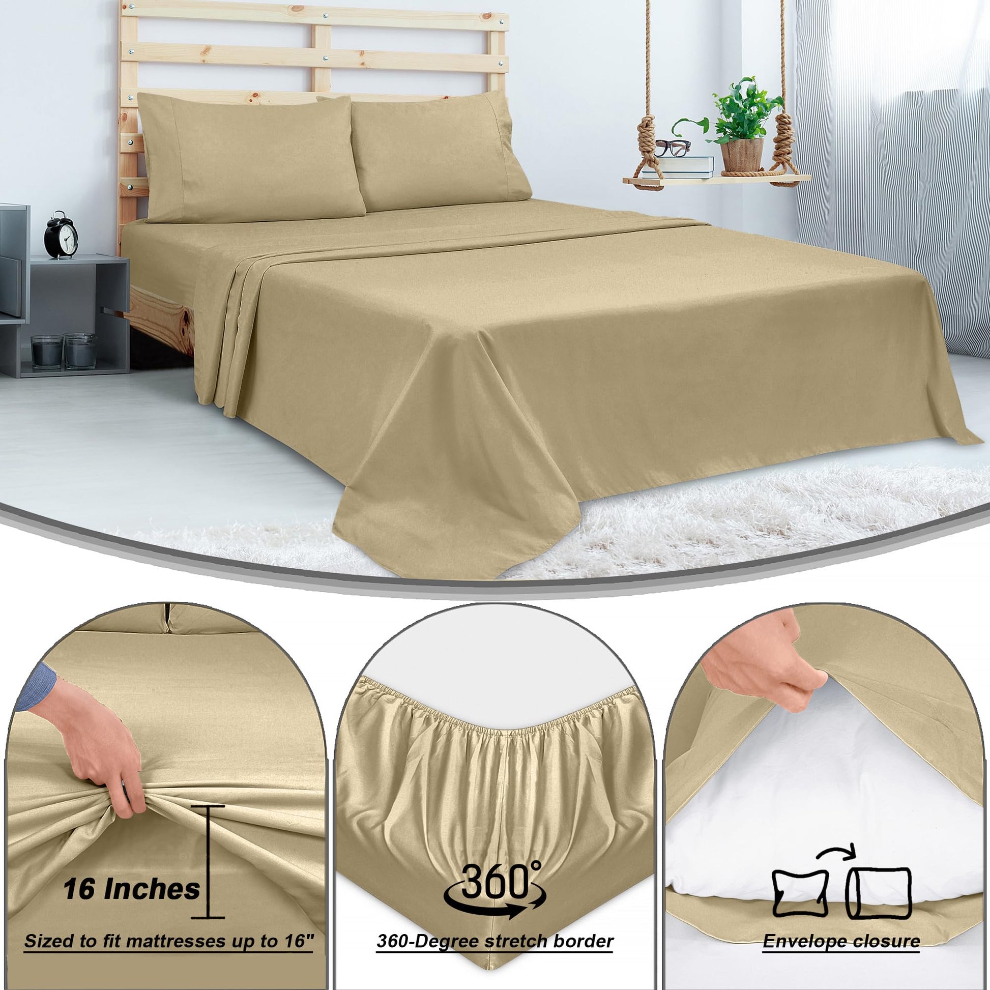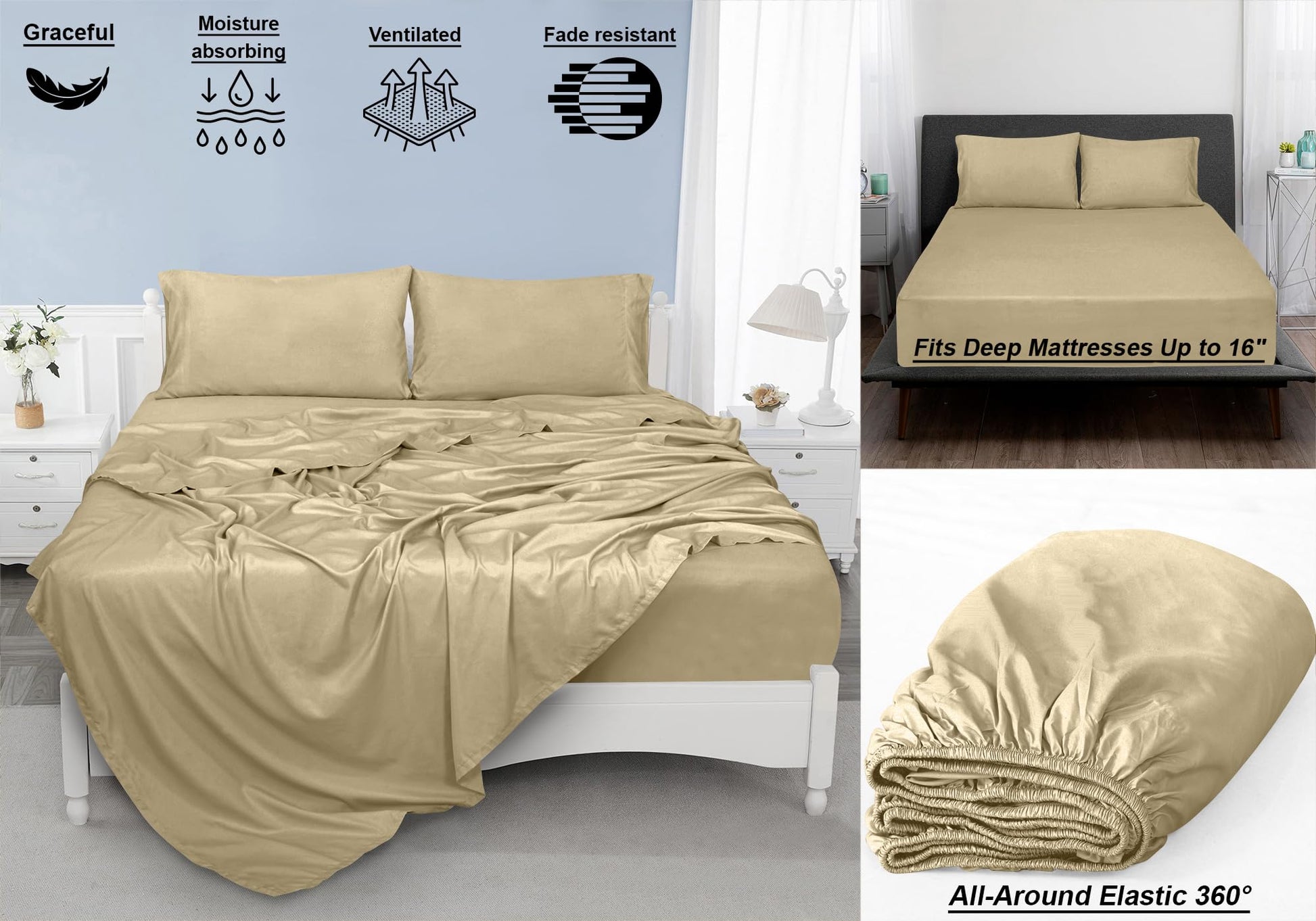 ROYALE LINENS 300 Thread Count 100% Long Staple Combed Cotton Sheet Set - 4 Piece Bed Sheet 1 Fitted Sheet, 1 Flat Sheet, 2 Pillow case - Breathable, Cool & Crisp Percale Sheet Set (Beige)