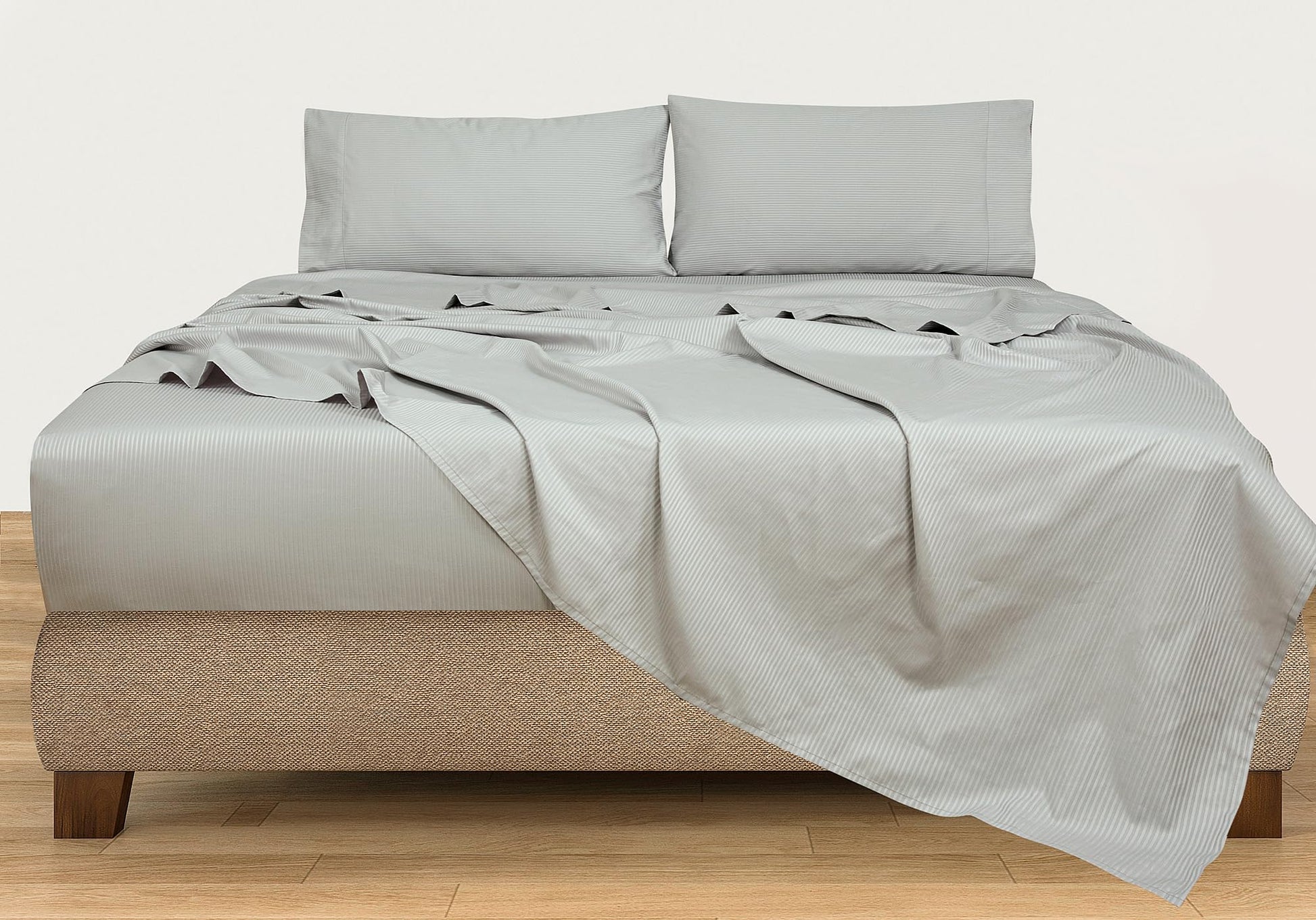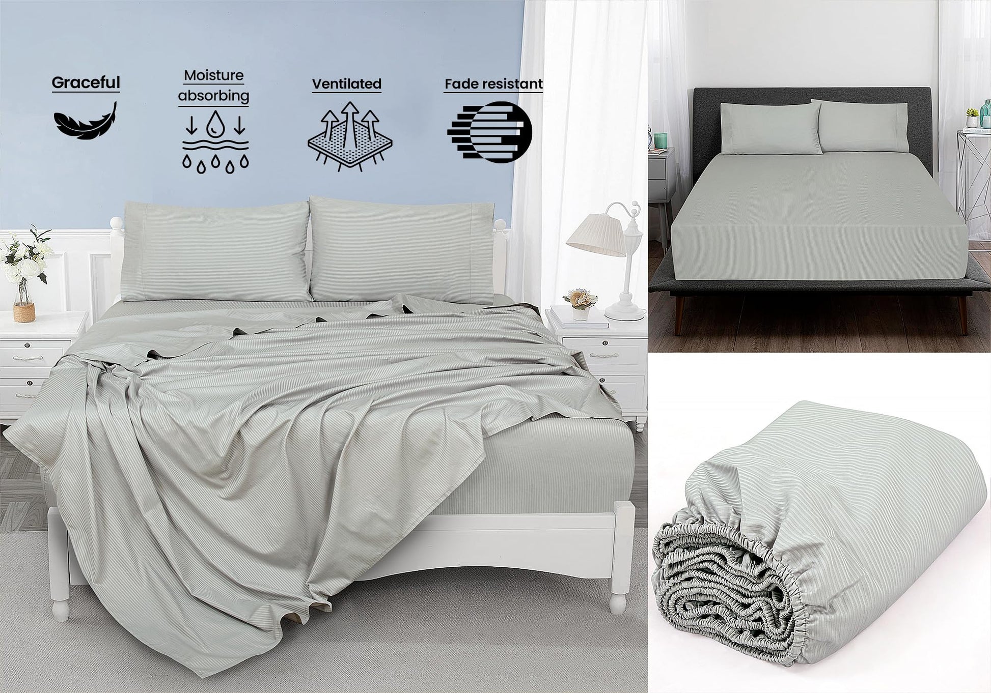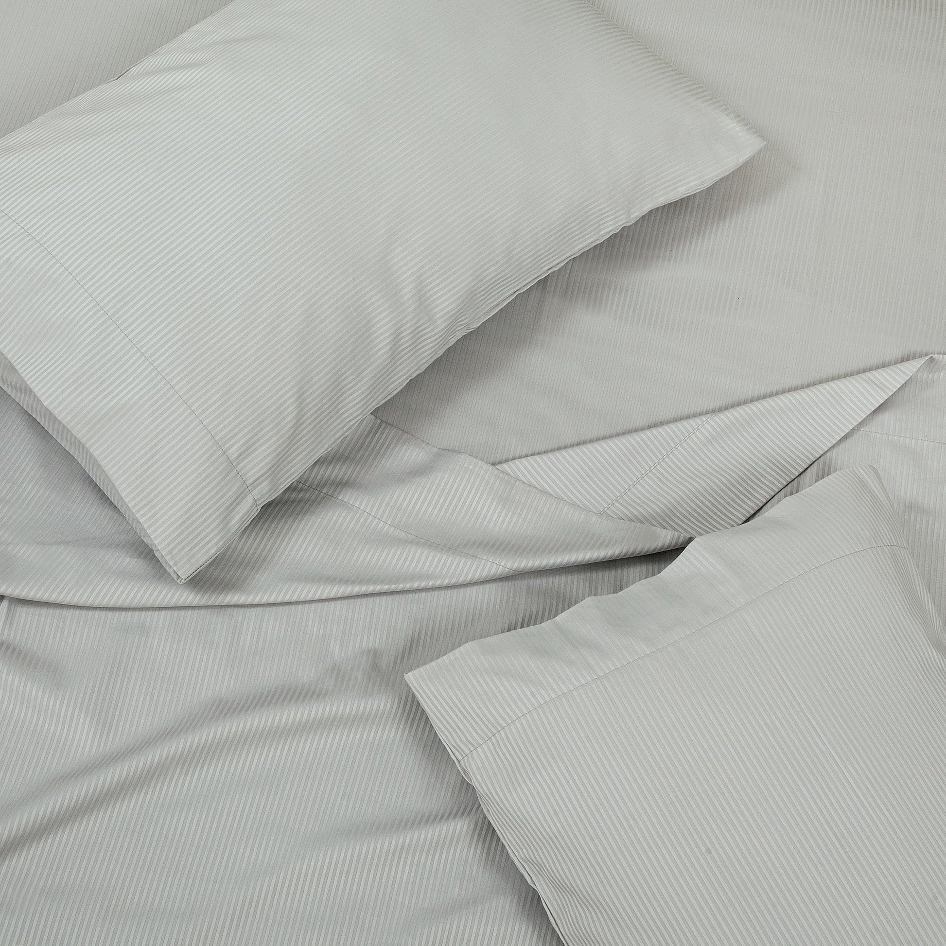 ROYALE LINENS 300 Thread Count 100% Long Staple Combed Cotton Narrow Stripe Sheet Set - 4 Piece Bed - 1 Fitted Sheet, 1 Flat Sheet, 2 Pillow Case - Cool & Crisp Sheet Set (Grey Stripes)