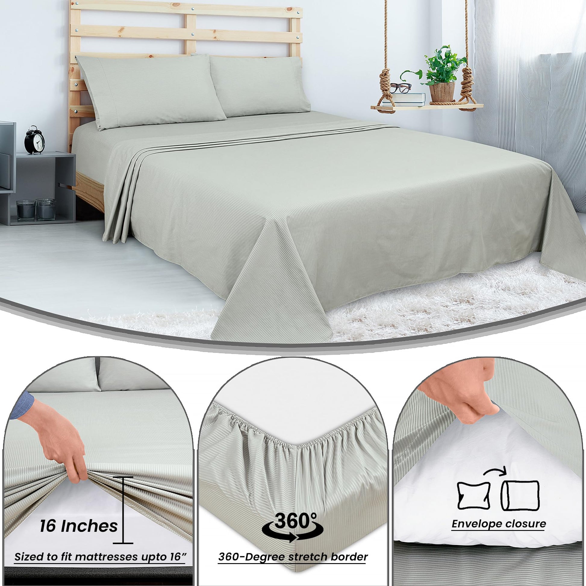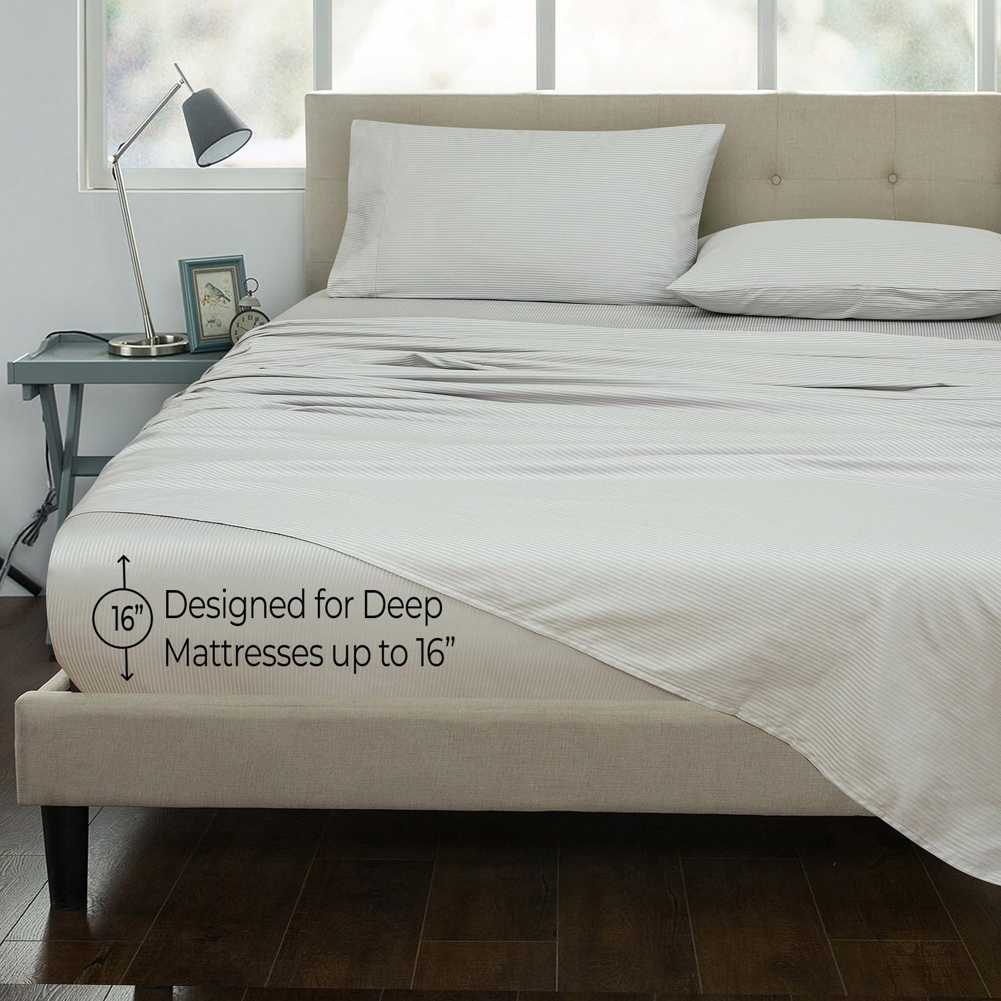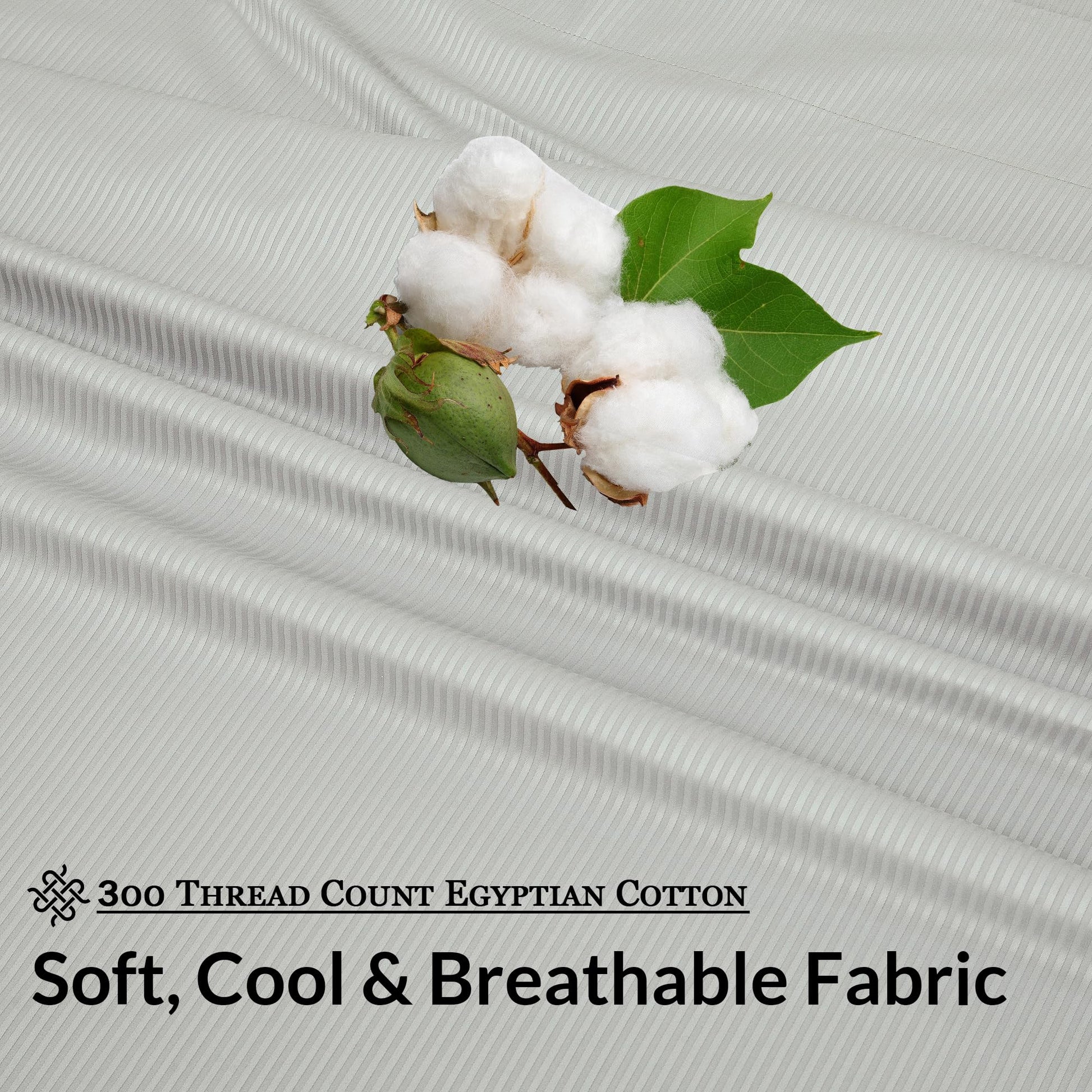 ROYALE LINENS 300 Thread Count 100% Long Staple Combed Cotton Narrow Stripe Sheet Set - 4 Piece Bed - 1 Fitted Sheet, 1 Flat Sheet, 2 Pillow Case - Cool & Crisp Sheet Set (Grey Stripes)