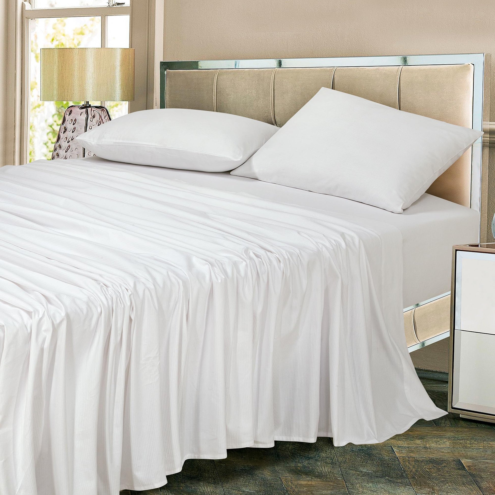 """A Good Night Sleep Is Just A Moment Away"" Royale Linens 400 Thread Count Sateen Bed Sheet Sets Are Manufactured Using Finest Quality 100% American Grown Cotton. Making Them Breathable, Comfortable And Cozy. Royale Linen Sheet Set Comes In 4 Different Sizes Twin Full Queen King Queen Sheet Set Include: 1 Flat Sheet 90X102 Inches, 1 Fitted Sheet 60x80 Inches With 14 Inch Drop 2 Pillow Case 20X30 Inches With 4 Inch Hem And Envelop Closure. Royale Linens Queen Size Sateen Bed Sheets Are Breathable, Cool And Super Silky Soft. Fabric Is Processed To Make It Shrink And Fade Resistant. Perfect For Bedroom, Guest Room, Kids Room, Hotels. Great Gift Idea For Men And Women On Valentine's Day - Mother's Day- Father's Day And Christmas. Our 400 Thread Count Bed Sheet Sets Are Certified Standard 100 By Oeko?Tex. According To The Guidelines, These Products Are Tested For Harmful Substances And Produced In An Environment Friendly And Socially Responsible Manner. Also Sustainable In Accordance With Oeko-tex Guidelines. Care Instruction: Machine Wash Or Hand Wash Using Cold Water Along With A Mild Detergent Is Recommended For Extending The Life Of The Set Along With Retaining Its Comfortability. Washing At High Temperatures Causes Microfiber To Expand Which Results In The Trapped Dirt And Other Tiny Particles Being Released. If You Want To Hand Wash The Set, Then Consider Using A Soft-haired Brush To Rinse Thoroughly."