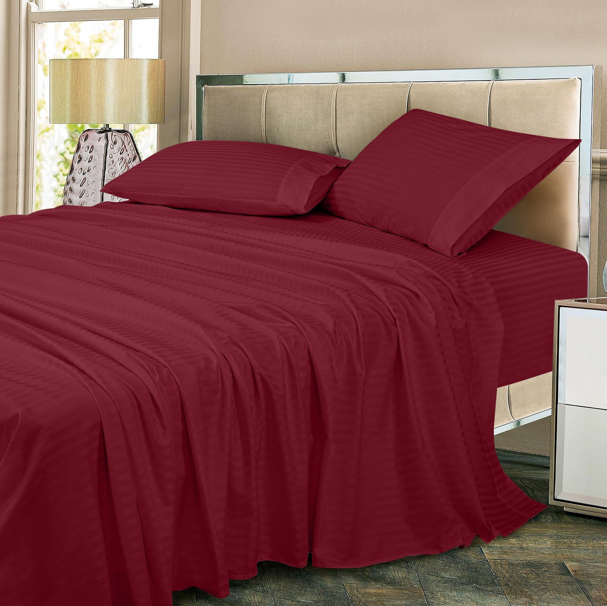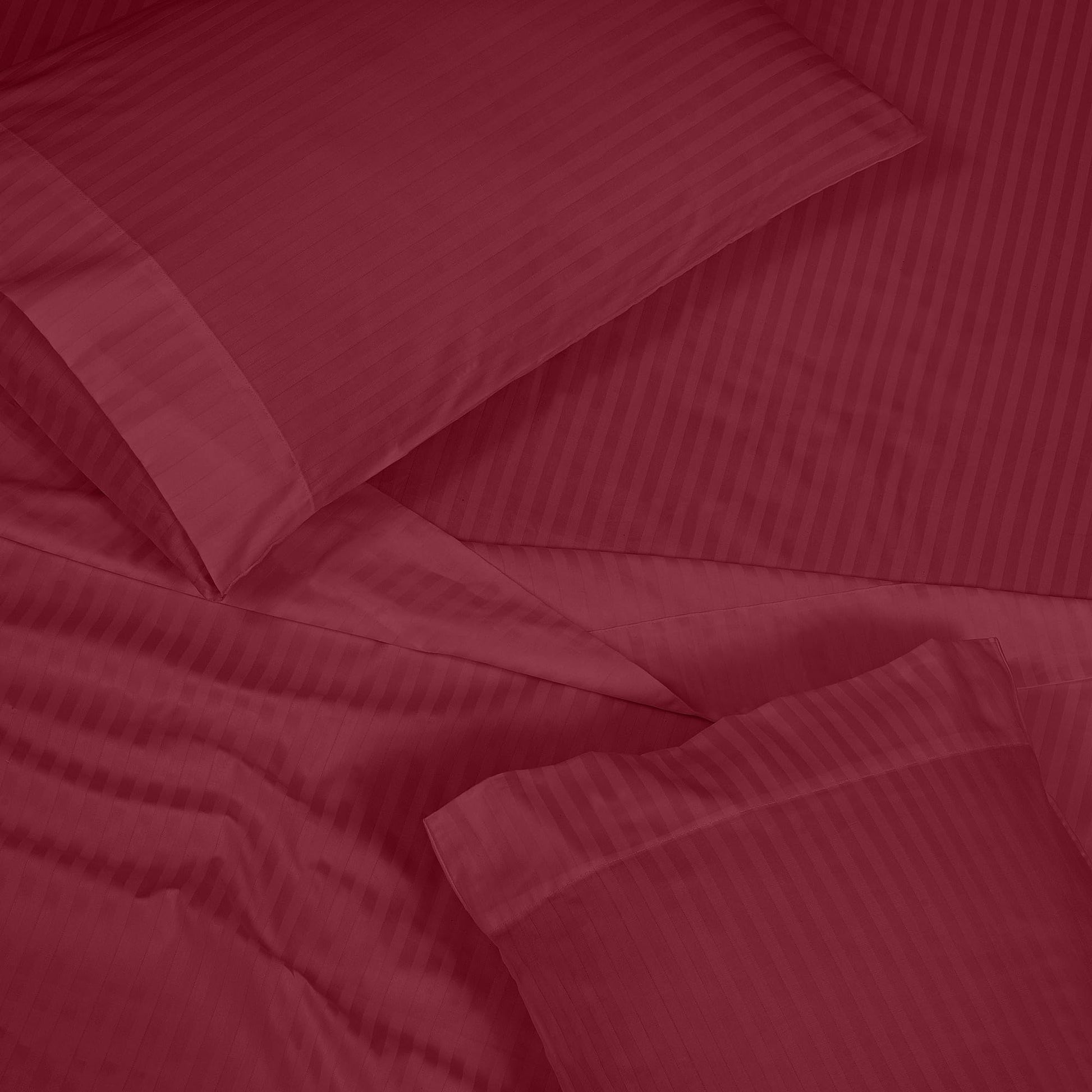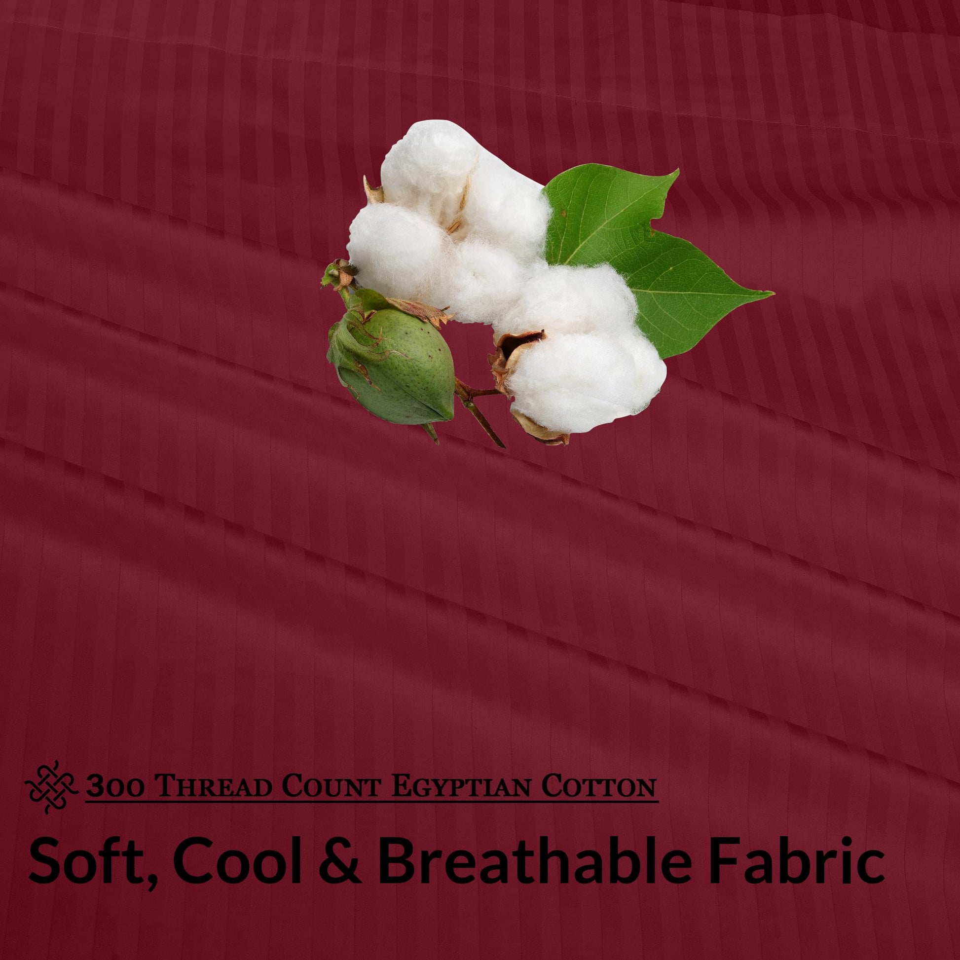 ROYALE LINENS 300 Thread Count 100% Long Staple Combed Cotton Printed Sheet Set - 4 Piece Bed Sheet - 1 Fitted Sheet, 1 Flat Sheet, 2 Pillow case -Cool & Crisp Sheet Set (Stripe Burgundy)