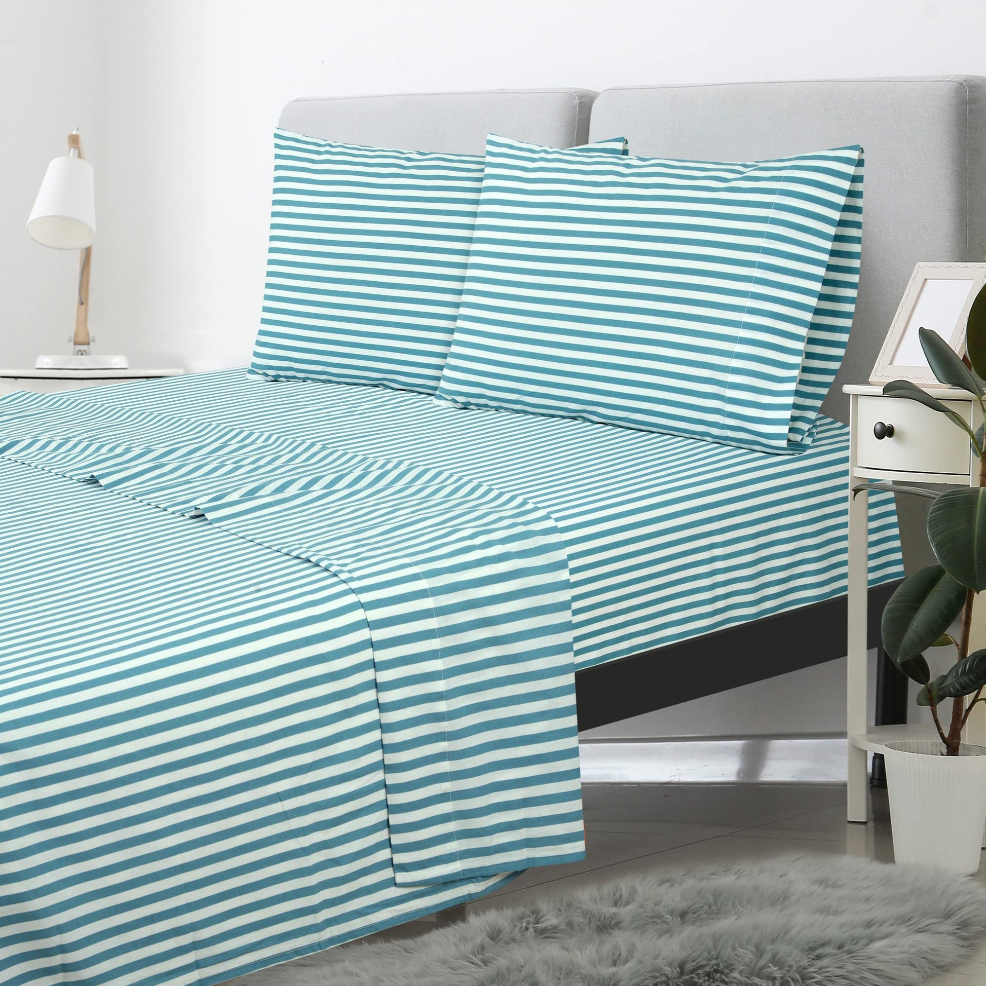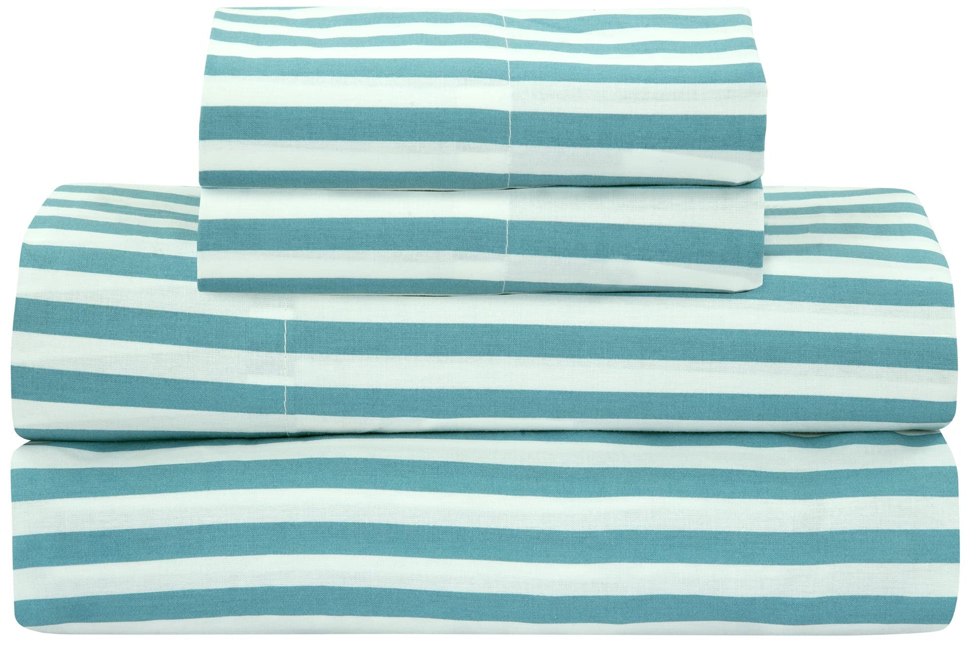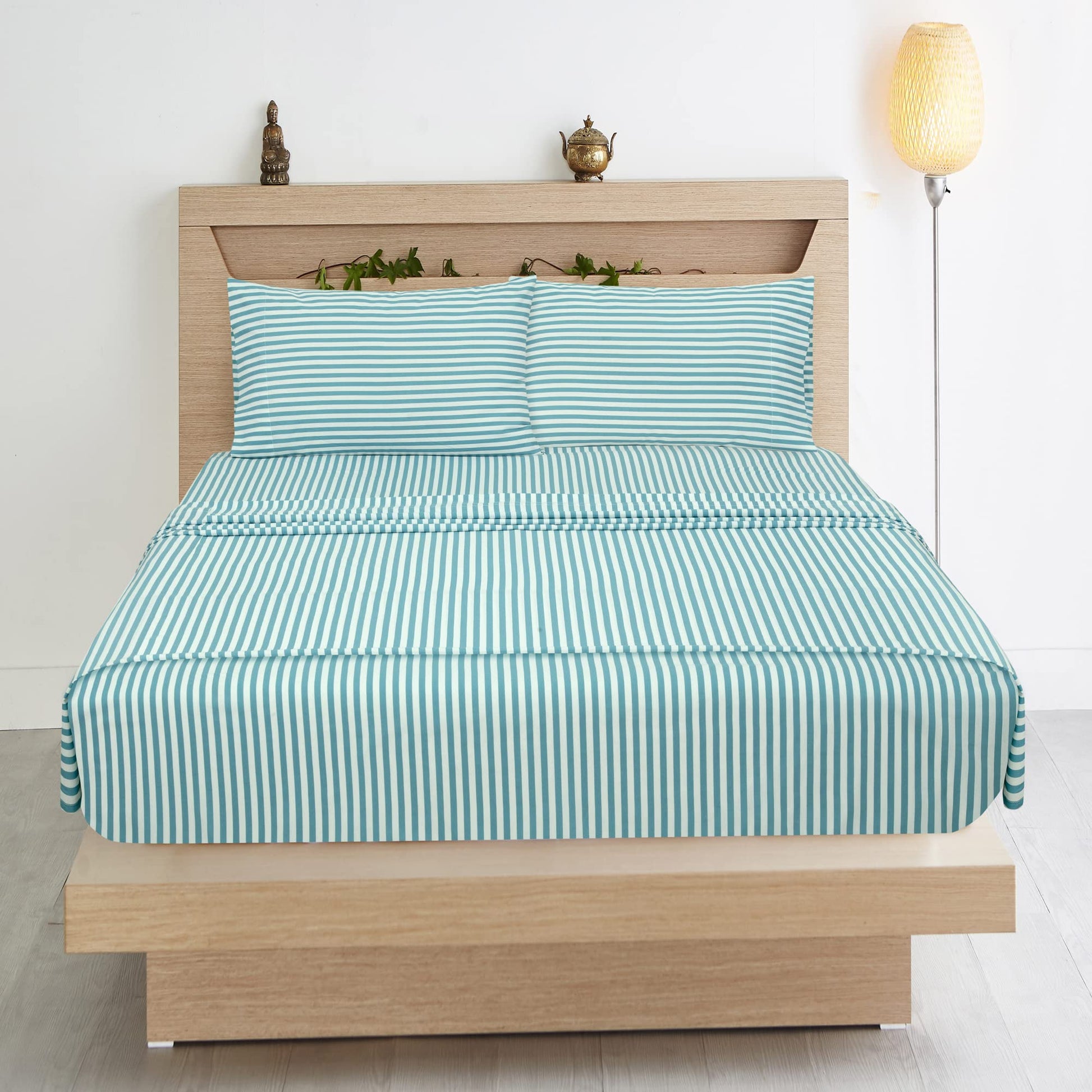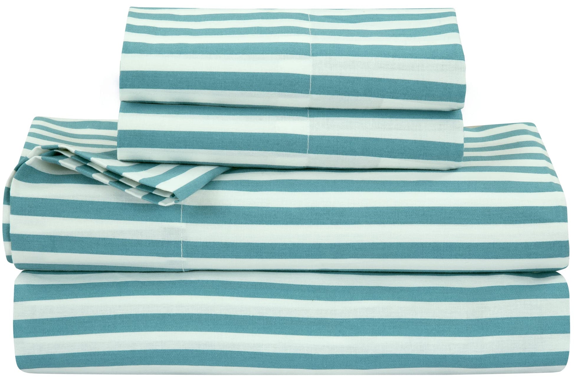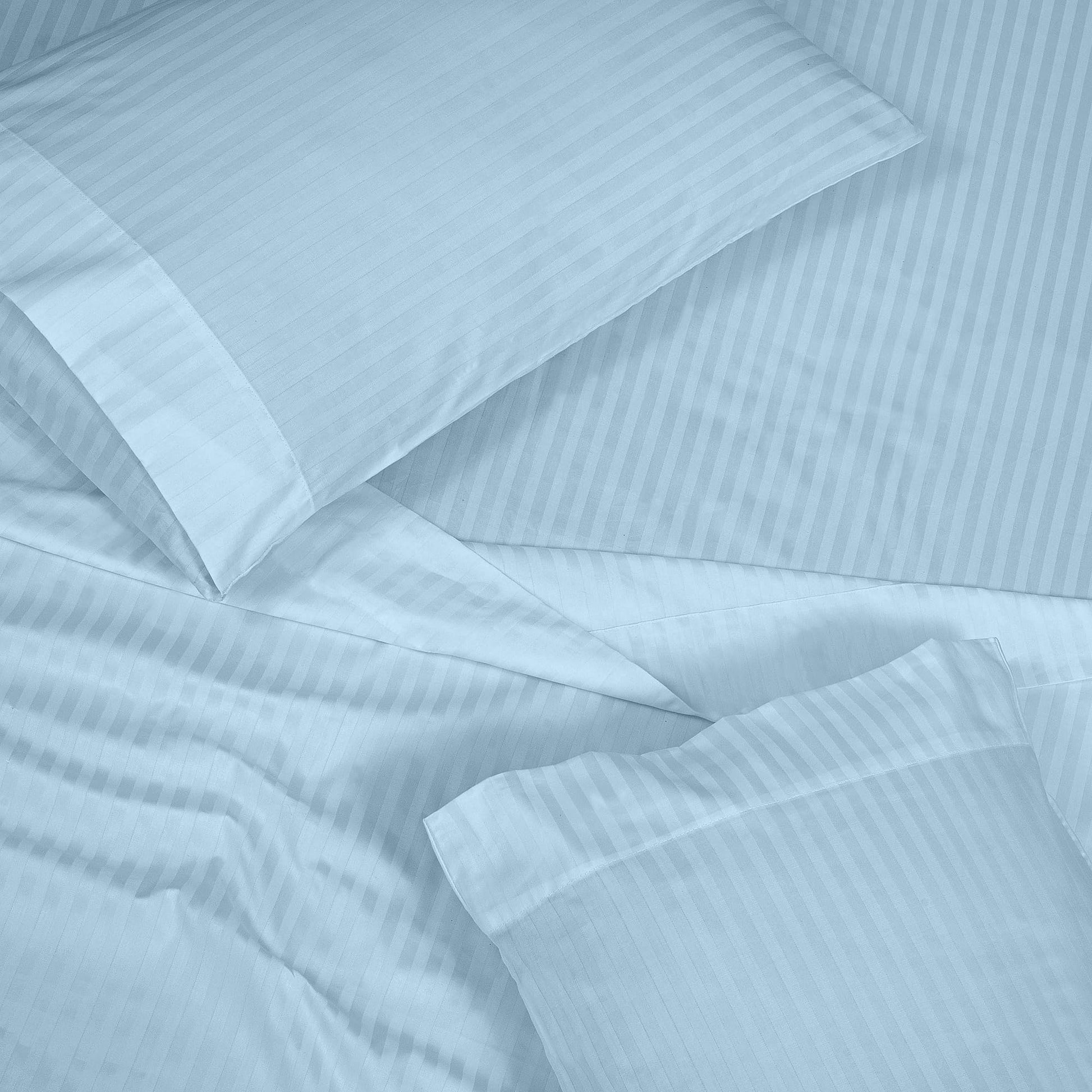 Royale Linens 300 Thread Count 100% Long Staple Combed Cotton Striped Sheet Set - 4 Piece Bed Sheet - 1 Fitted Sheet, 1 Flat Sheet, 2 Pillowcase -Cool & Crisp Sheet Set (Stripe Lake Blue)