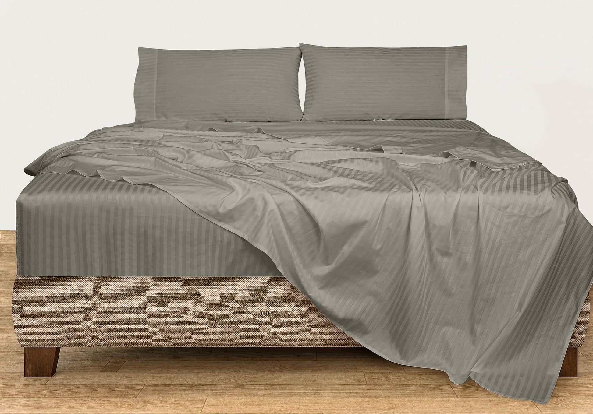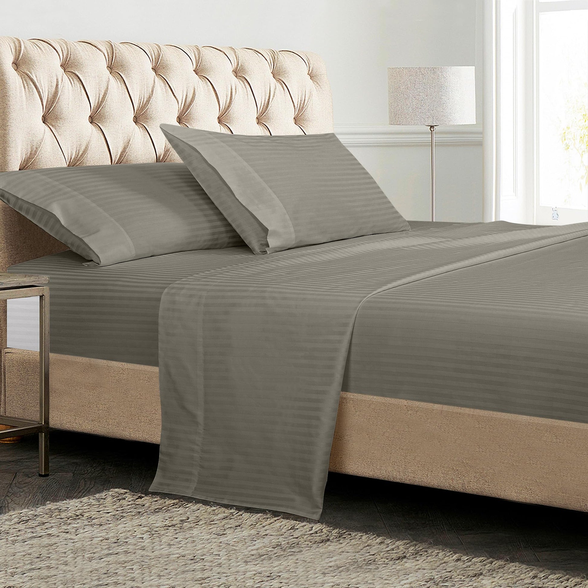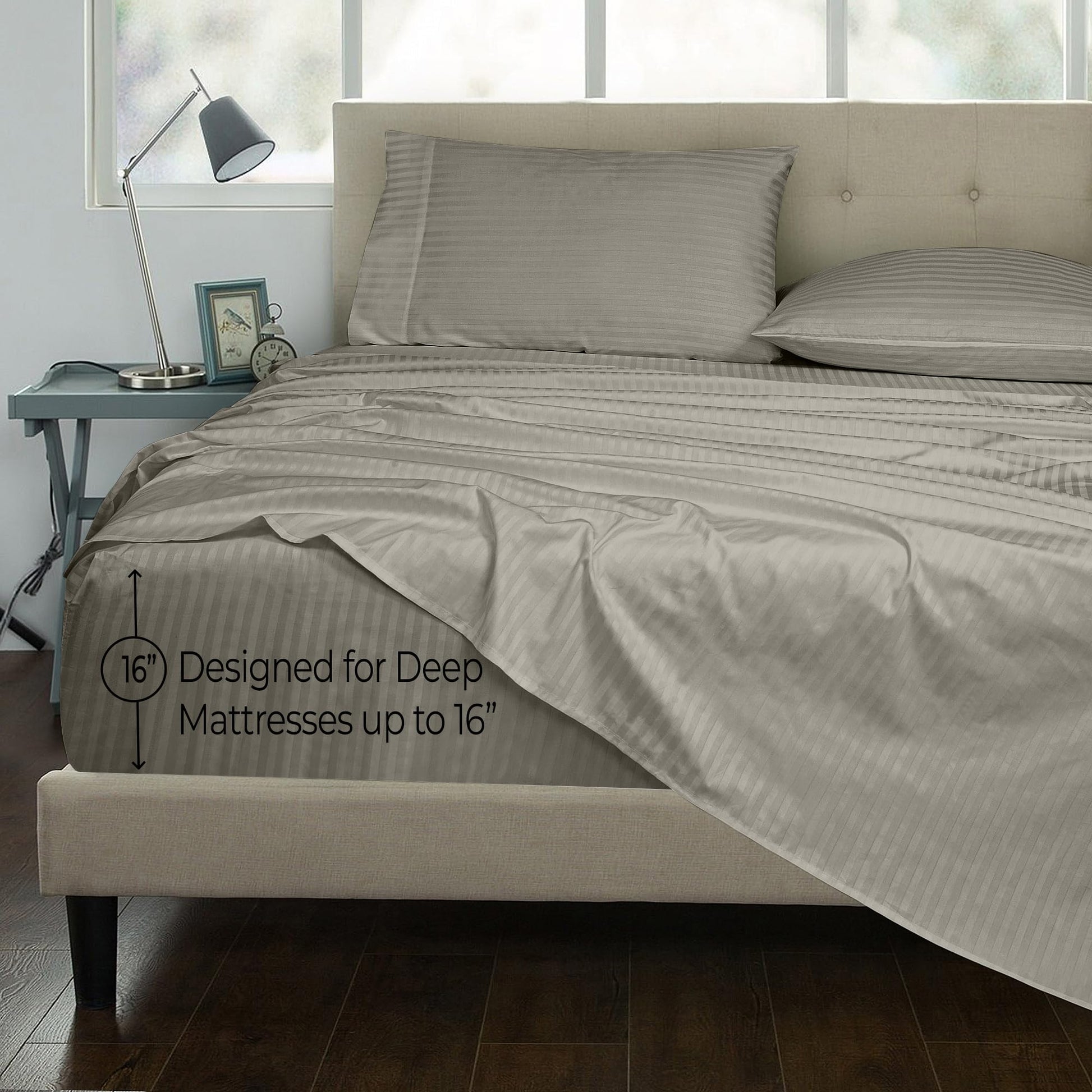 ROYALE LINENS 300 Thread Count 100% Long Staple Combed Cotton Printed Sheet Set - 4 Piece Bed Sheet - 1 Fitted Sheet, 1 Flat Sheet, 2 Pillow case - Cool & Crisp Sheet Set ( Stripe Silver)