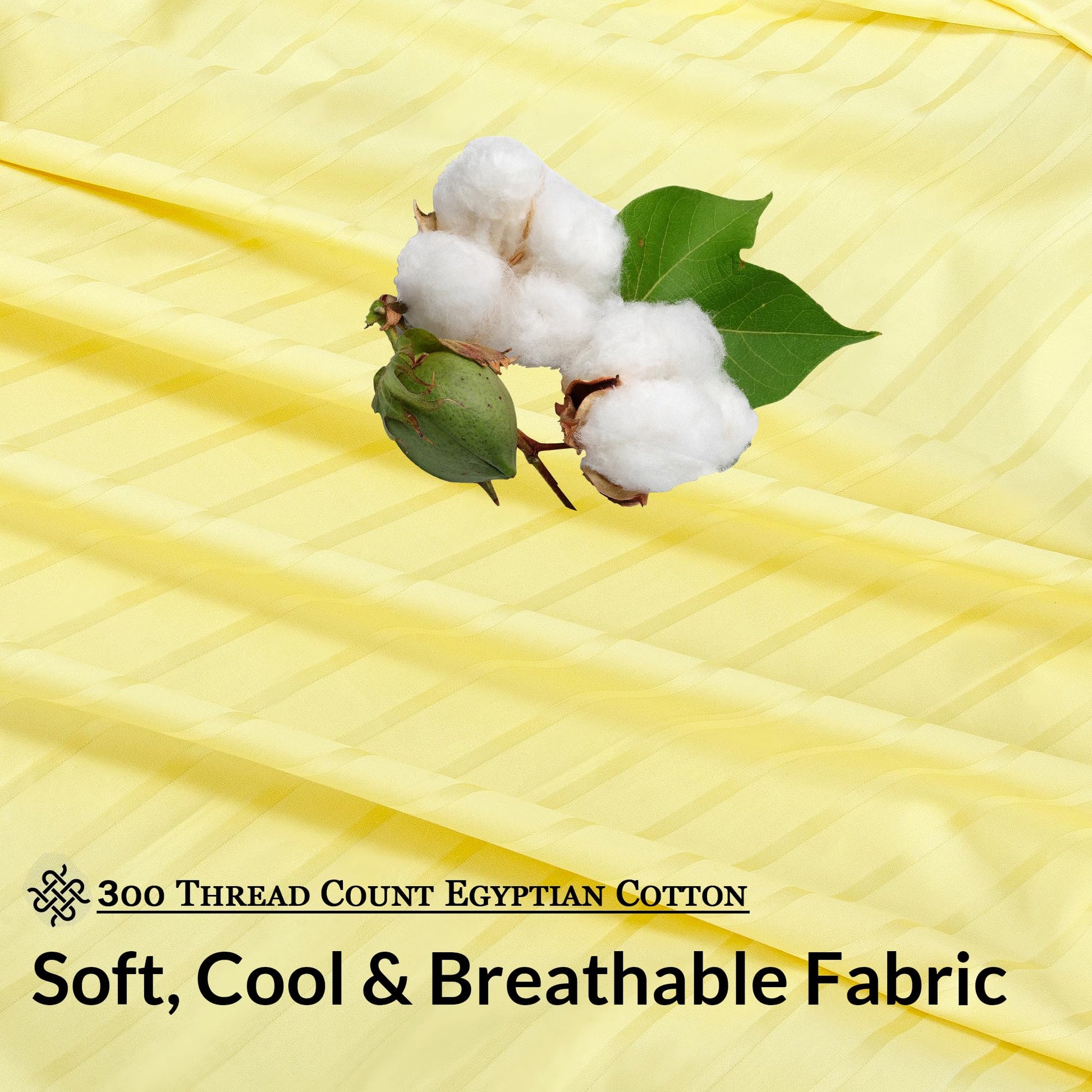 ROYALE LINENS 300 Thread Count 100% Long Staple Combed Cotton Stripe Sheet Set - 4 Piece Full Bed - 1 Fitted Sheet, 1 Flat Sheet, 2 Pillow Case - Cool & Crisp Sheet Set (Full, Stripe Yellow)