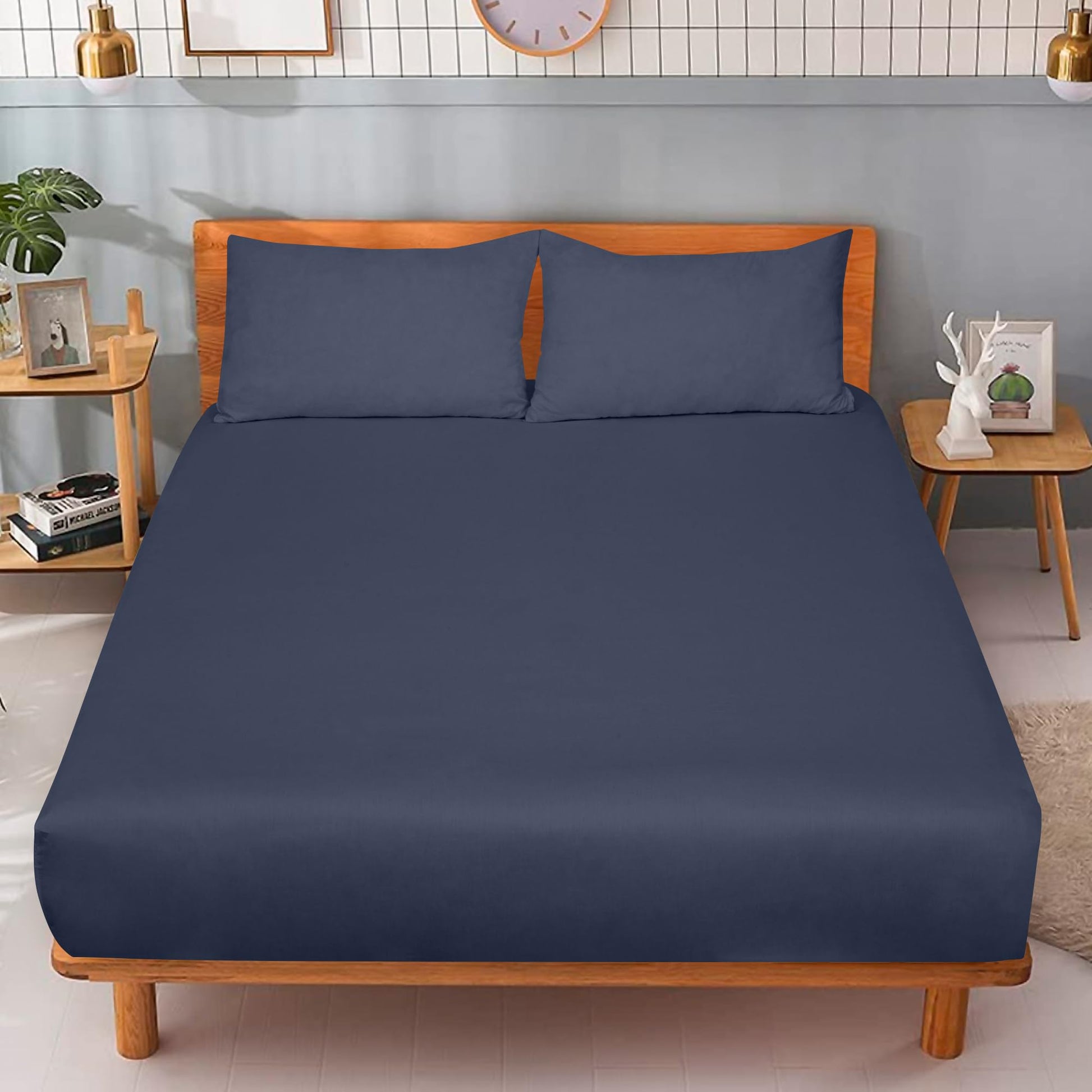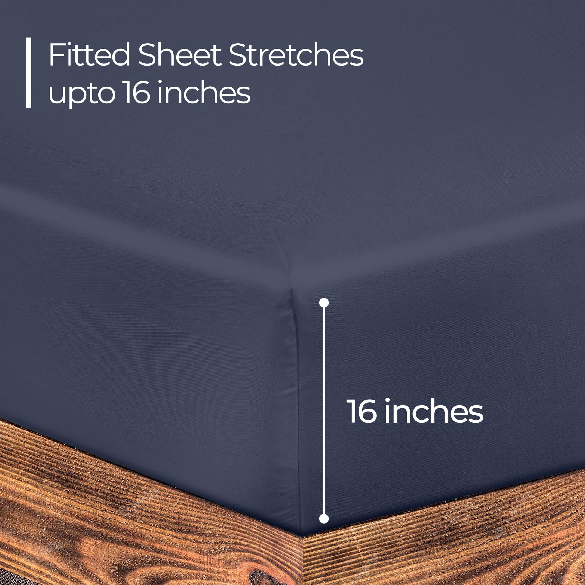 Royale Linens 300 Thread Count 100% Long Staple Combed Cotton Fitted Sheet - Super Soft Deep Pocket Bottom Sheet - Navy Fitted Sheet -Fitted Sheet Only - Elastic Sheet ( Navy)