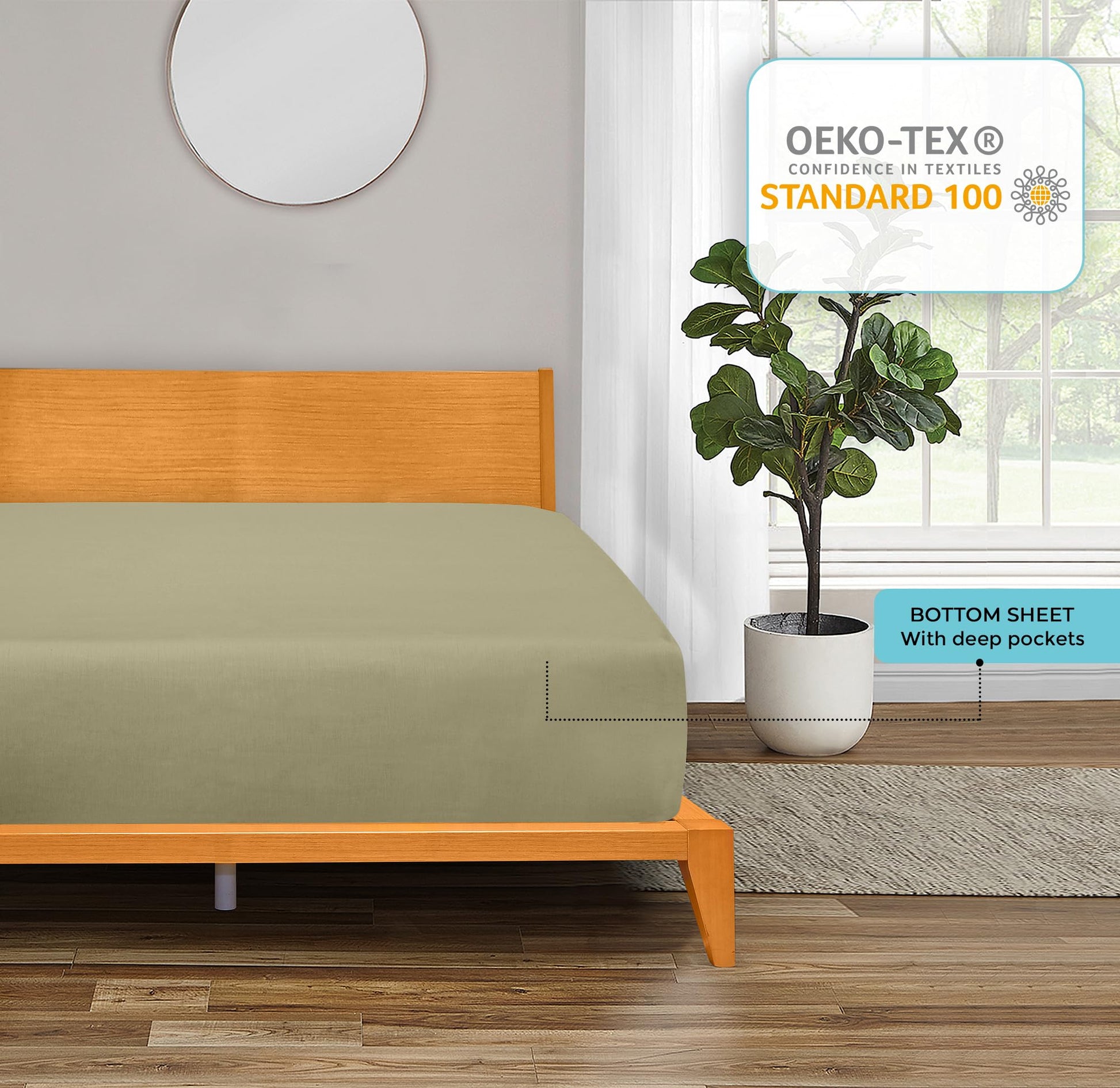 ROYALE LINENS Linen 300 Thread Count 100% Long Staple Combed Cotton Fitted Sheet,Deep Pocket Bottom Sheet,Sage Green Fitted Sheet , Fitted Sheet Only, Elastic Sheet(Sage Green)