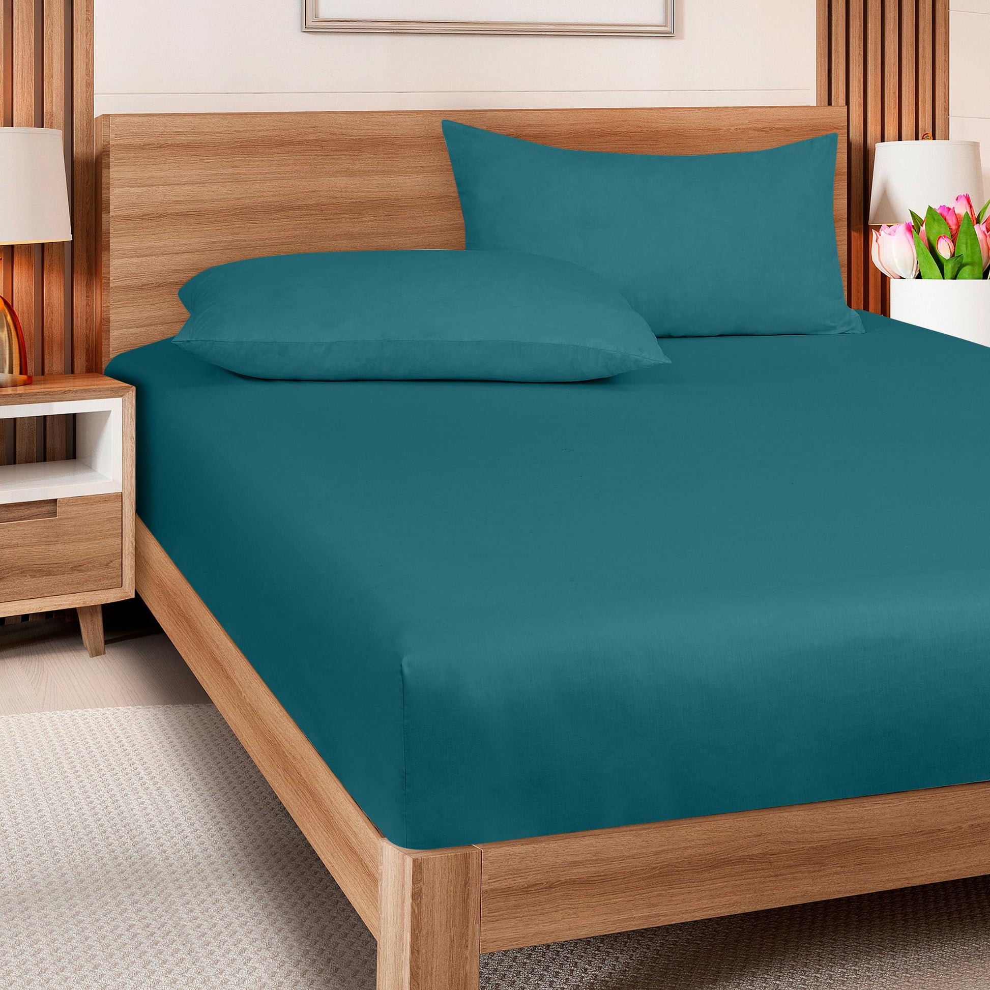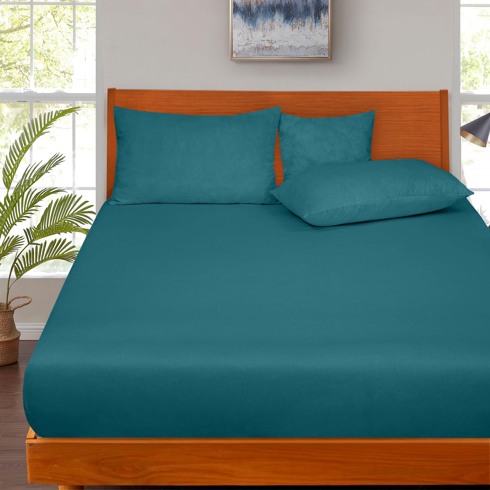 Royale Linens 300 Thread Count 100% Long Staple Combed Cotton Fitted Sheet - Soft Deep Pocket Bottom Sheet -Silver Fitted Sheet - Fitted Sheet Only - Elastic Sheet (Teal)