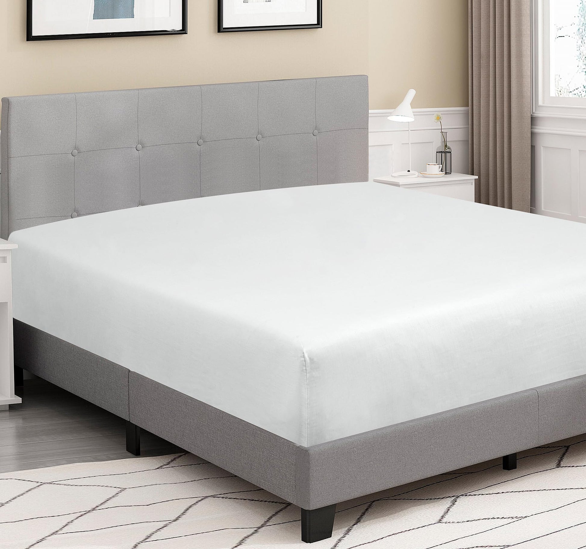 ROYALE LINENS 300 Thread Count 100% Long Staple Combed Cotton Fitted Sheet - Super Soft Deep Pocket Bottom Sheet - White Fitted Sheet -Fitted Sheet Only - Elastic Sheet (White)