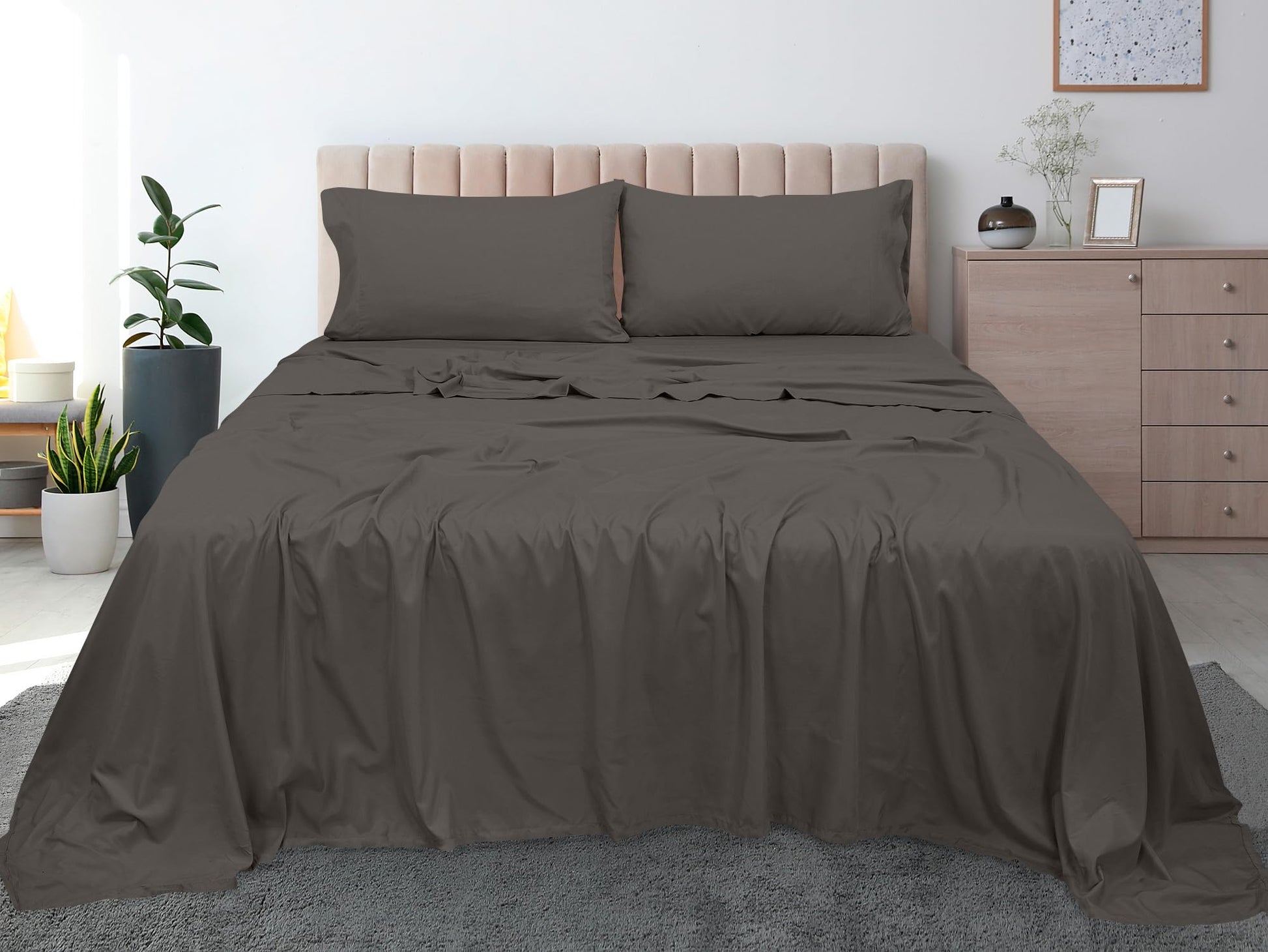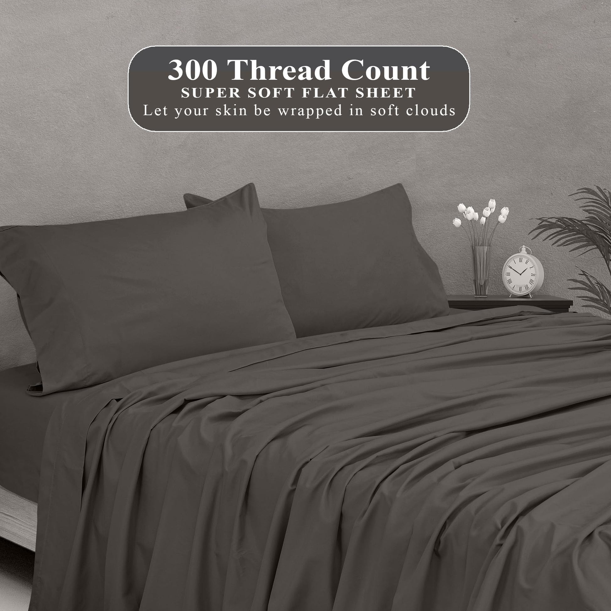 ROYALE LINENS 300 Thread Count 100% Long Staple Combed Cotton Flat Sheet - Super Soft - Top Sheet - Flat Sheet Sold Separately - Breathable, Cool & Crisp Percale Flat Sheet Only (Grey)