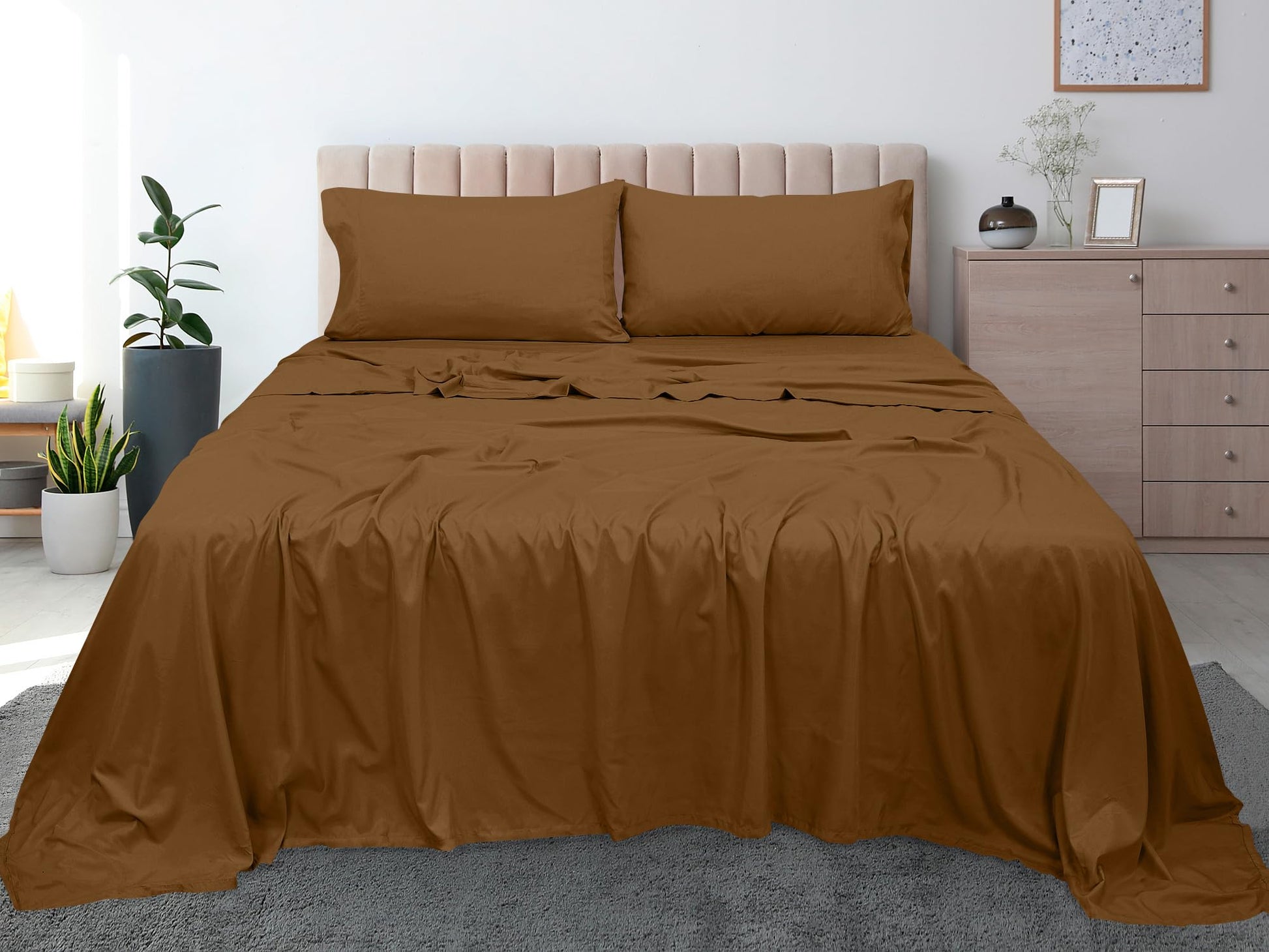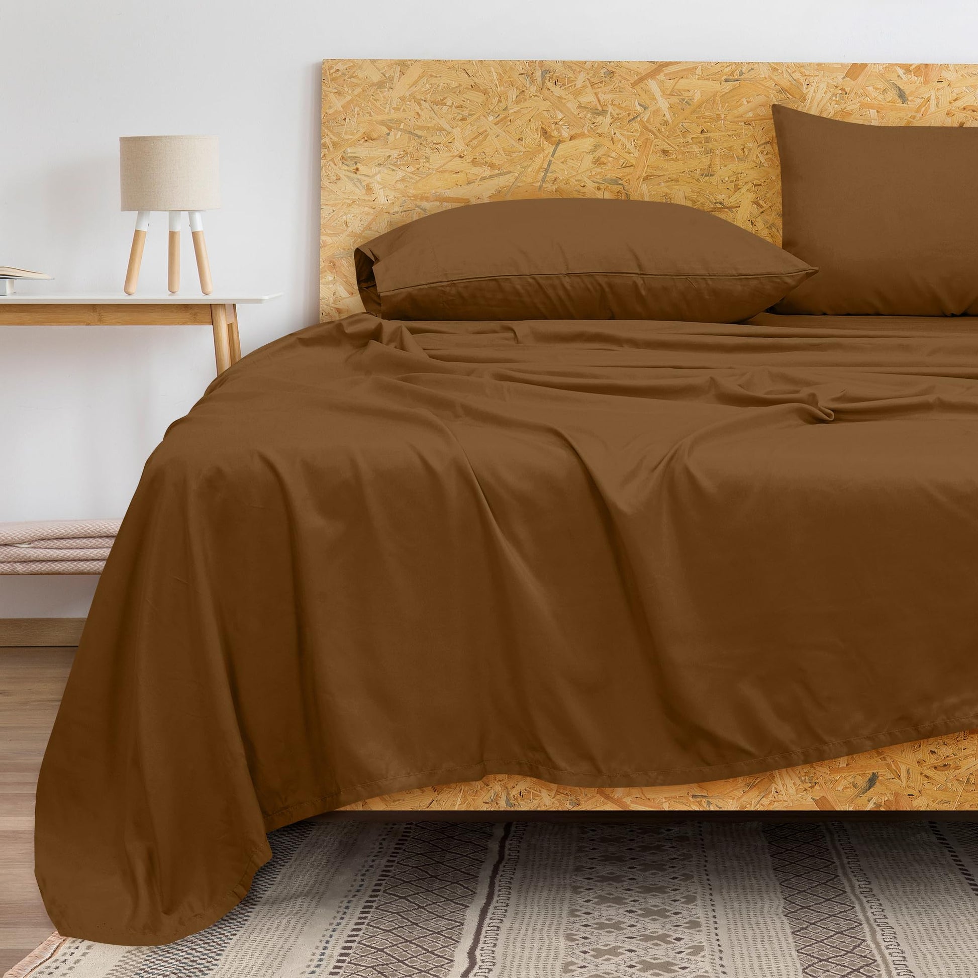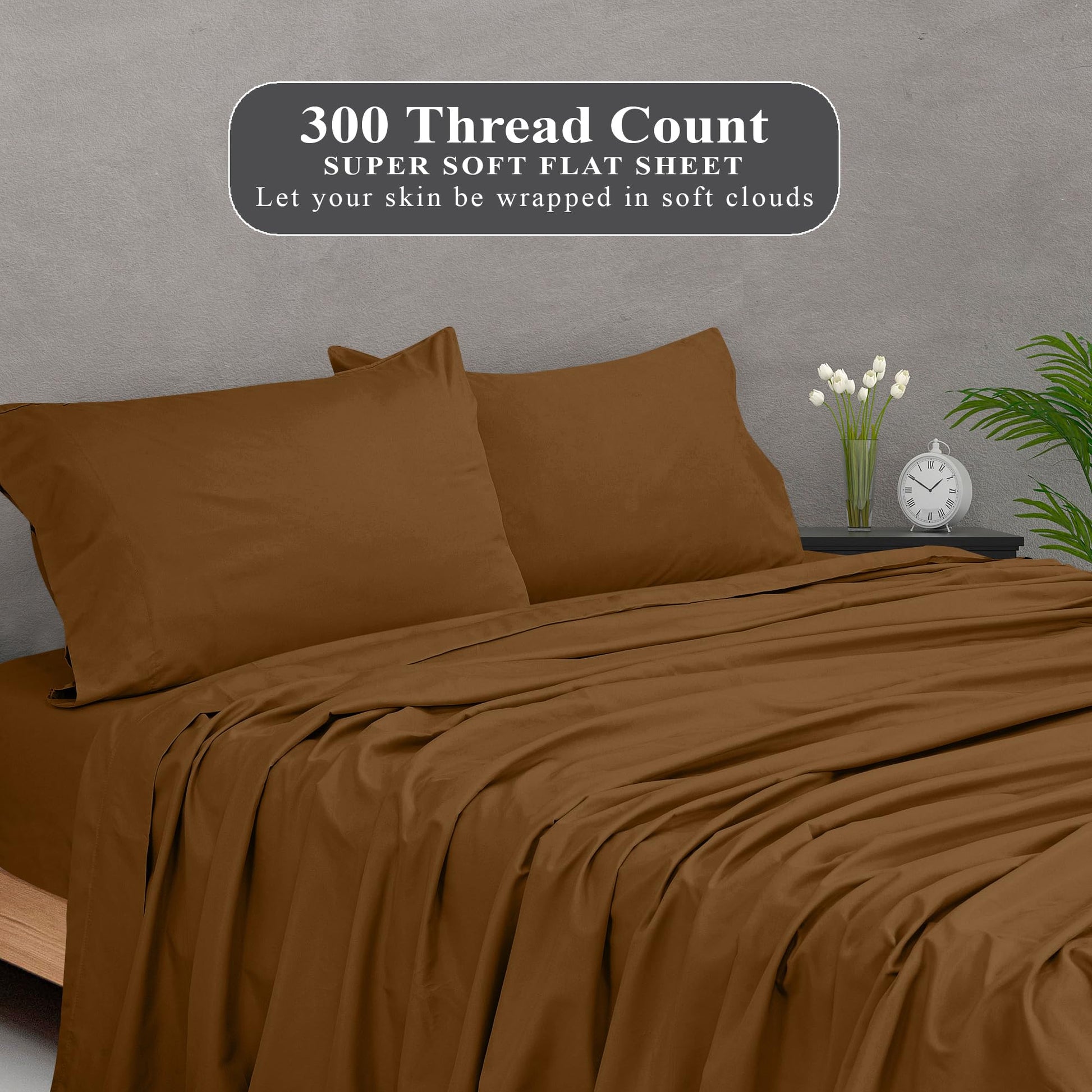 ROYALE LINENS 300 Thread Count 100% Long Staple Combed Cotton Flat Sheet - Super Soft- Top Sheet -Flat Sheet Sold Separately - Breathable Cool & Crisp Percale Flat Sheet Only (Chocolate)