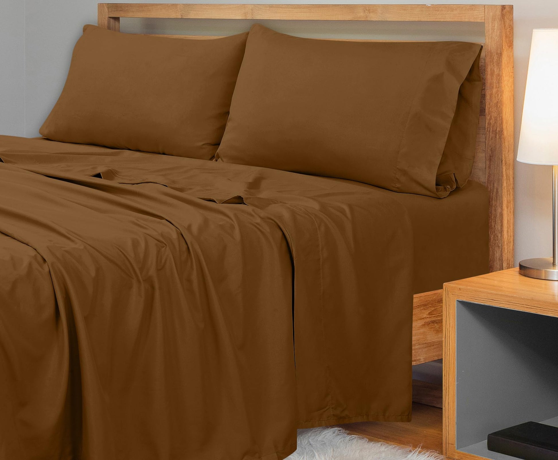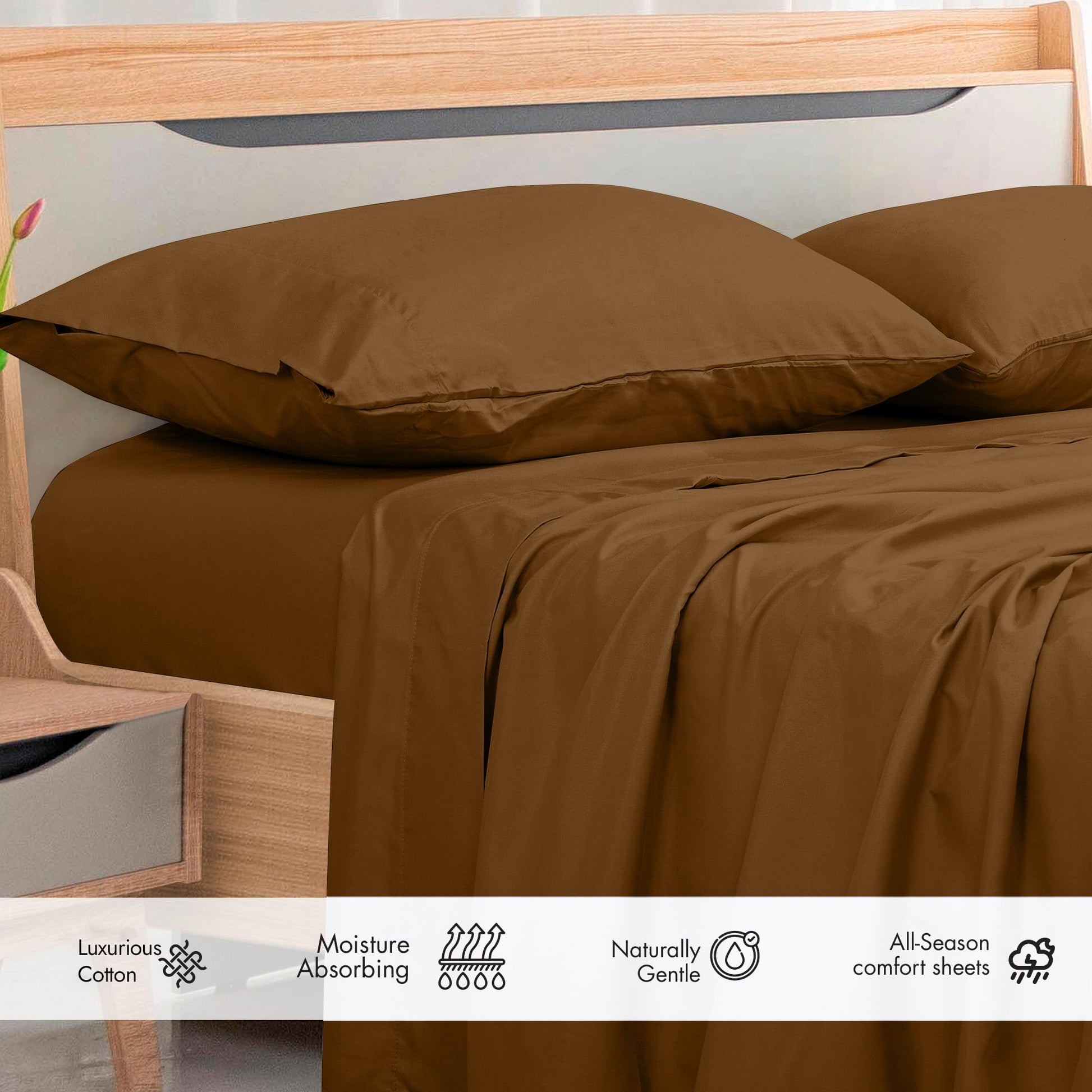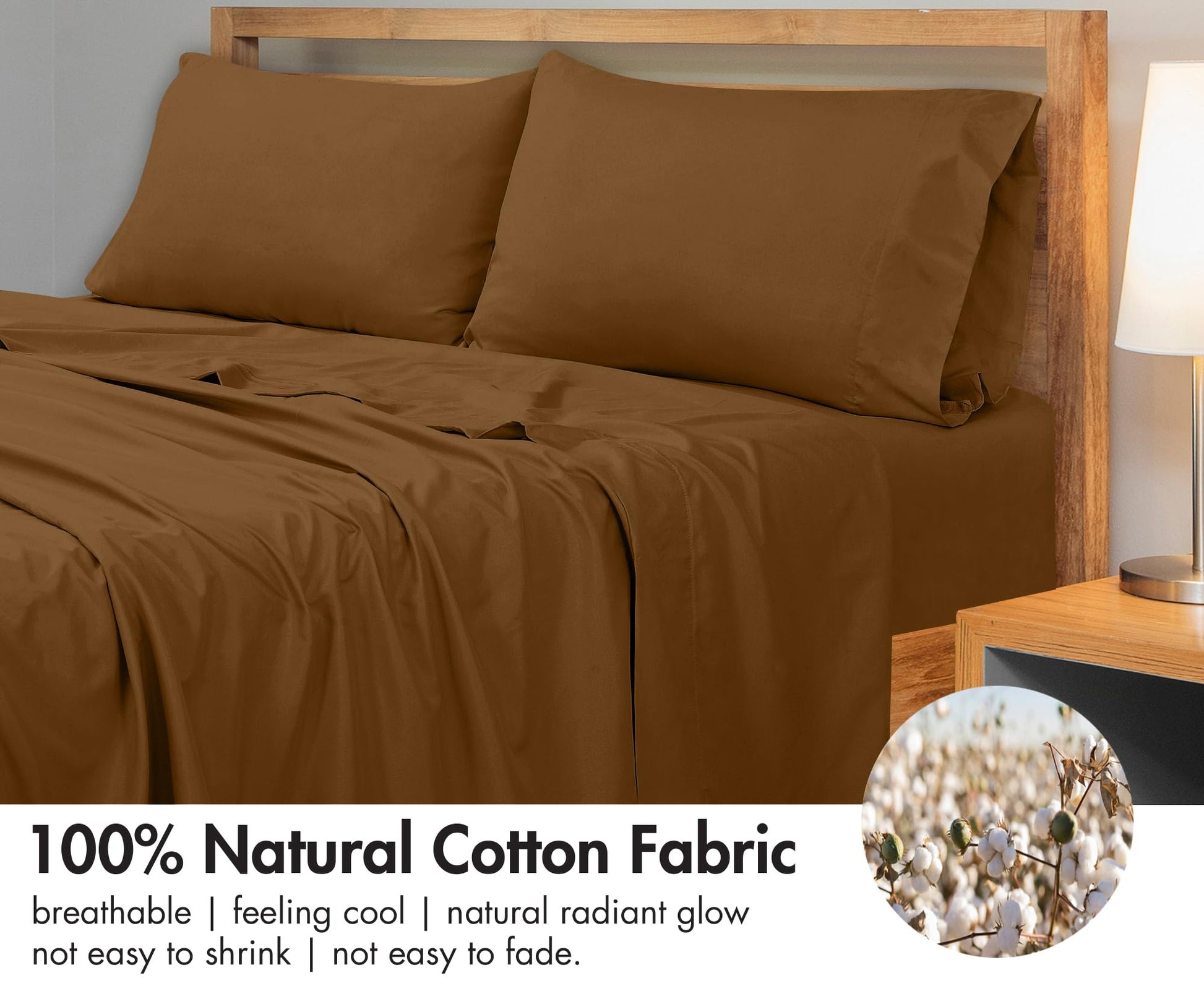 ROYALE LINENS 300 Thread Count 100% Long Staple Combed Cotton Flat Sheet - Super Soft- Top Sheet -Flat Sheet Sold Separately - Breathable Cool & Crisp Percale Flat Sheet Only (Chocolate)