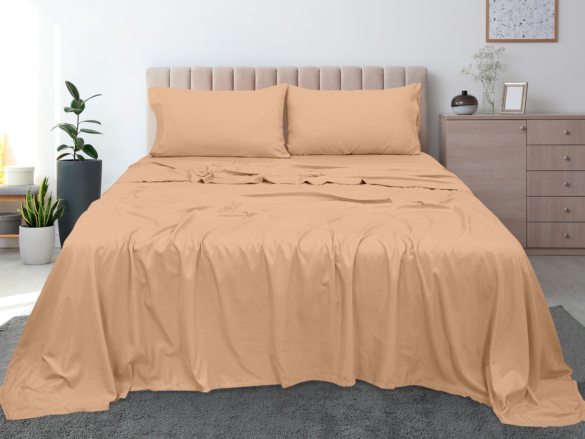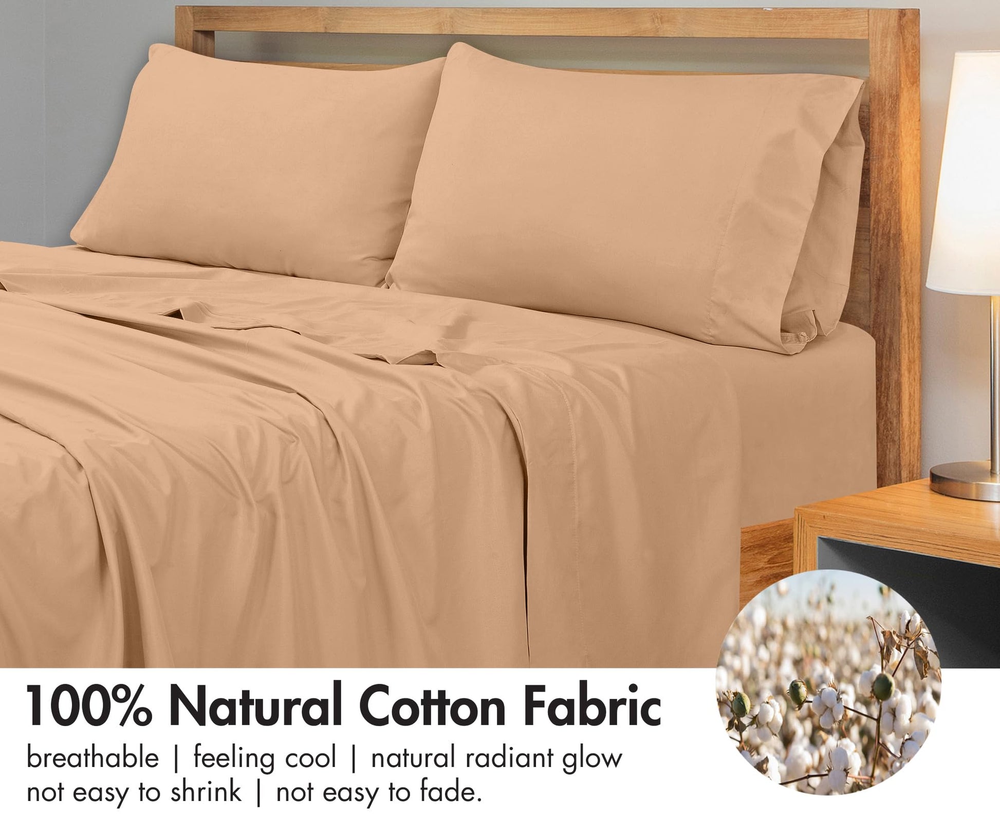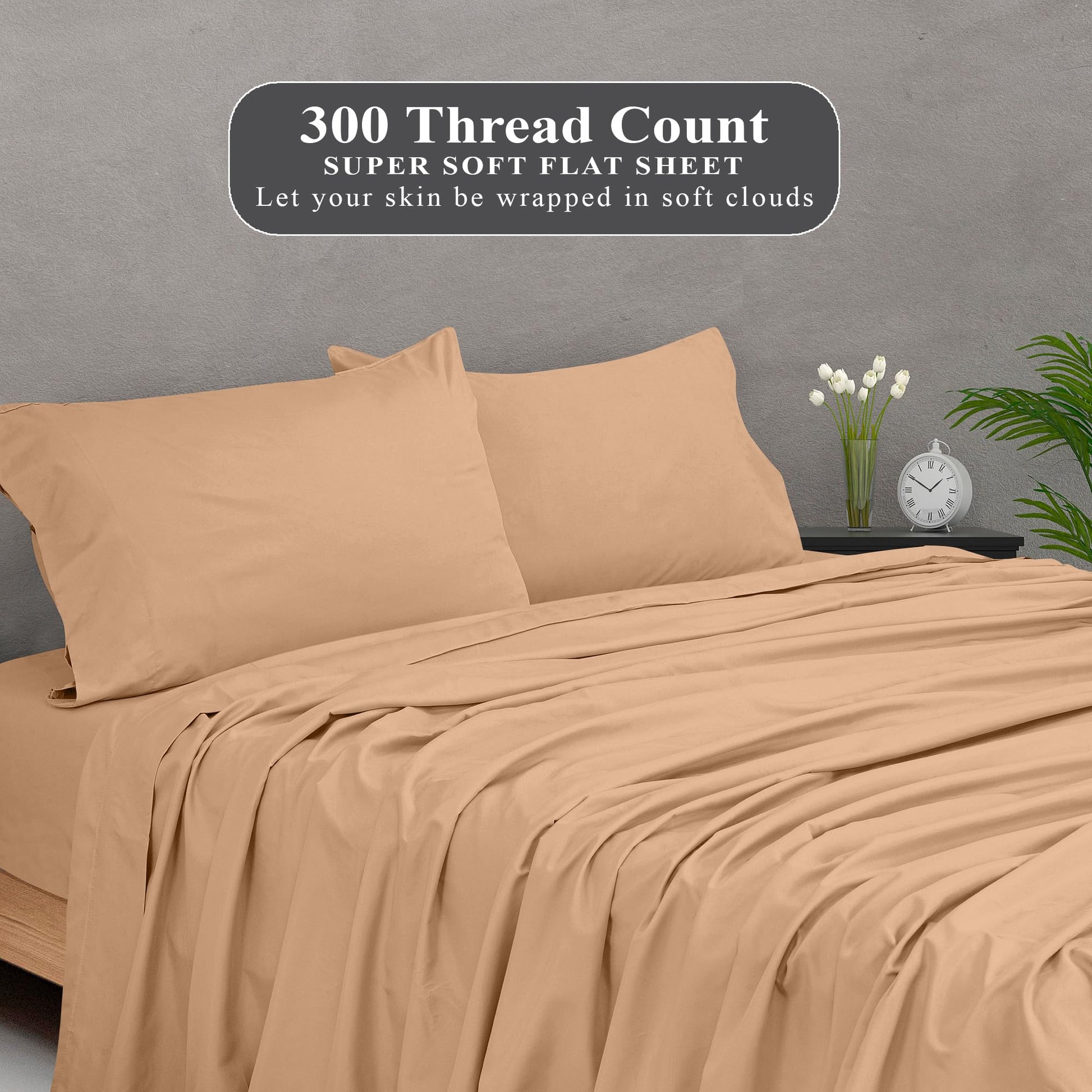 ROYALE LINENS 300 Thread Count 100% Long Staple Combed Cotton Flat Sheet - Super Soft - Top Sheet - Flat Sheet Sold Separately - Breathable, Cool & Crisp Percale Flat Sheet Only ( Sand)