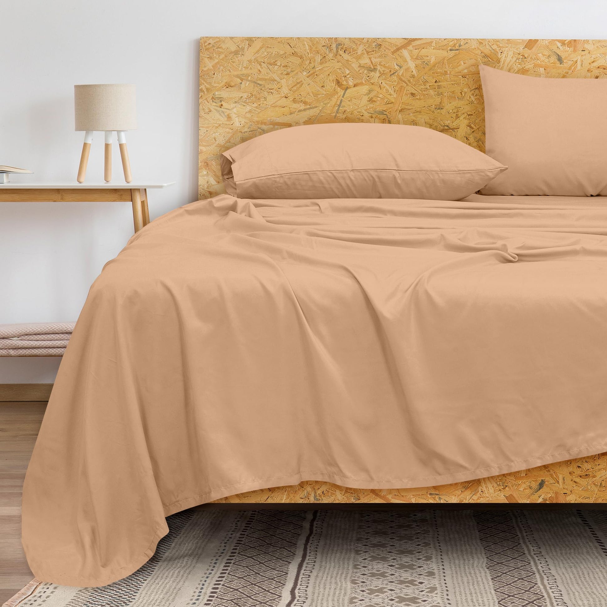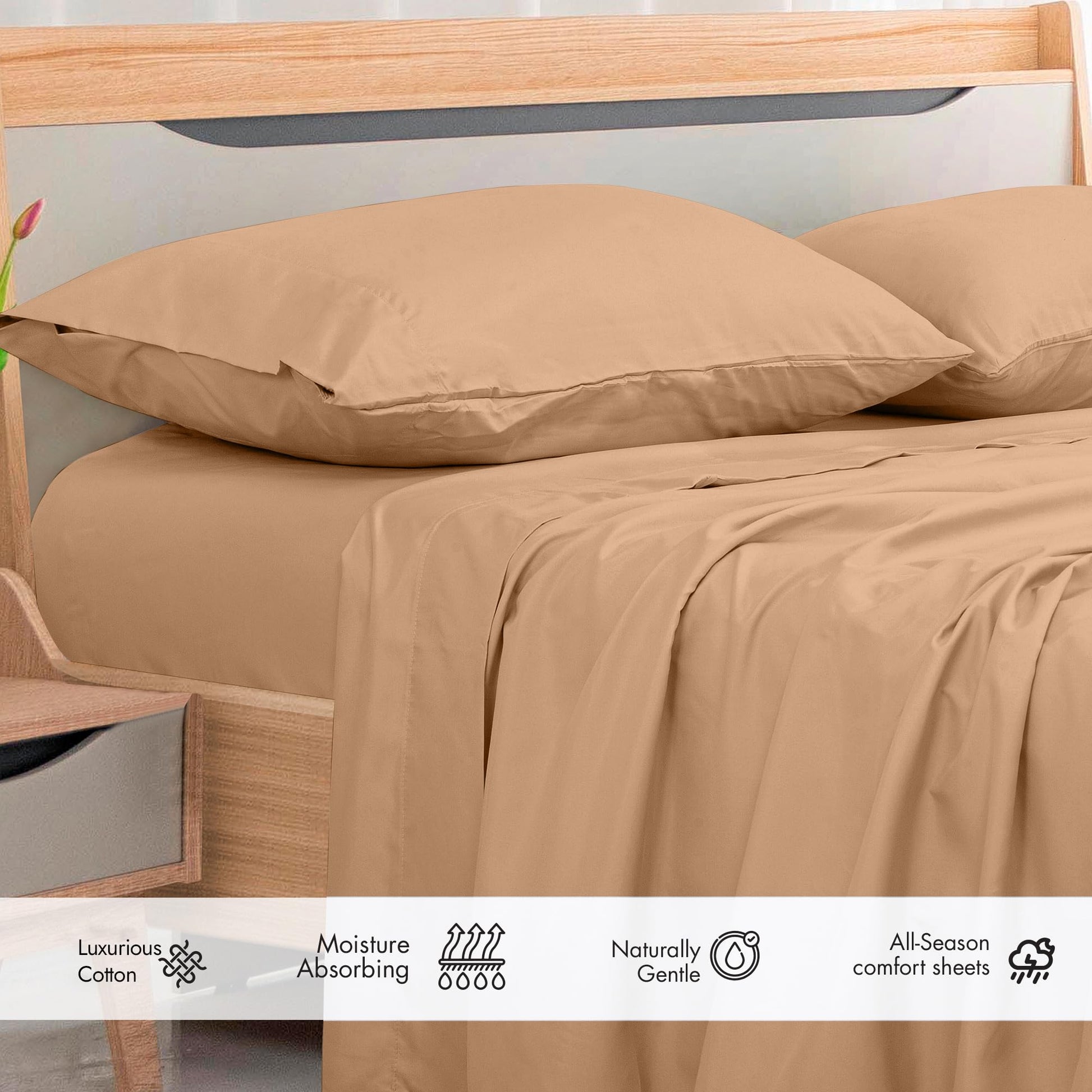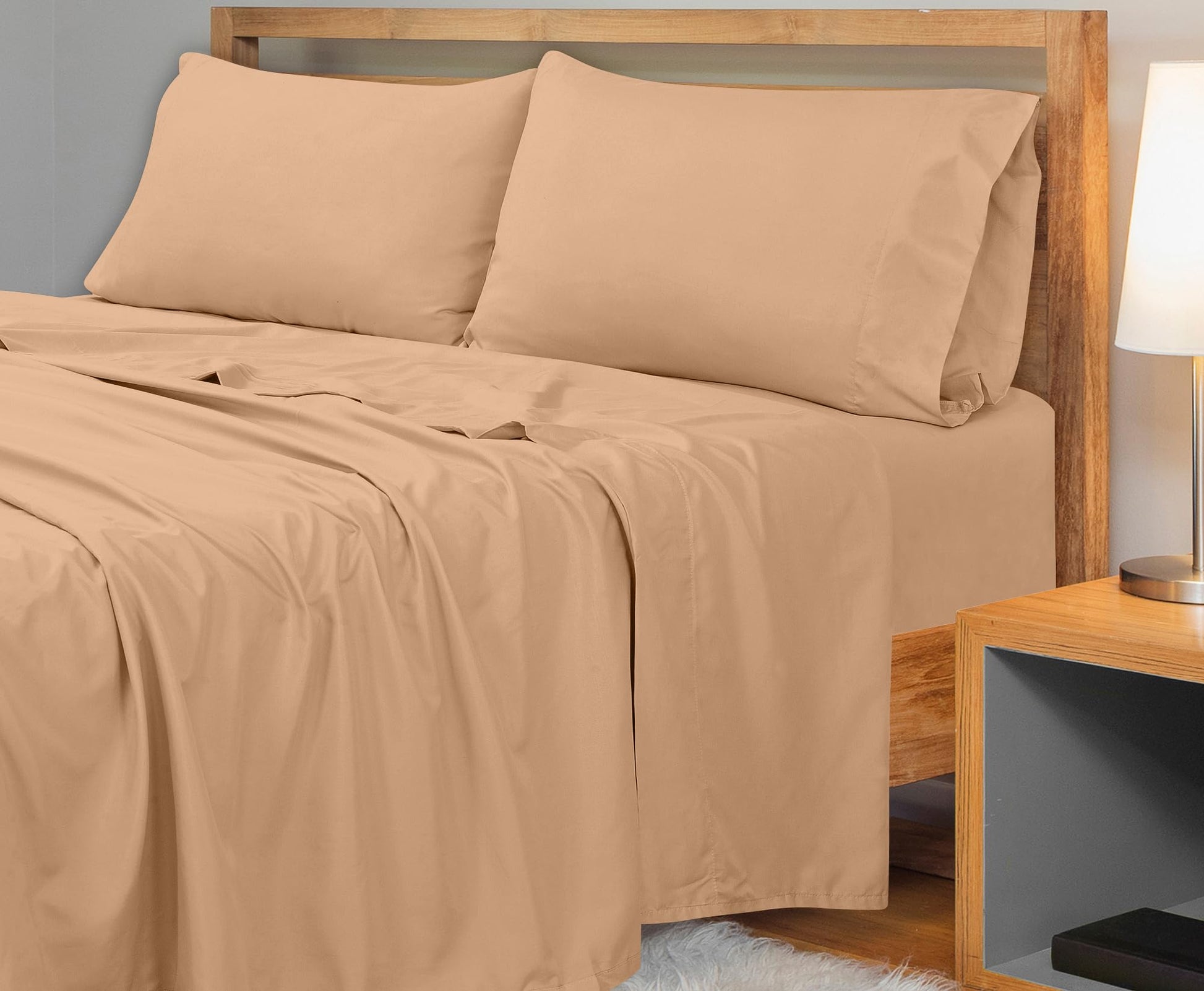 ROYALE LINENS 300 Thread Count 100% Long Staple Combed Cotton Flat Sheet - Super Soft - Top Sheet - Flat Sheet Sold Separately - Breathable, Cool & Crisp Percale Flat Sheet Only ( Sand)