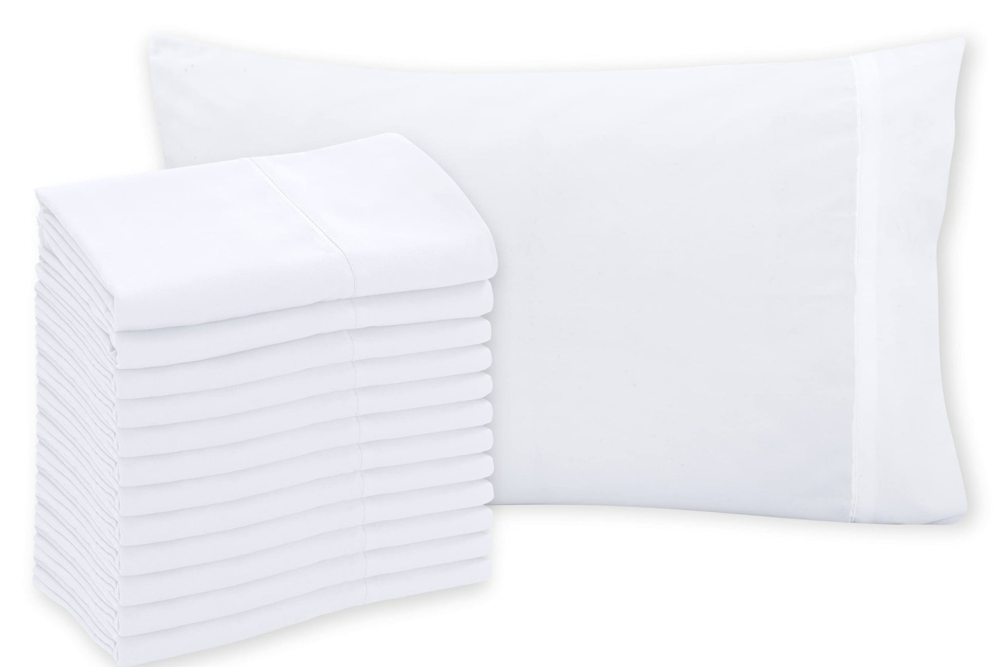 Royale Linens White Cotton Pillowcase Set - Bed Pillow Cover - 100% Cotton- Bulk Pillow Cases - Soft & Cozy- Envelope Closure-Hotel Quality Pillow Case Pack of 12 (, White)
