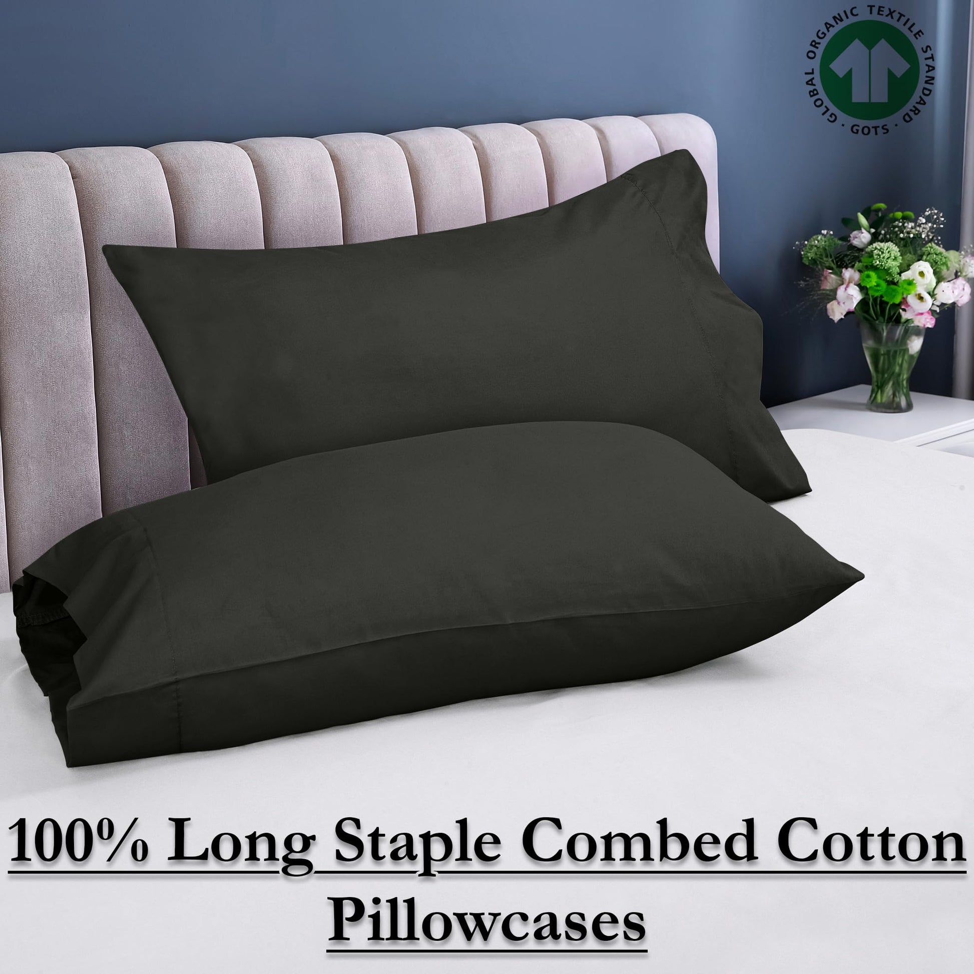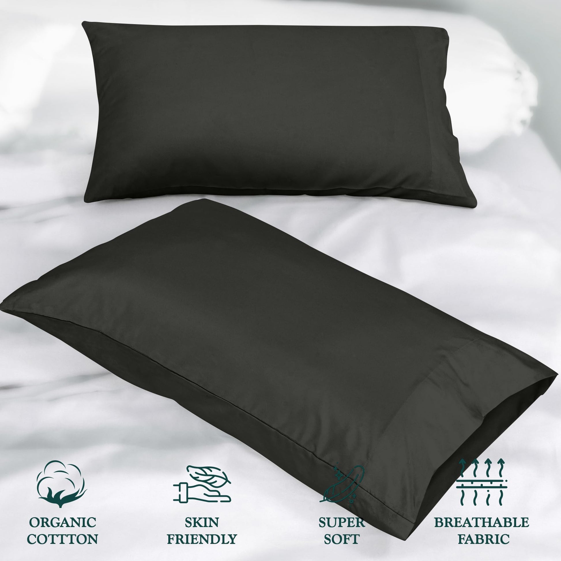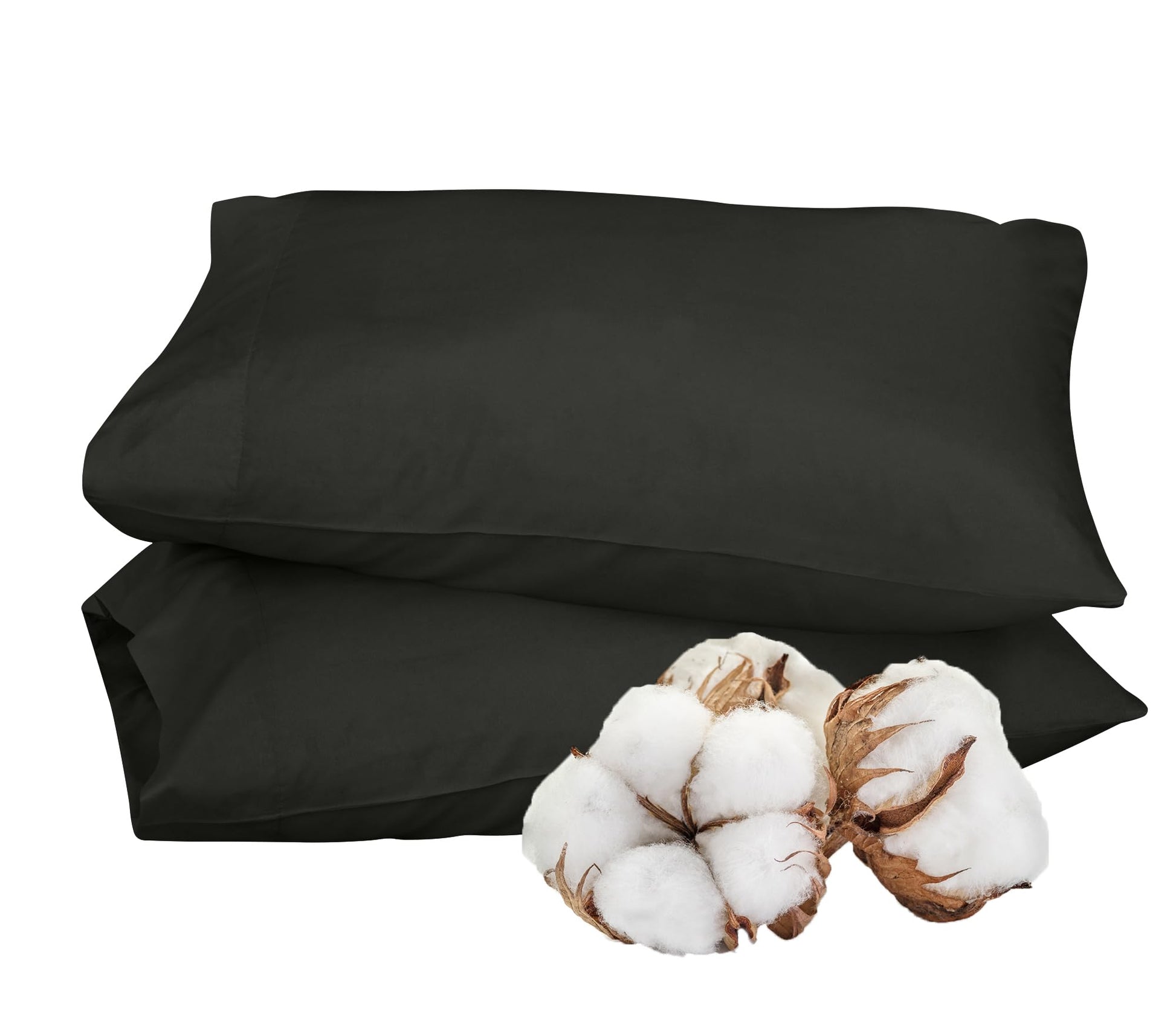 ROYALE LINENS 300 Thread Count 100% Long Staple Combed Cotton Pillowcases Set of 2 - Ultra Soft - Bed Pillow Cover - Breathable, Cool & Crisp Percale Black Pillow Cases (Black)