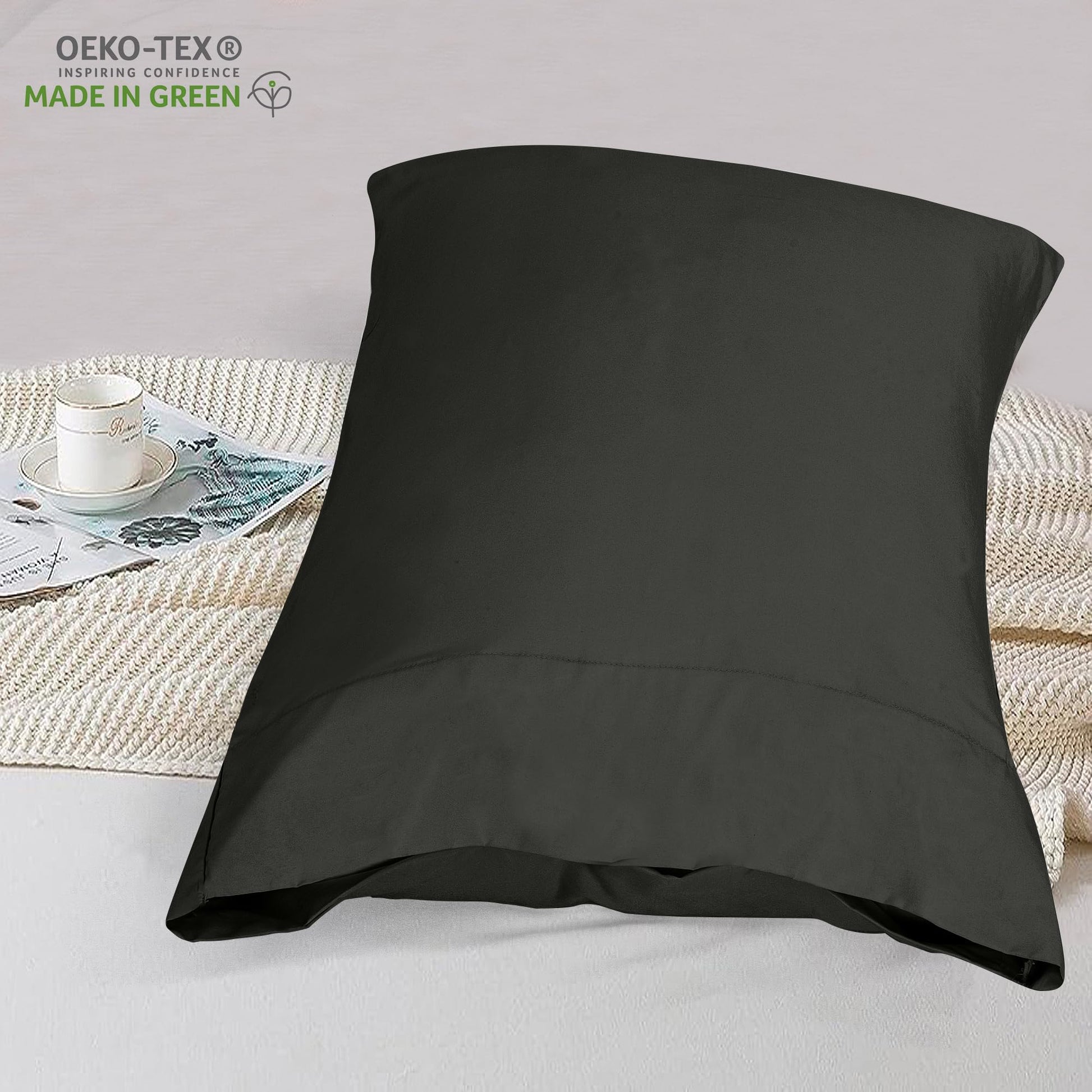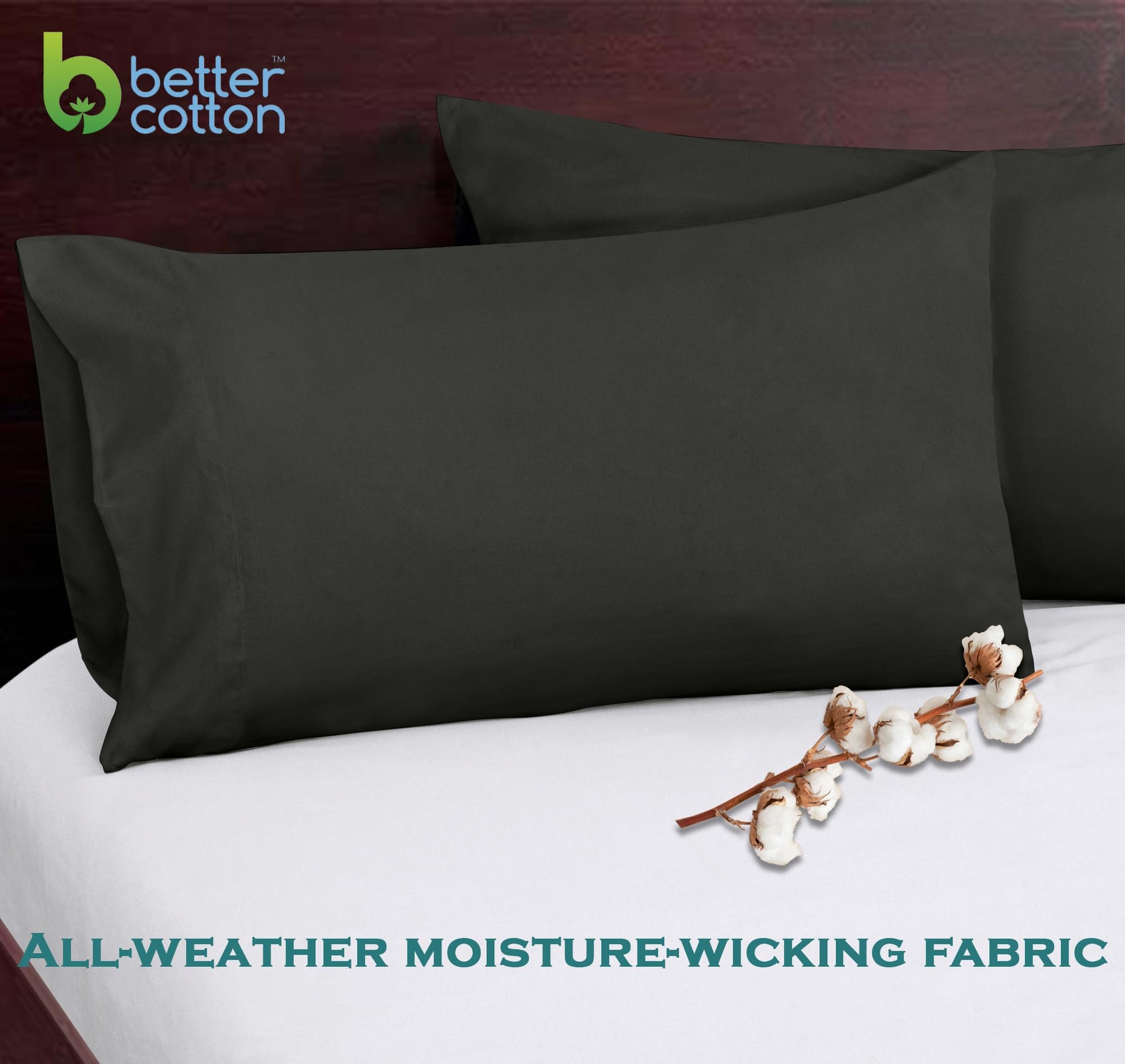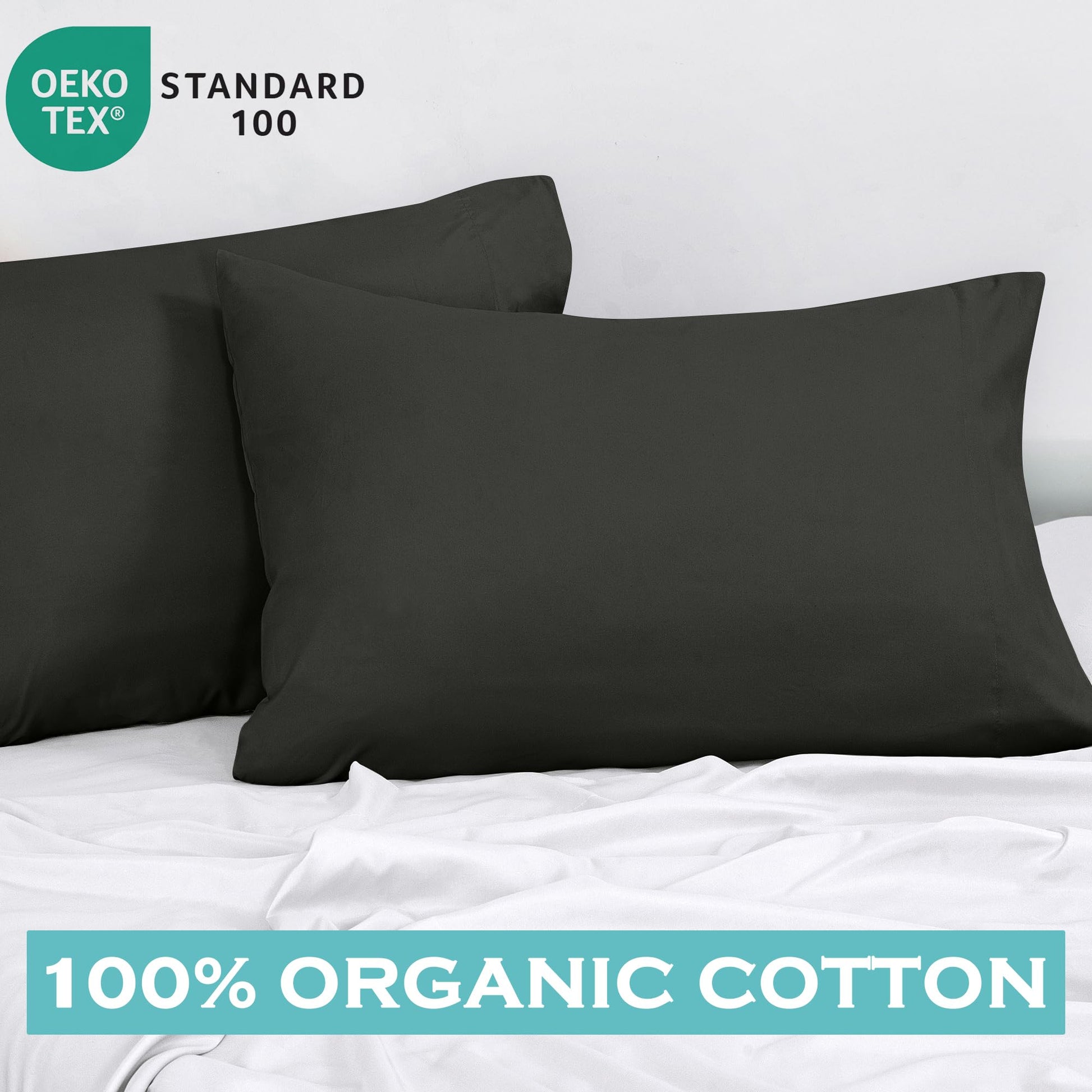 ROYALE LINENS 300 Thread Count 100% Long Staple Combed Cotton Pillowcases Set of 2 - Ultra Soft - Bed Pillow Cover - Breathable, Cool & Crisp Percale Black Pillow Cases (Black)
