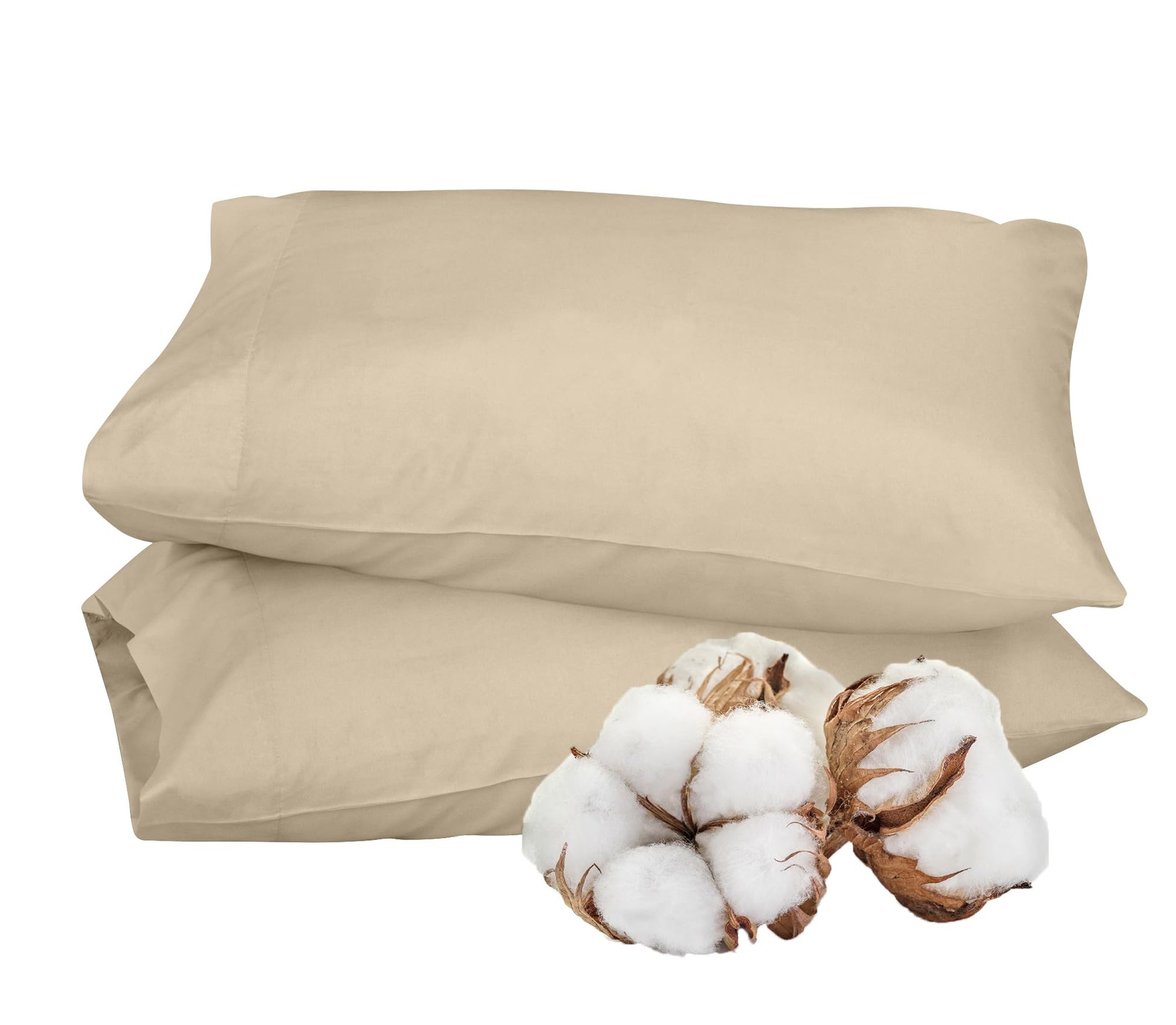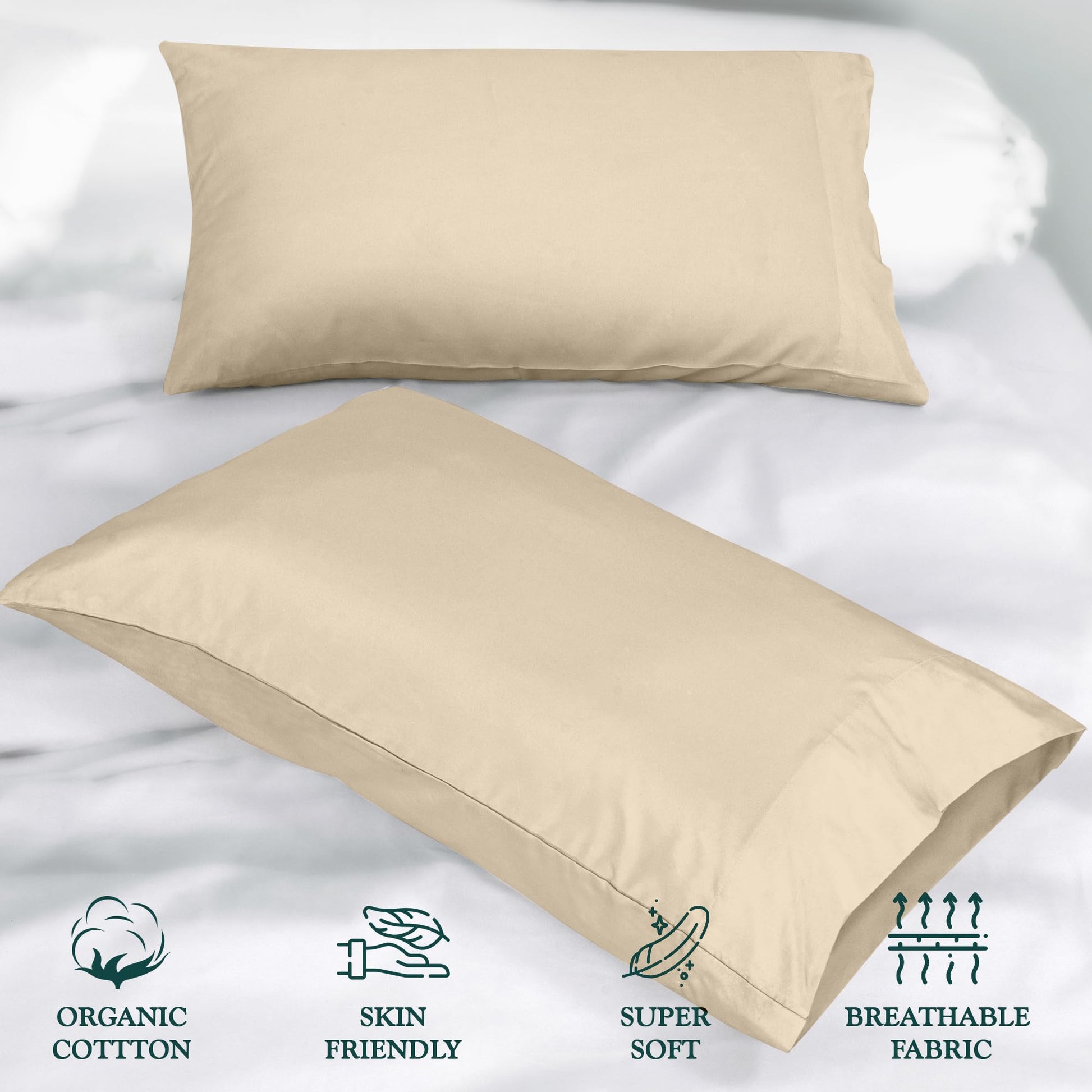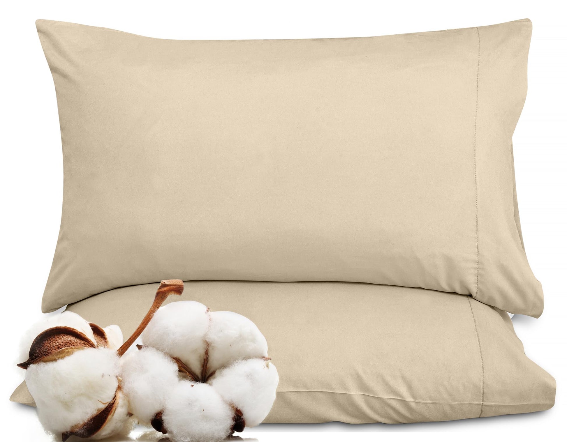 ROYALE LINENS 300 Thread Count 100% Long Staple Combed Cotton Pillowcases Set of 2 - Ultra Soft - Bed Pillow Cover - Breathable, Cool & Crisp Percale Cream Pillow Cases ( Cream)